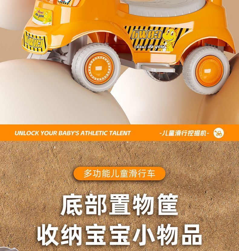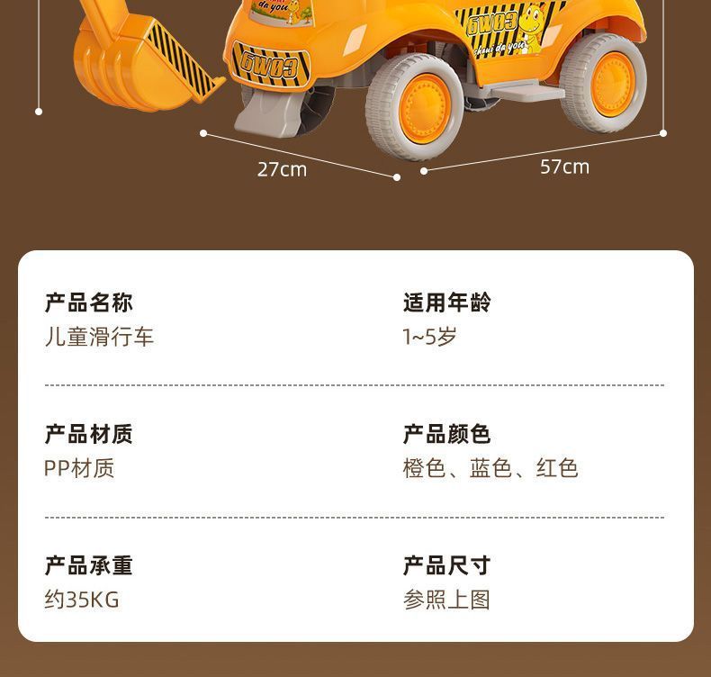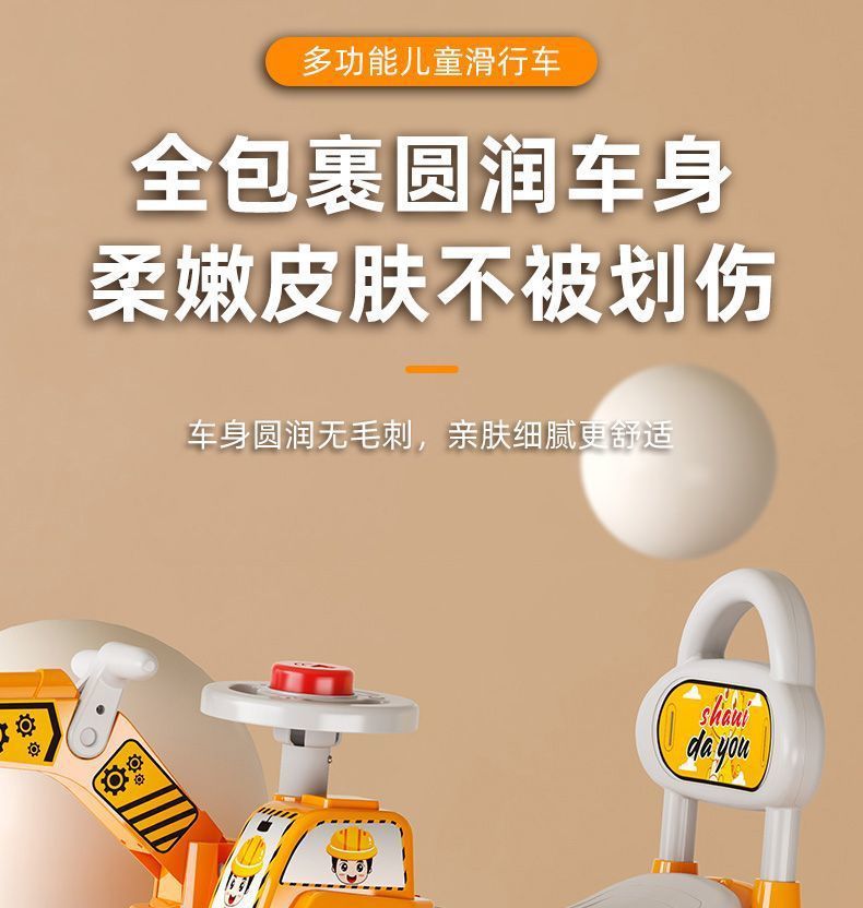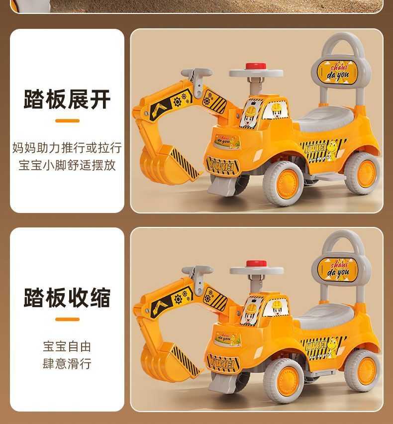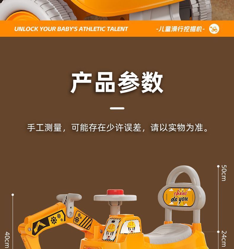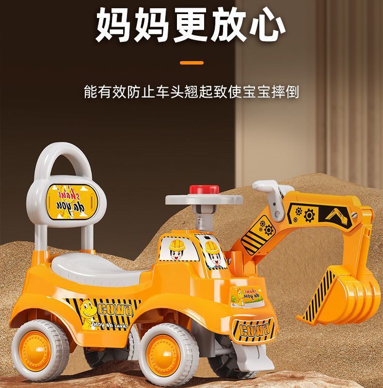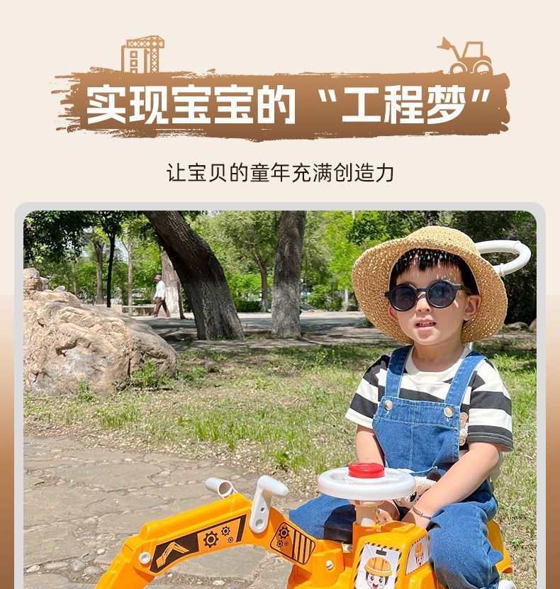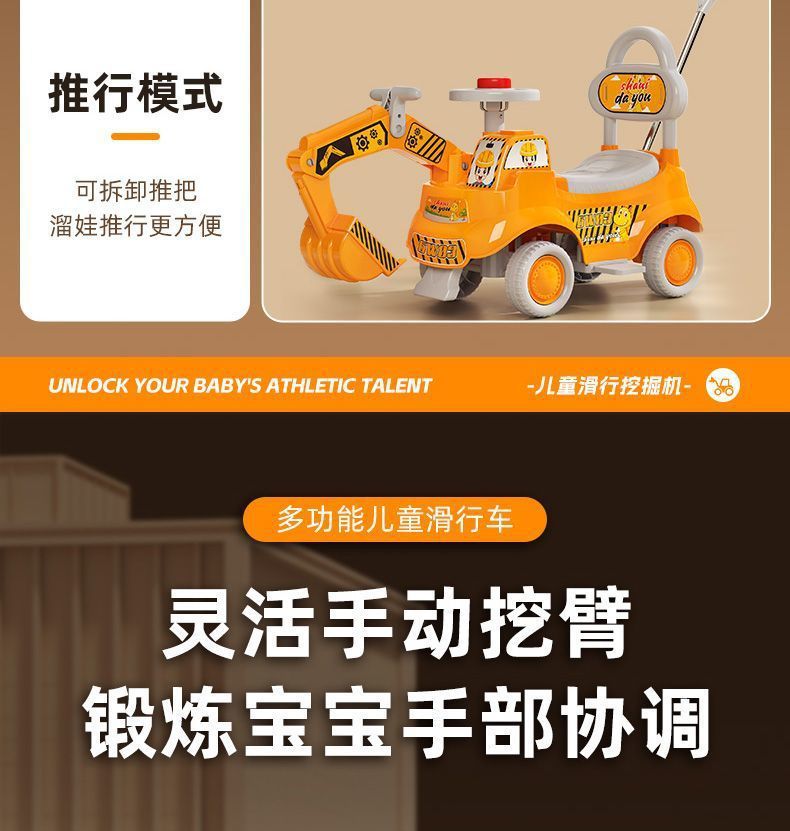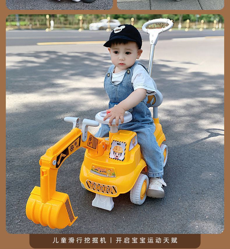 商品名称:儿童挖掘机可坐人推把男孩挖土机工程车宝宝玩具车滑行溜溜扭扭车