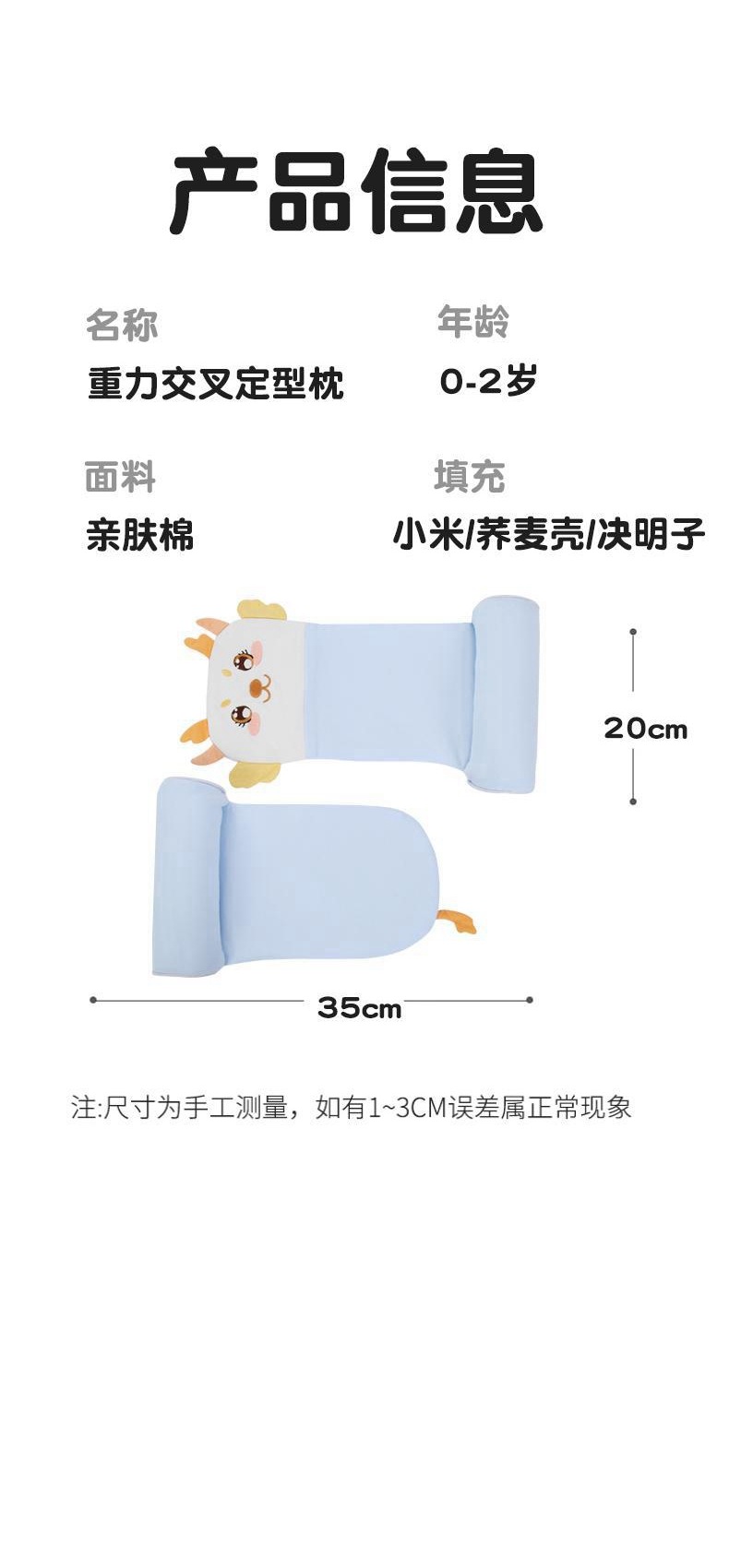 商品名称:工厂小米定型枕婴儿0-6个月1岁以上宝宝纠正头型防偏纯棉枕头