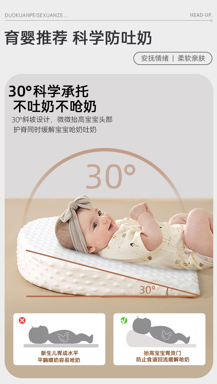 商品名称:防吐奶斜坡枕豆豆绒婴儿垫15度斜坡垫喂奶神器防防呛奶婴儿枕
