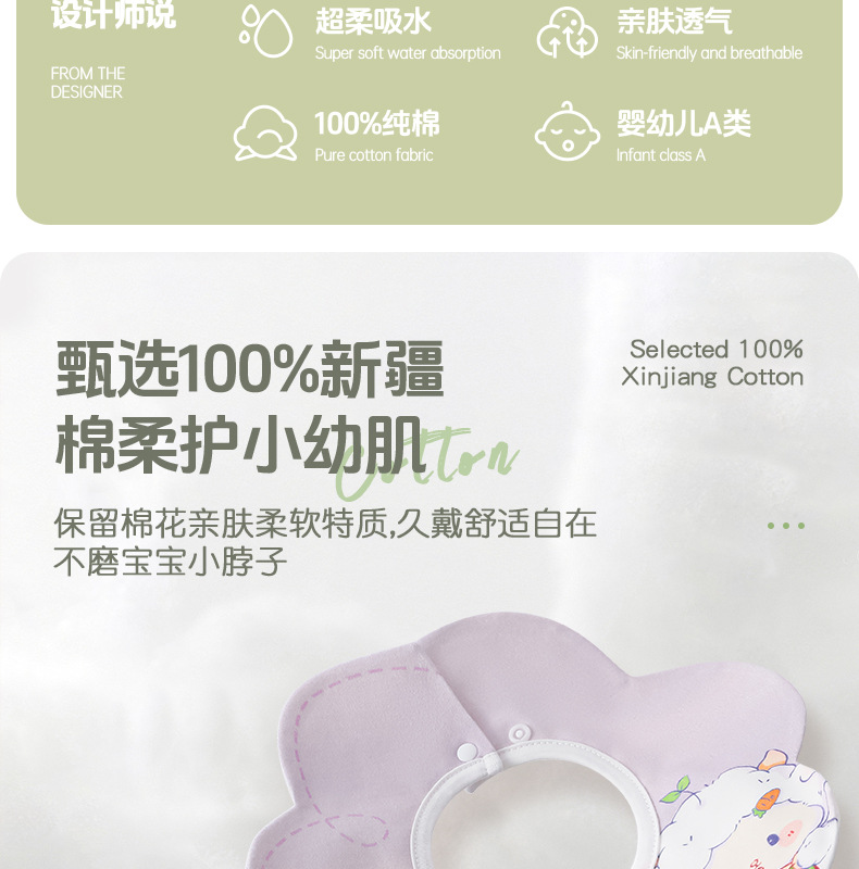商品名称:宝宝口水巾纯棉a类防水360度旋转花瓣围嘴春夏款高端防吐奶围兜