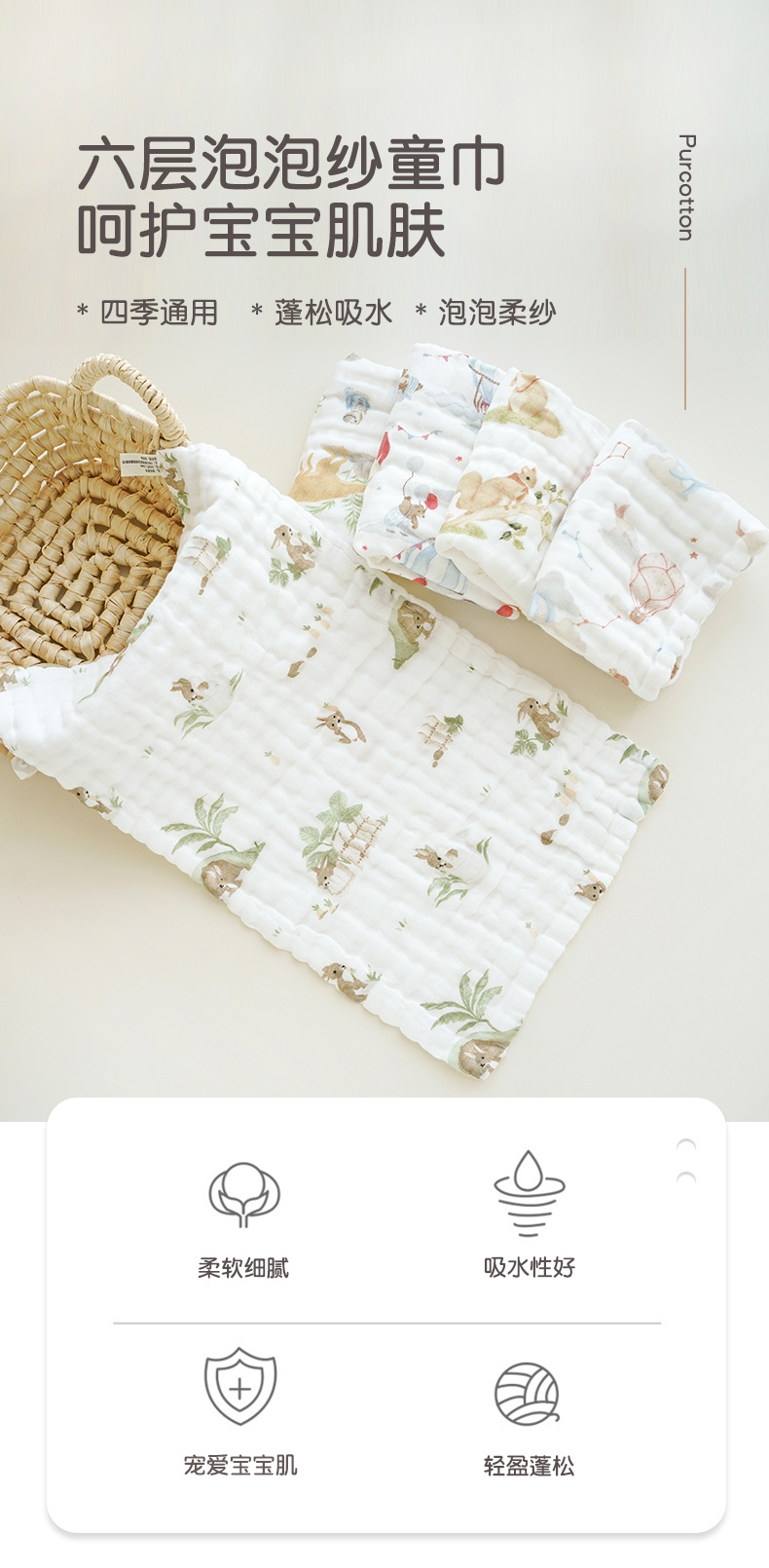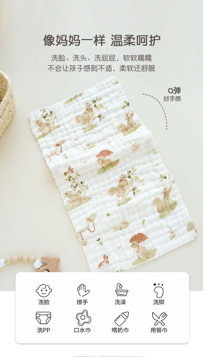 商品名称:柔软吸水婴儿家用口水巾洗脸巾六层纱布儿童毛巾长手帕厂家