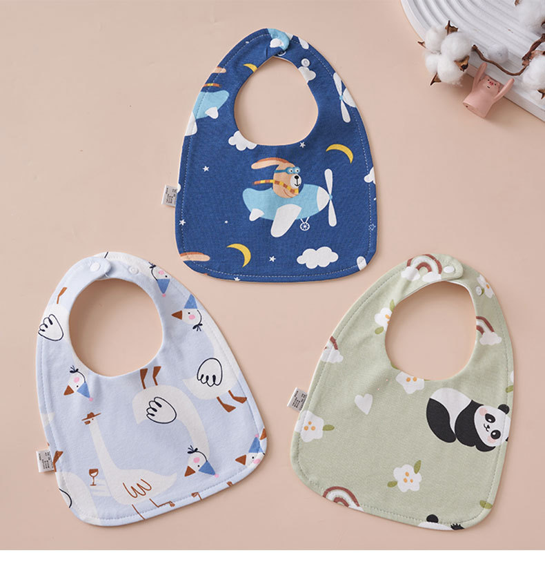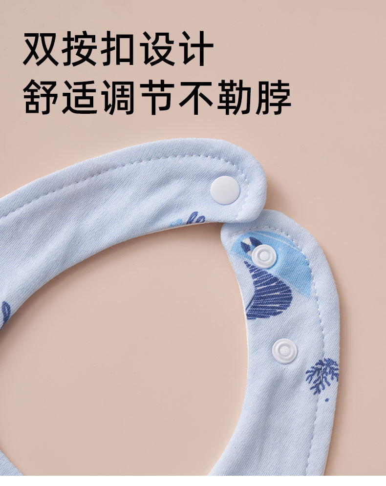 婴幼儿纯棉口水巾 宝宝360单双排扣围嘴围兜四层防水旋转花朵八角