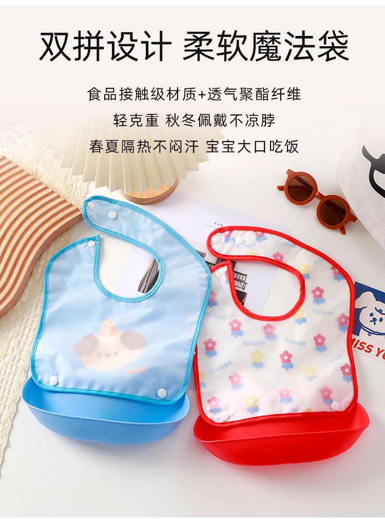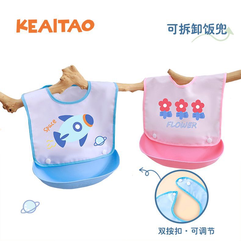 宝宝防水饭兜新生儿辅食口水兜可拆卸两用围兜幼儿园口水巾按扣款