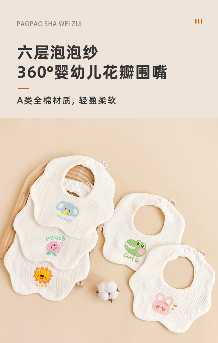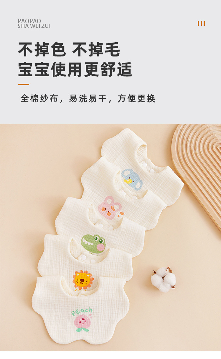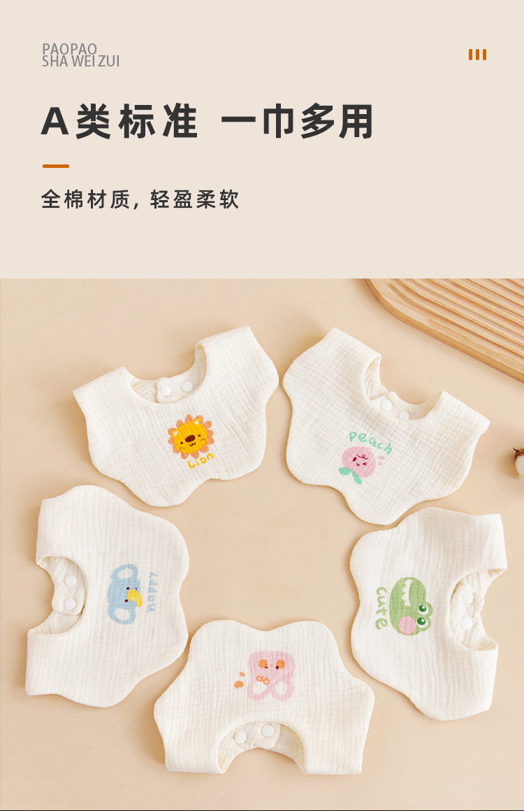 纯棉绉布泡泡纱布围嘴婴儿口水巾宝宝柔软围兜全棉a类纱布口水巾