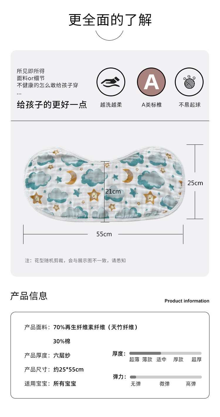 商品名称:a类婴儿口水巾 竹棉纱布围兜围嘴婴儿用品 宝宝护肩防溢奶拍嗝巾