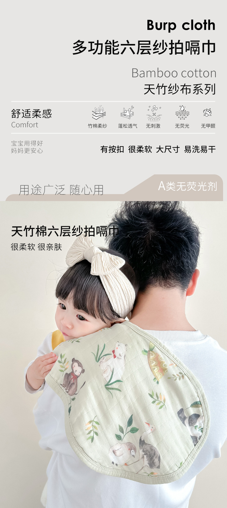 丛林朋友(六层纱拍嗝巾)