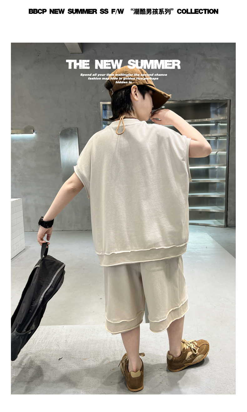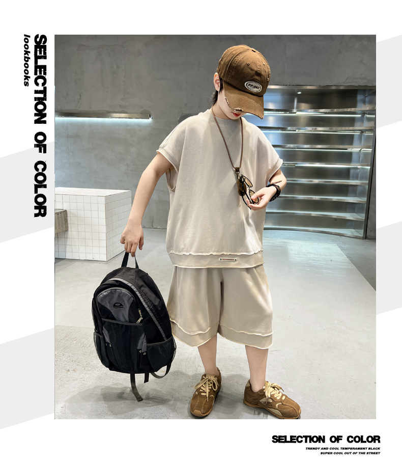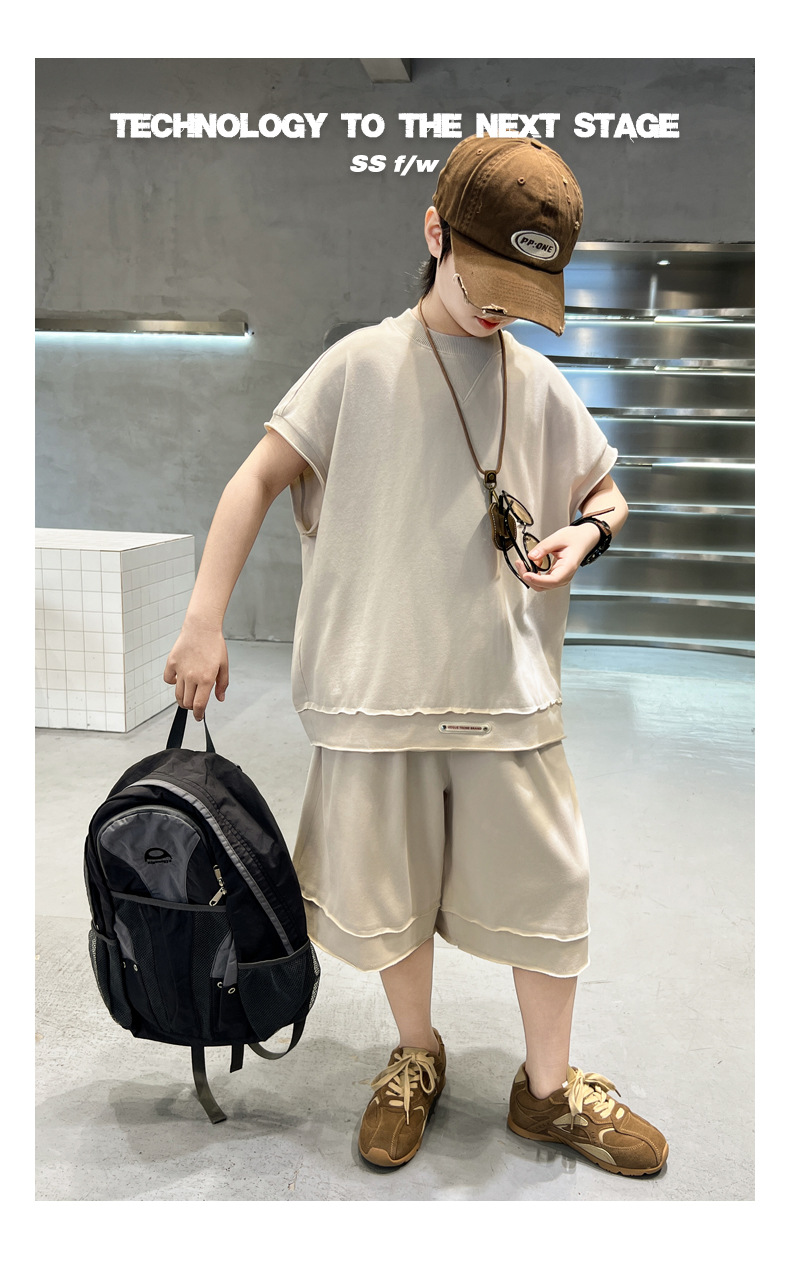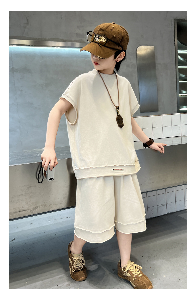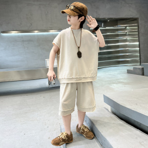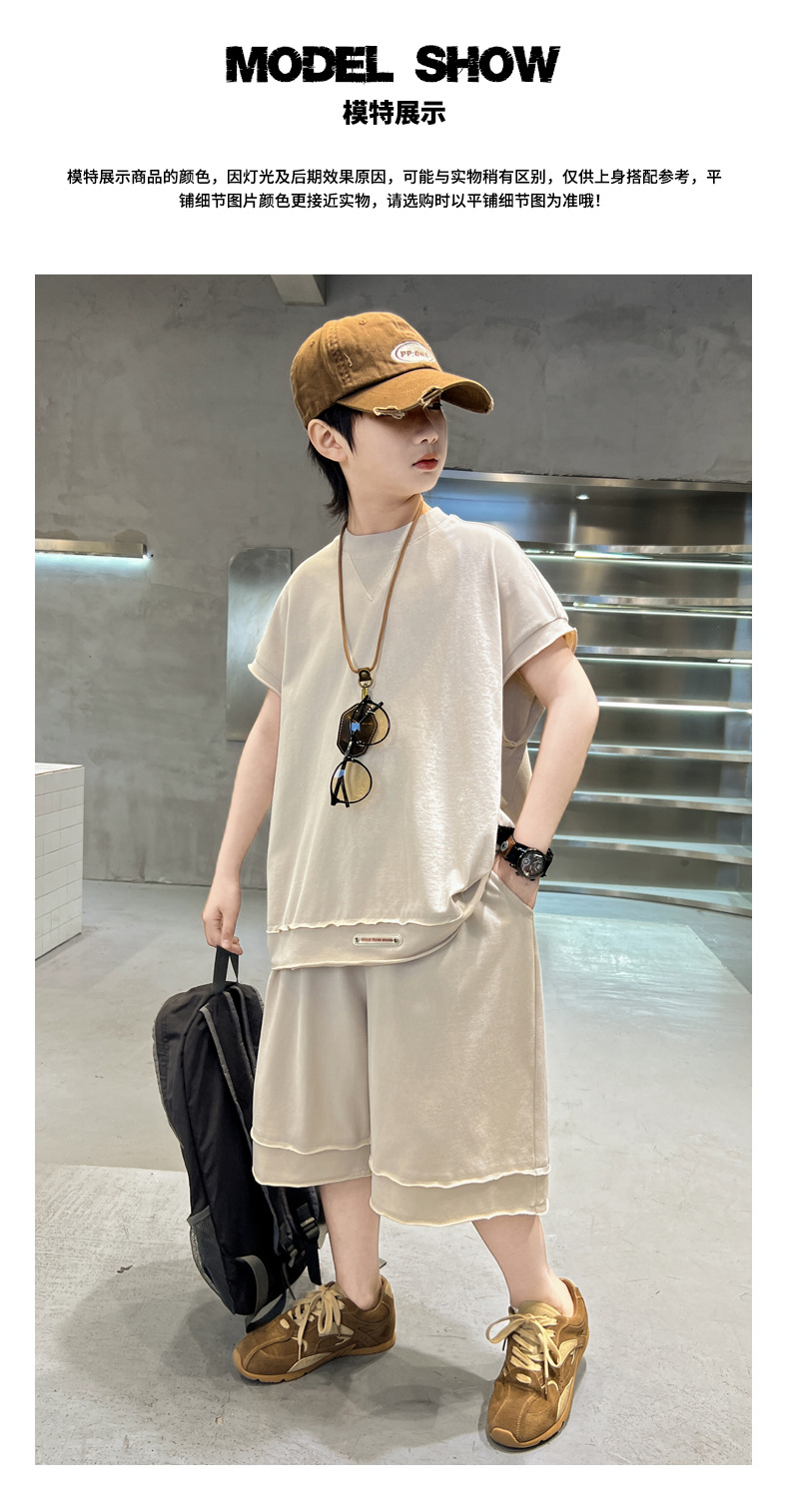 男童夏装套装2025新款儿童夏季短袖运动服大童背心时髦男孩薄款潮