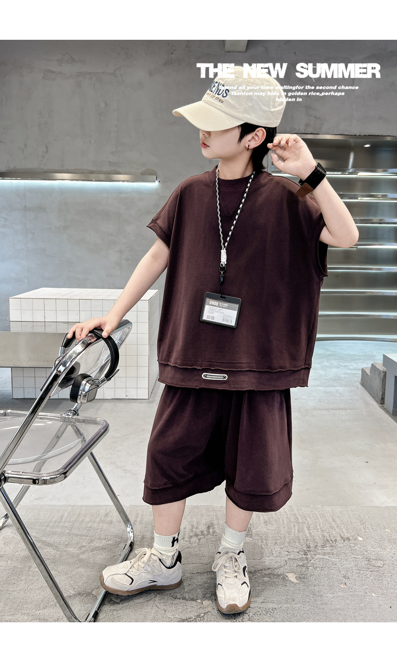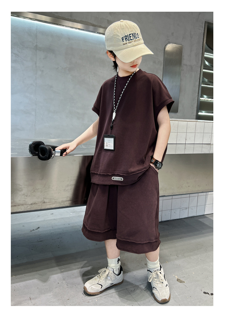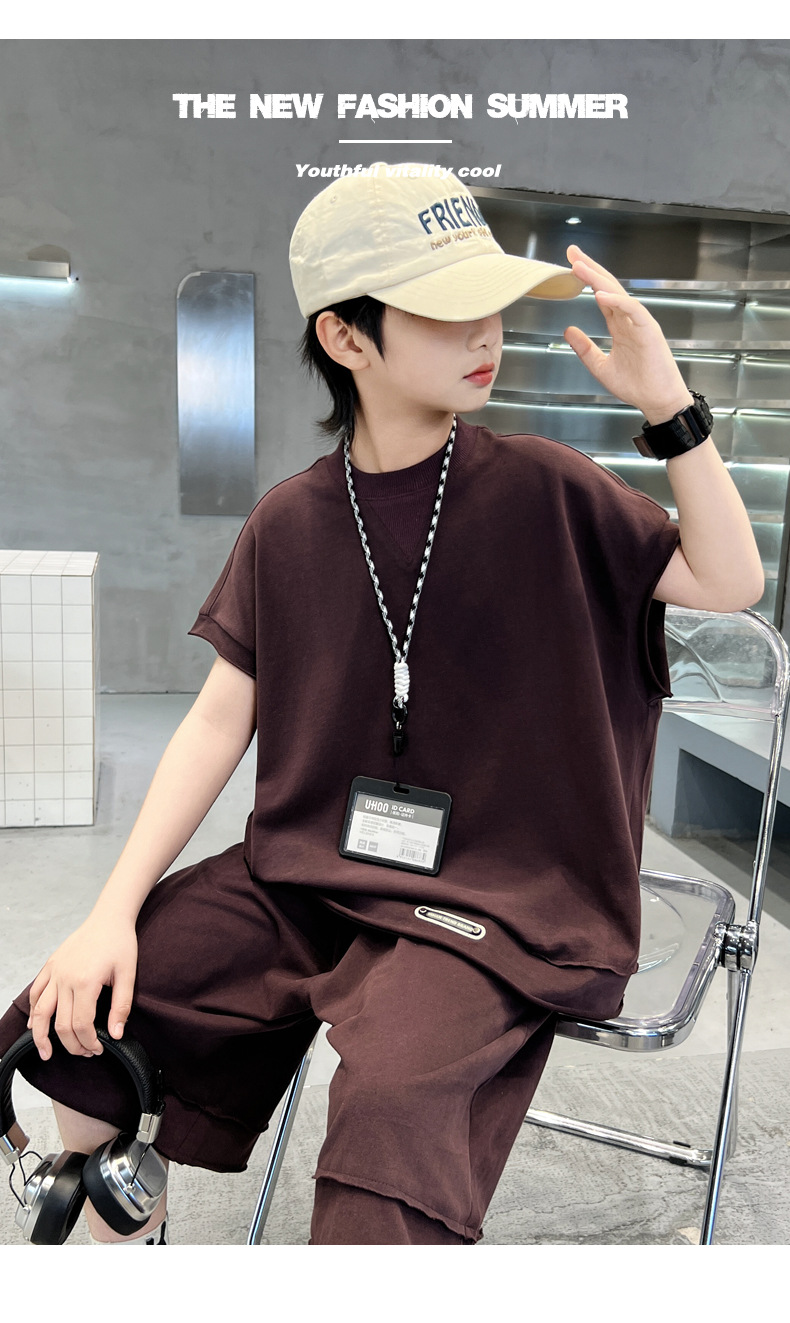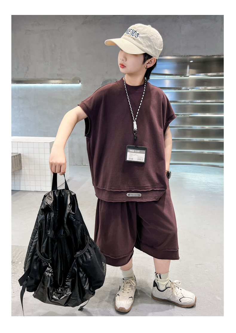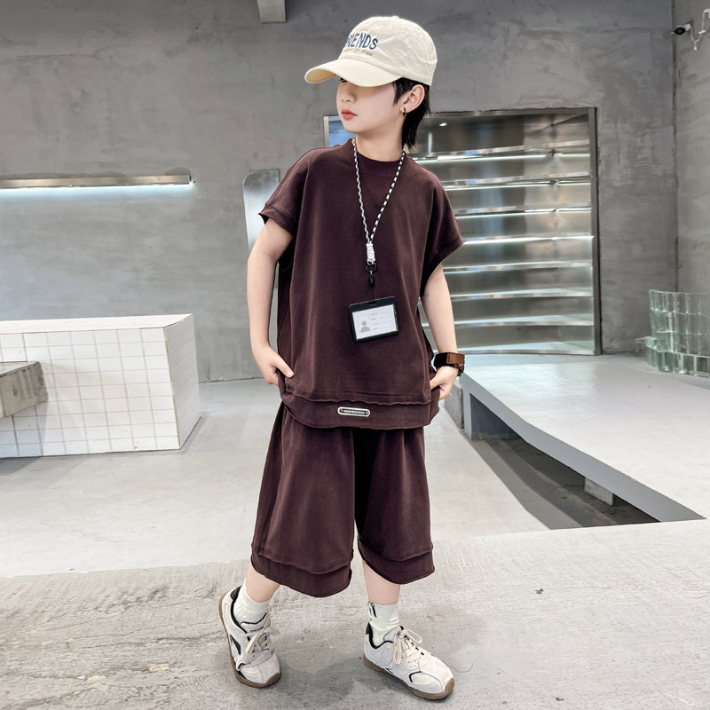 男童夏装套装2025新款儿童夏季短袖运动服大童背心时髦男孩薄款潮