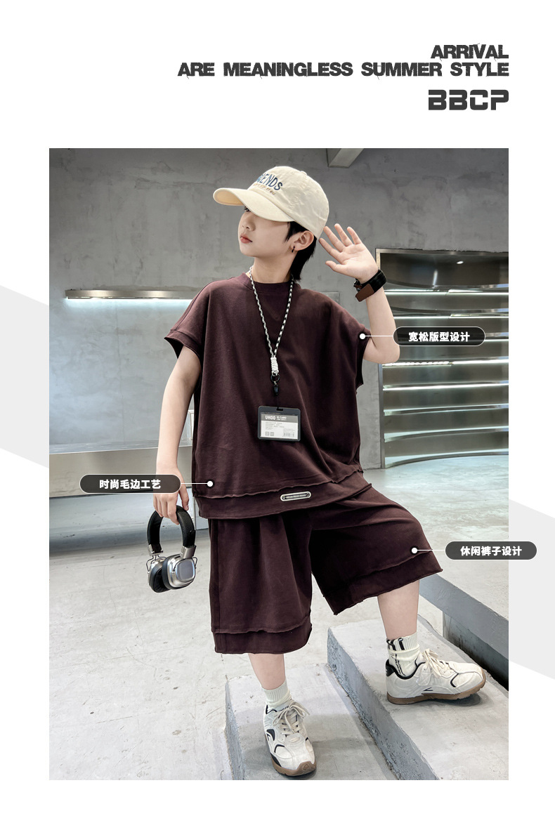 男童夏装短袖套装2025新款中大童夏季儿童夏款男孩两件套外贸