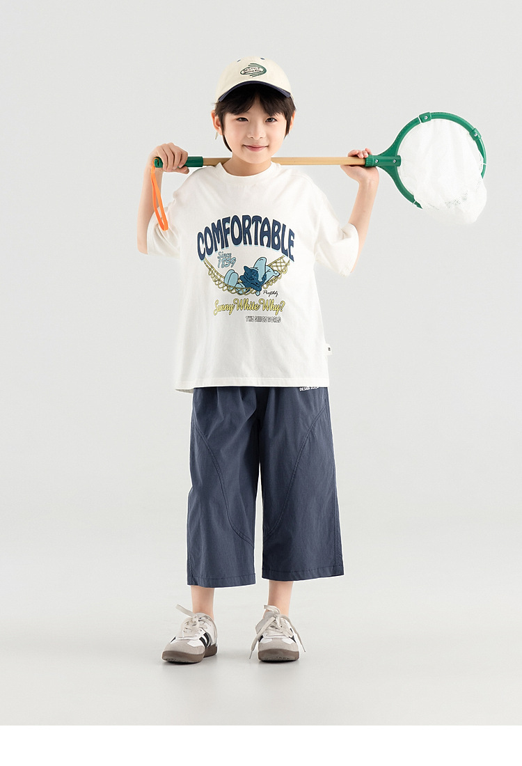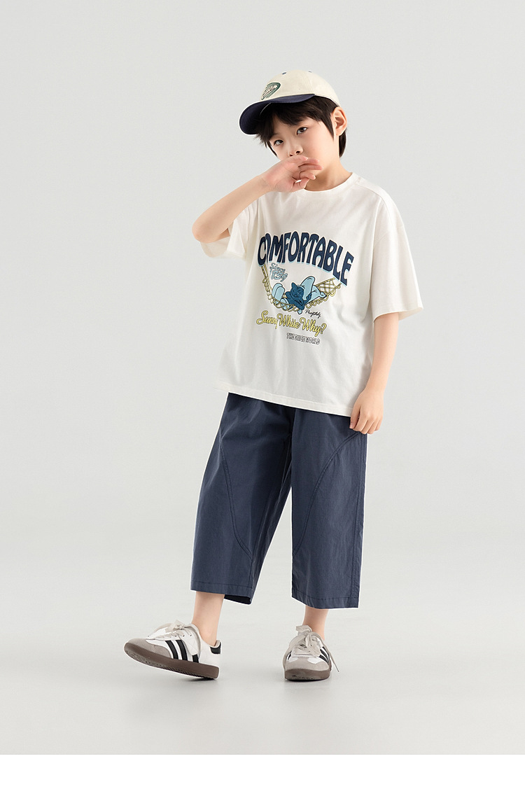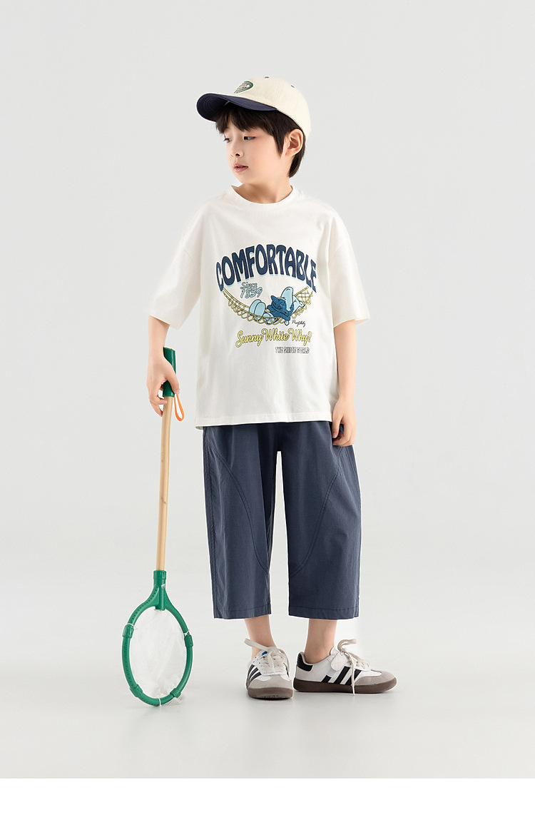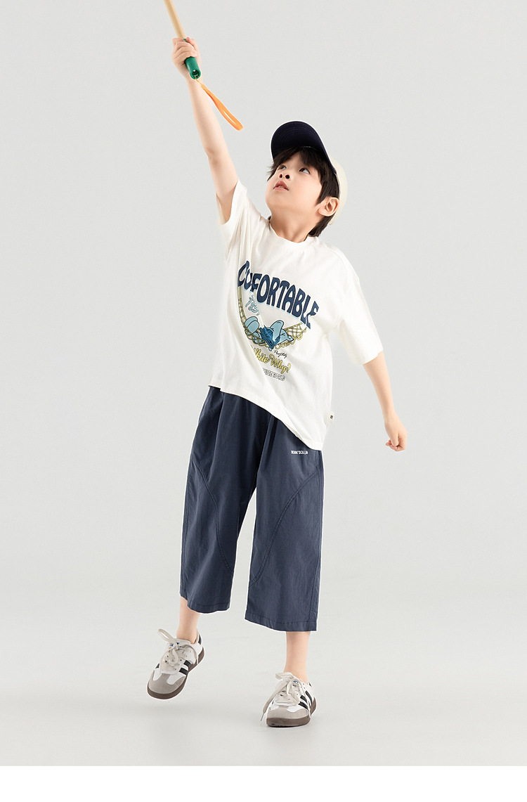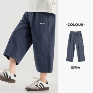 多多家男童裤子中大童夏季宽松直筒八分裤款柔软垂顺儿童休闲裤潮