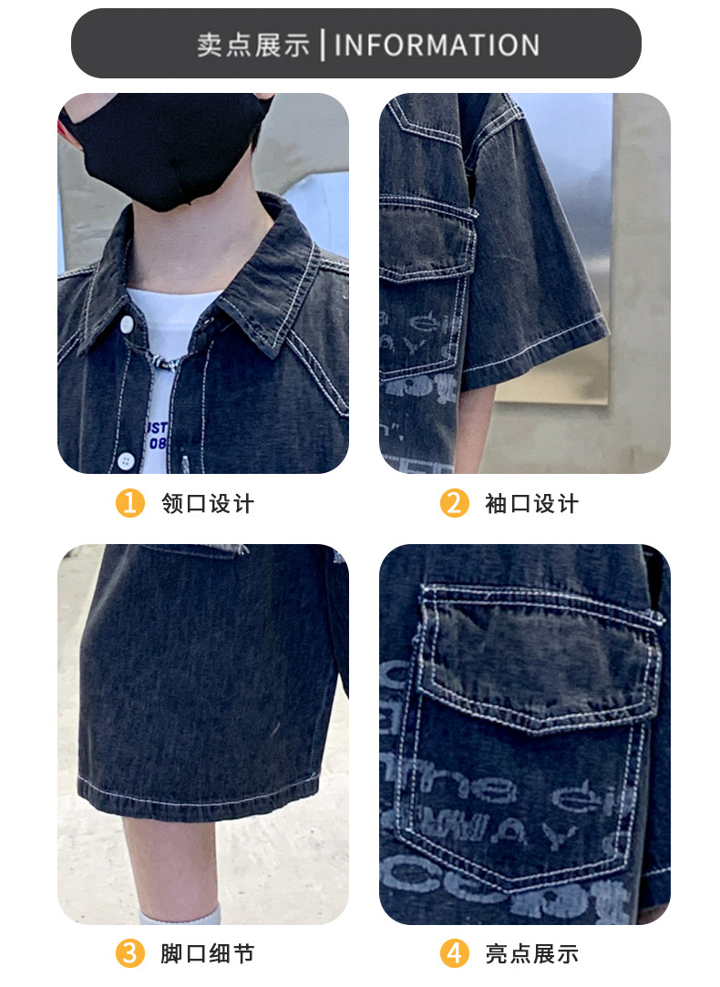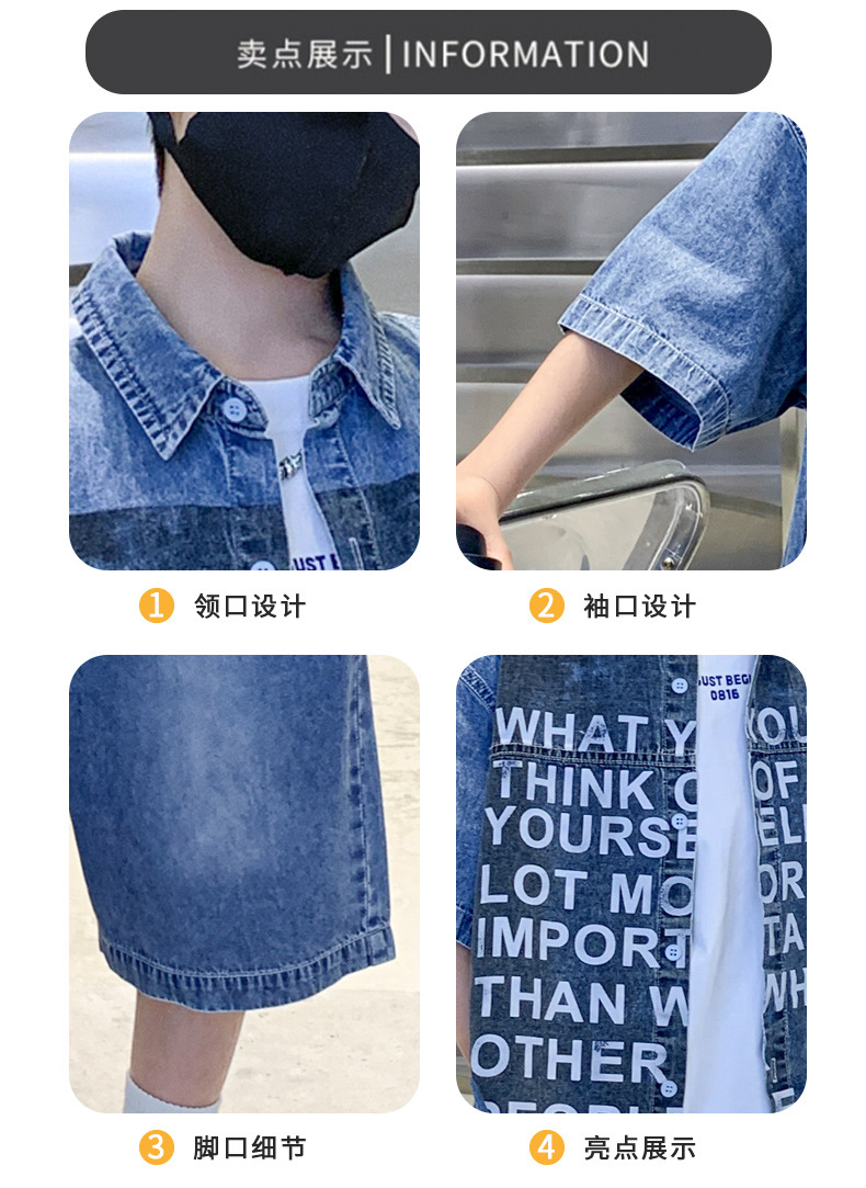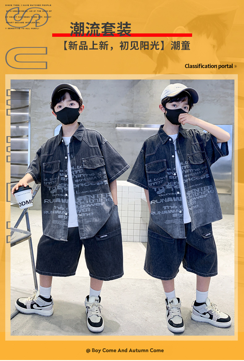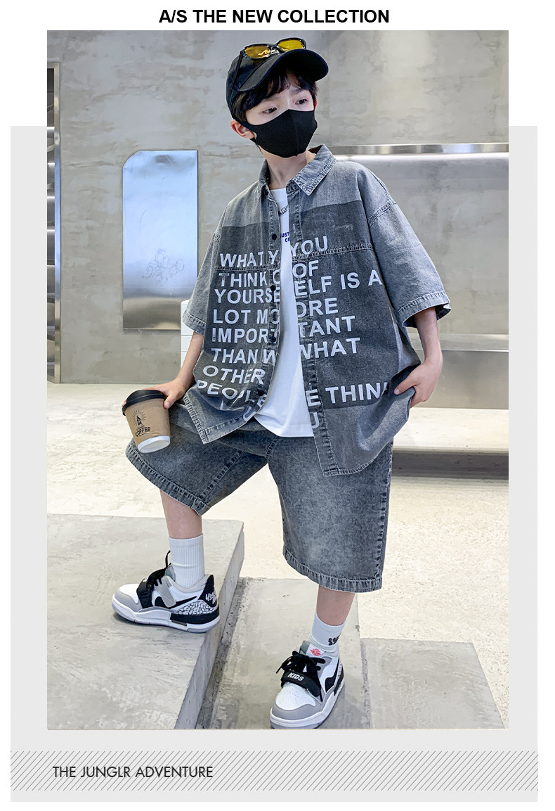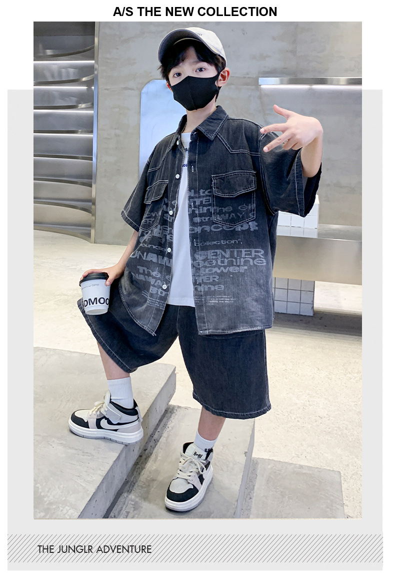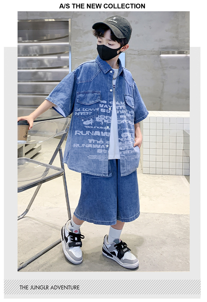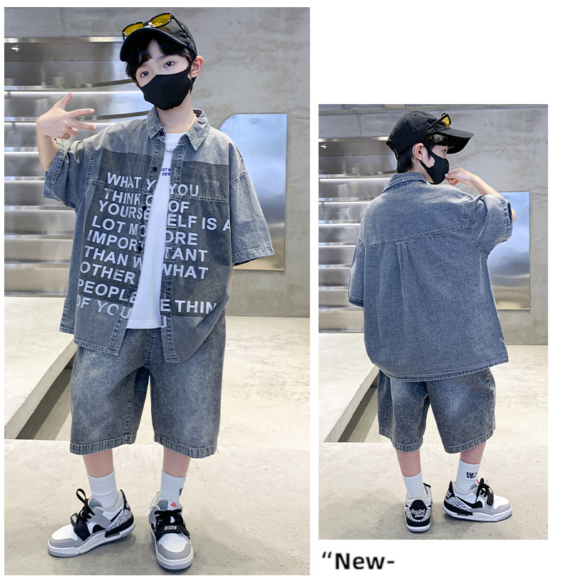 男童夏装套装2025新款中大童夏季薄款男孩儿童牛仔衬衫短袖两件套