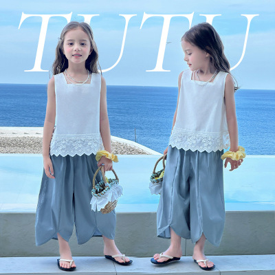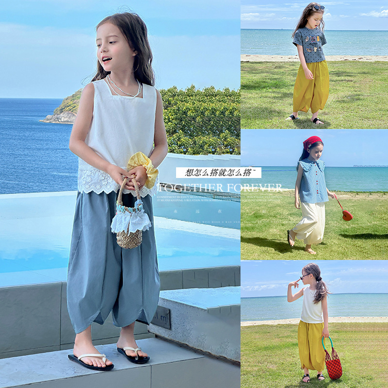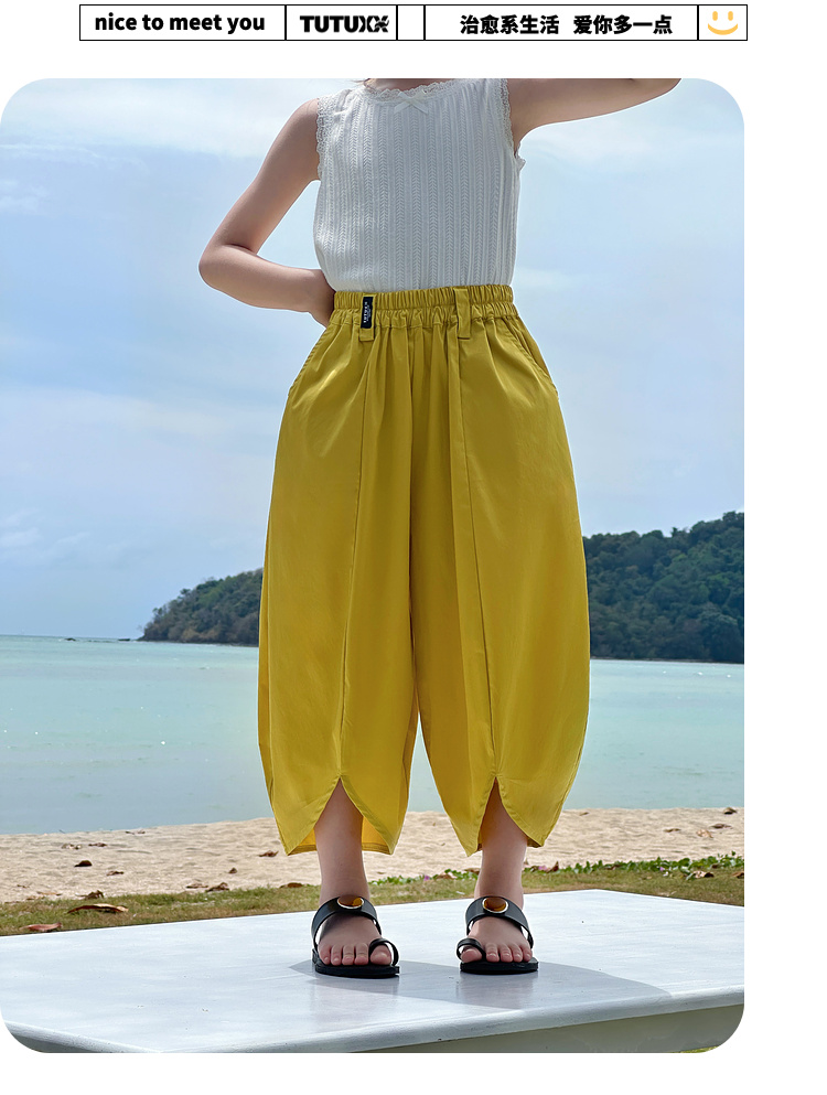 TUTU小象女童灯笼裤2025春新款儿童洋气阔腿裤夏装亲子慵懒花瓣裤