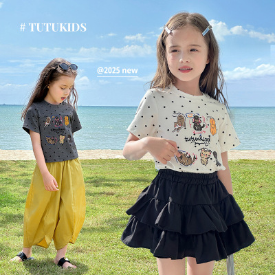 图图小象女童短袖2025春装新款儿童凉感上衣夏季亲子波点棉感T恤