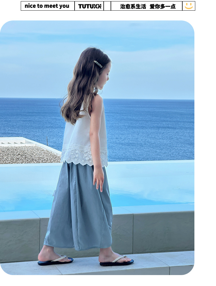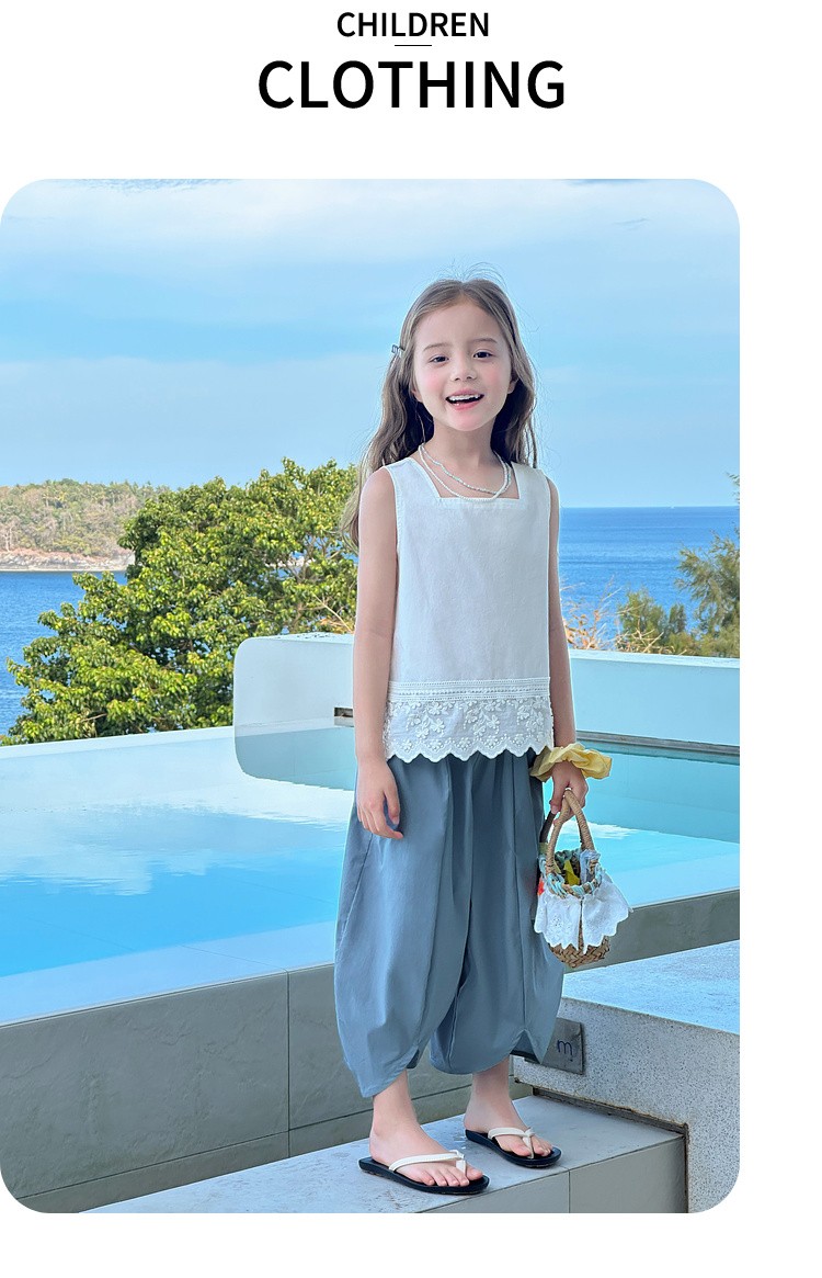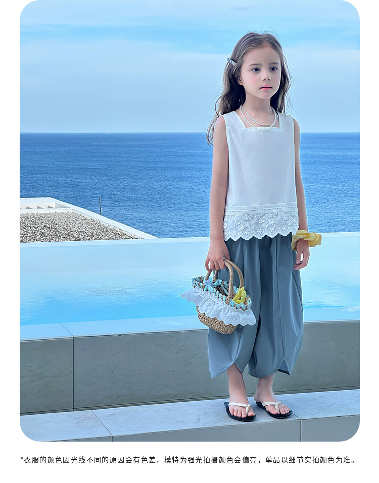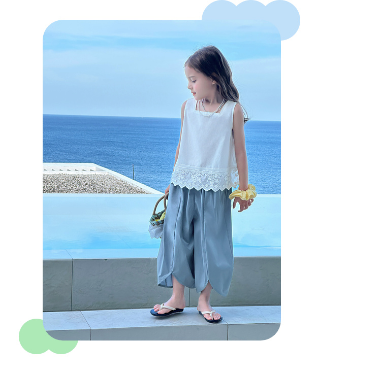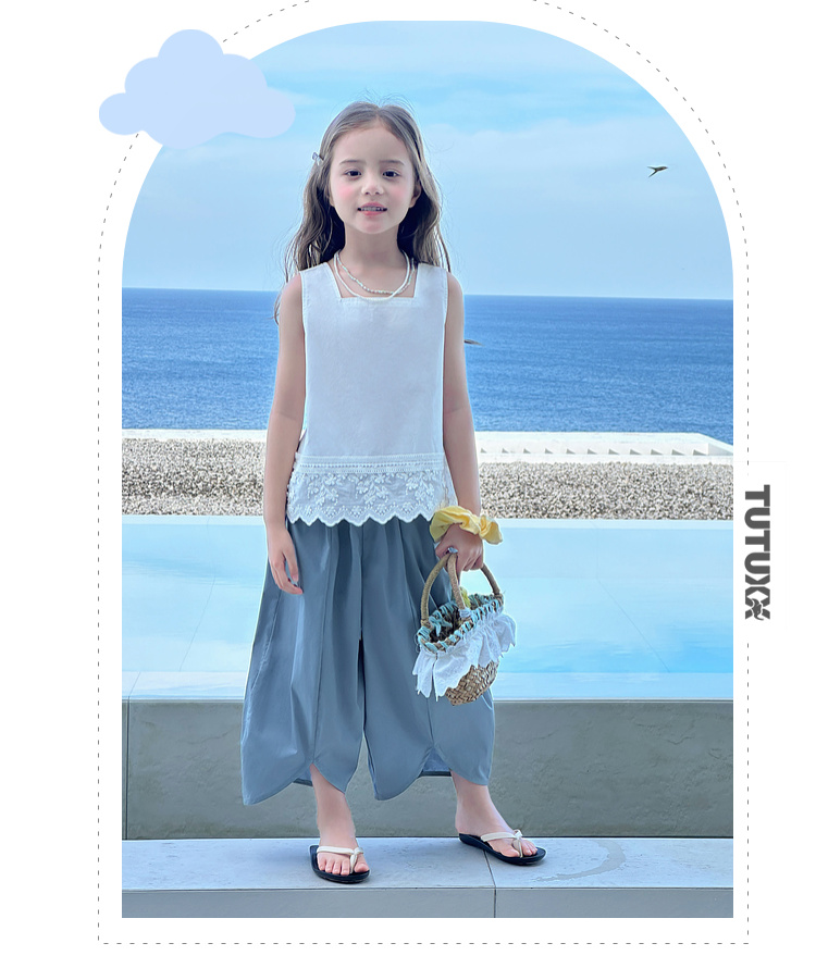 图图小象女童花边背心2025春装新款韩版简约无袖上衣夏季亲子背心