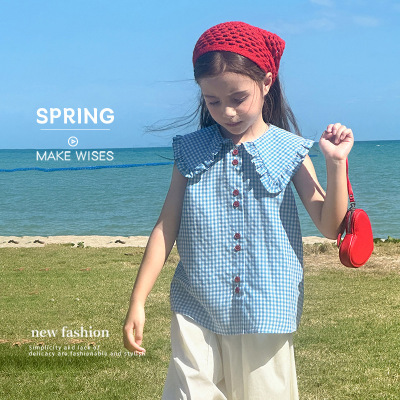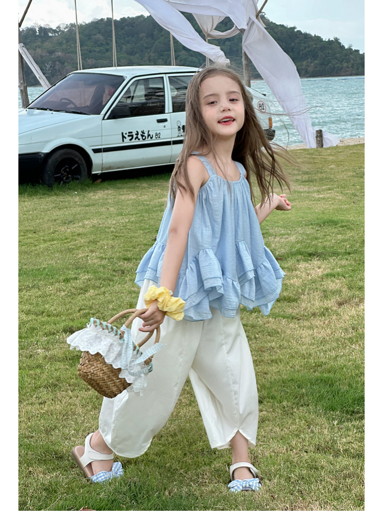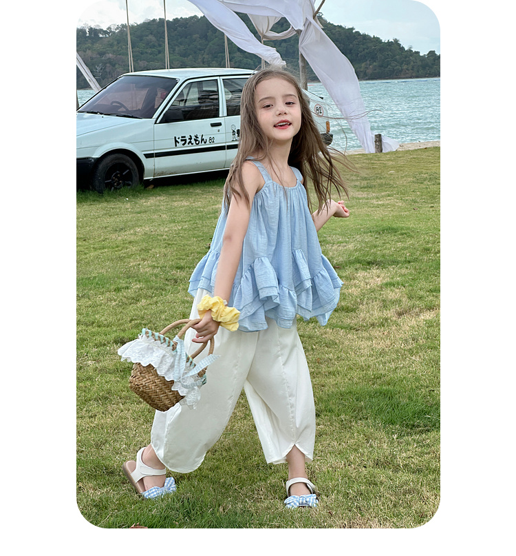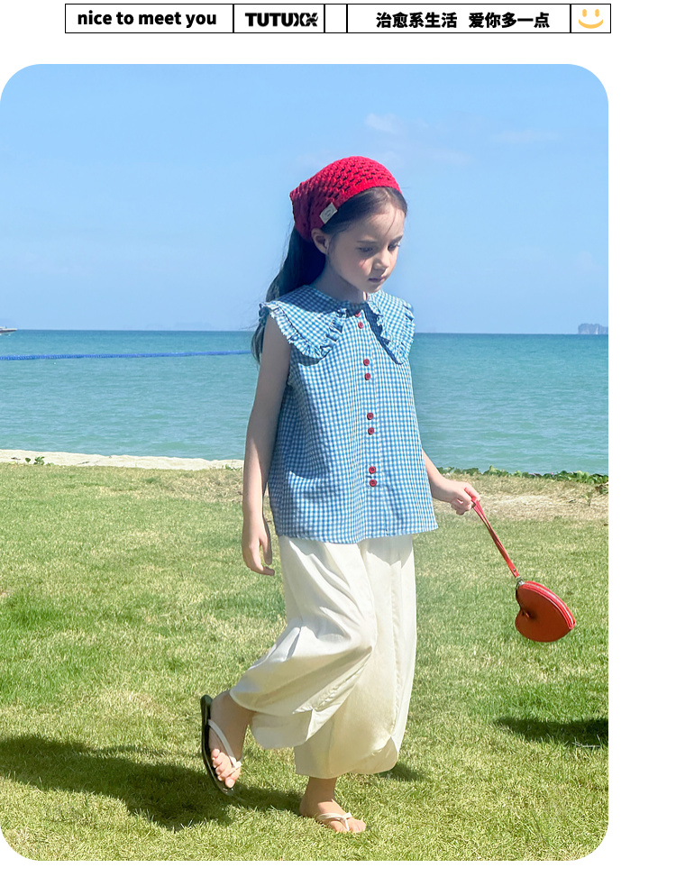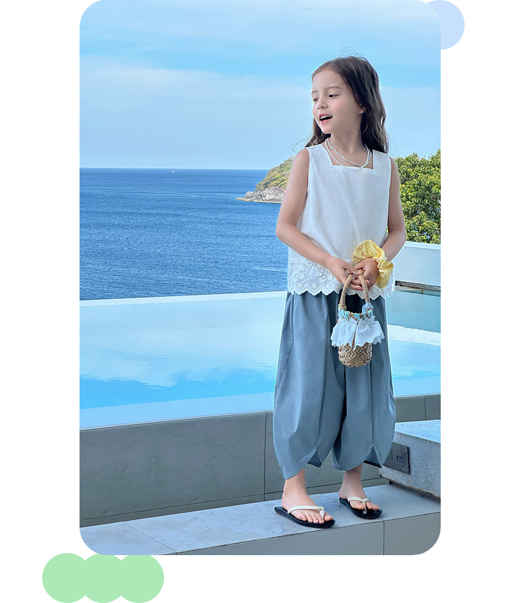 图图小象女童花边背心2025春装新款韩版简约无袖上衣夏季亲子背心