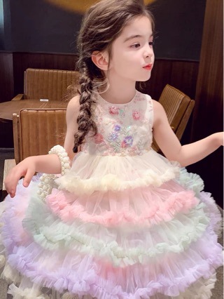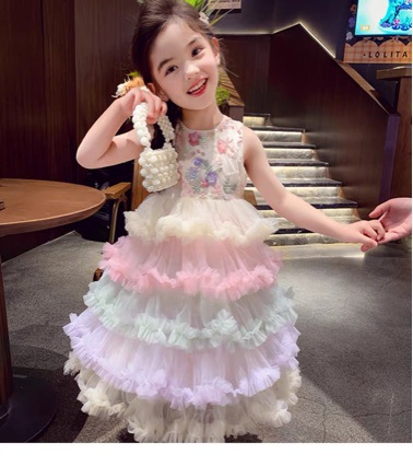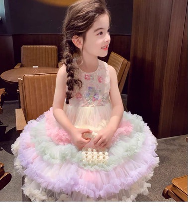 2025公主裙女童夏季新款无袖彩虹蓬蓬连衣裙中长款女宝