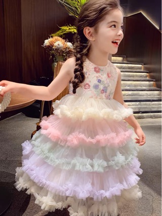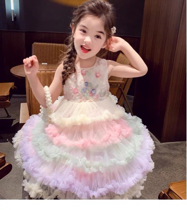 商品名称:2025公主裙女童夏季新款无袖彩虹蓬蓬连衣裙中长款女宝