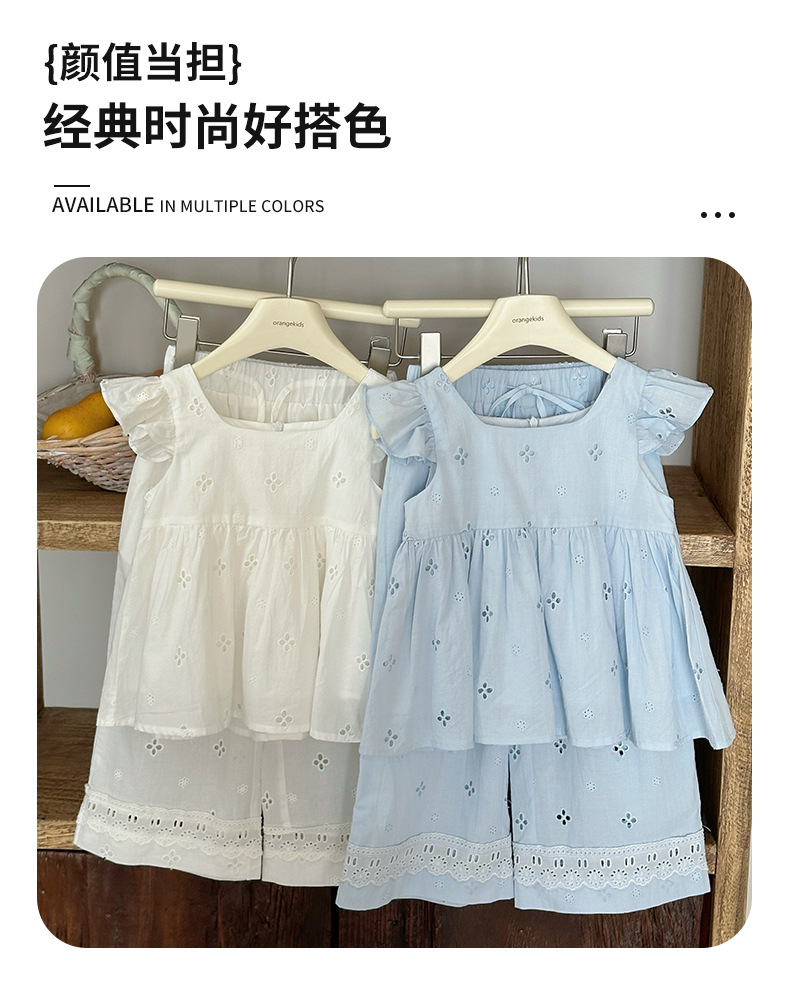 橘子家童装女童夏装套装2025新款洋气纯棉上衣宽松休闲裤两件套
