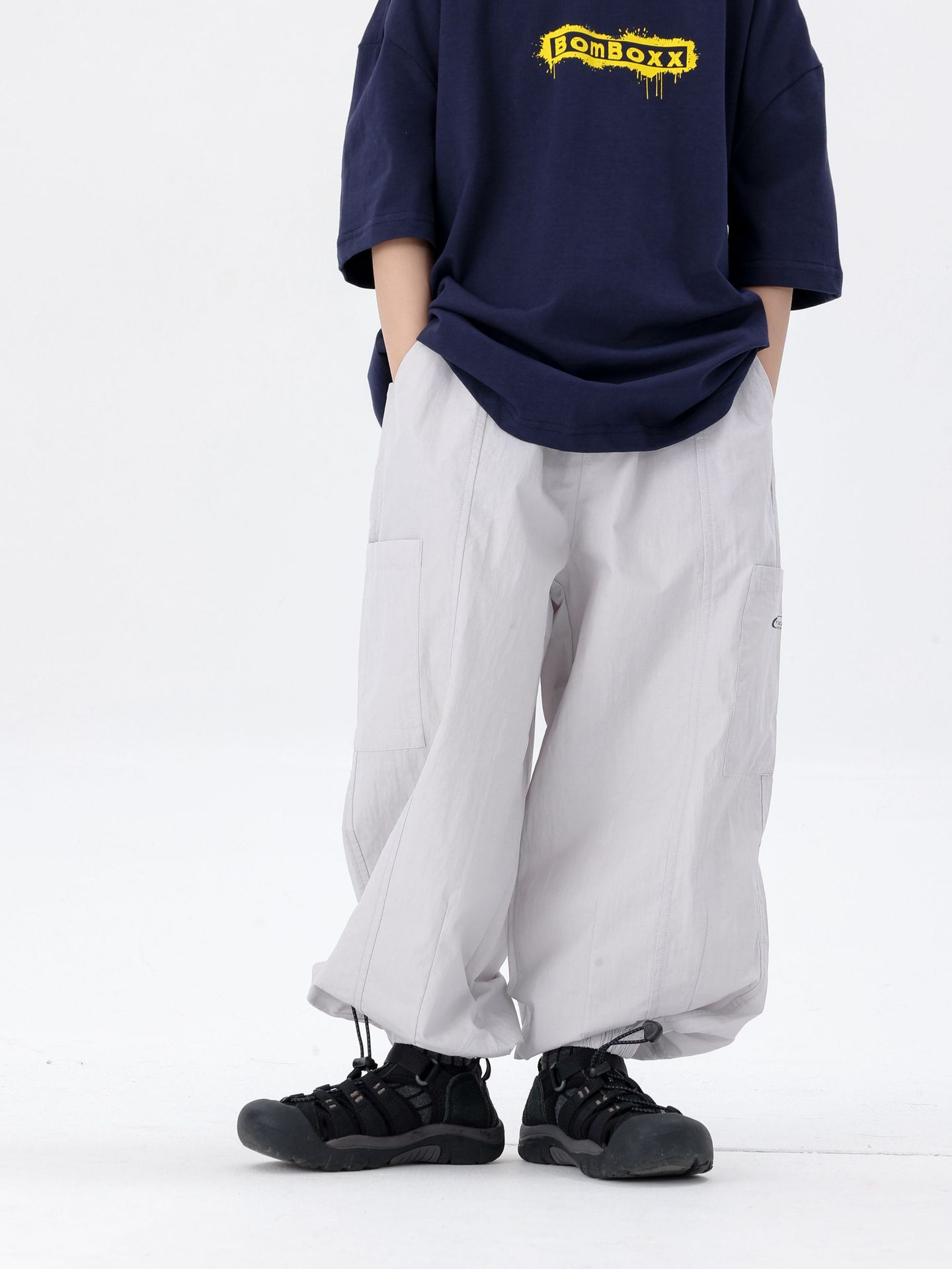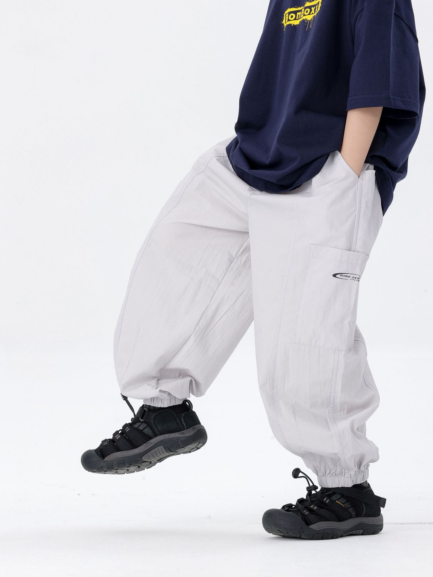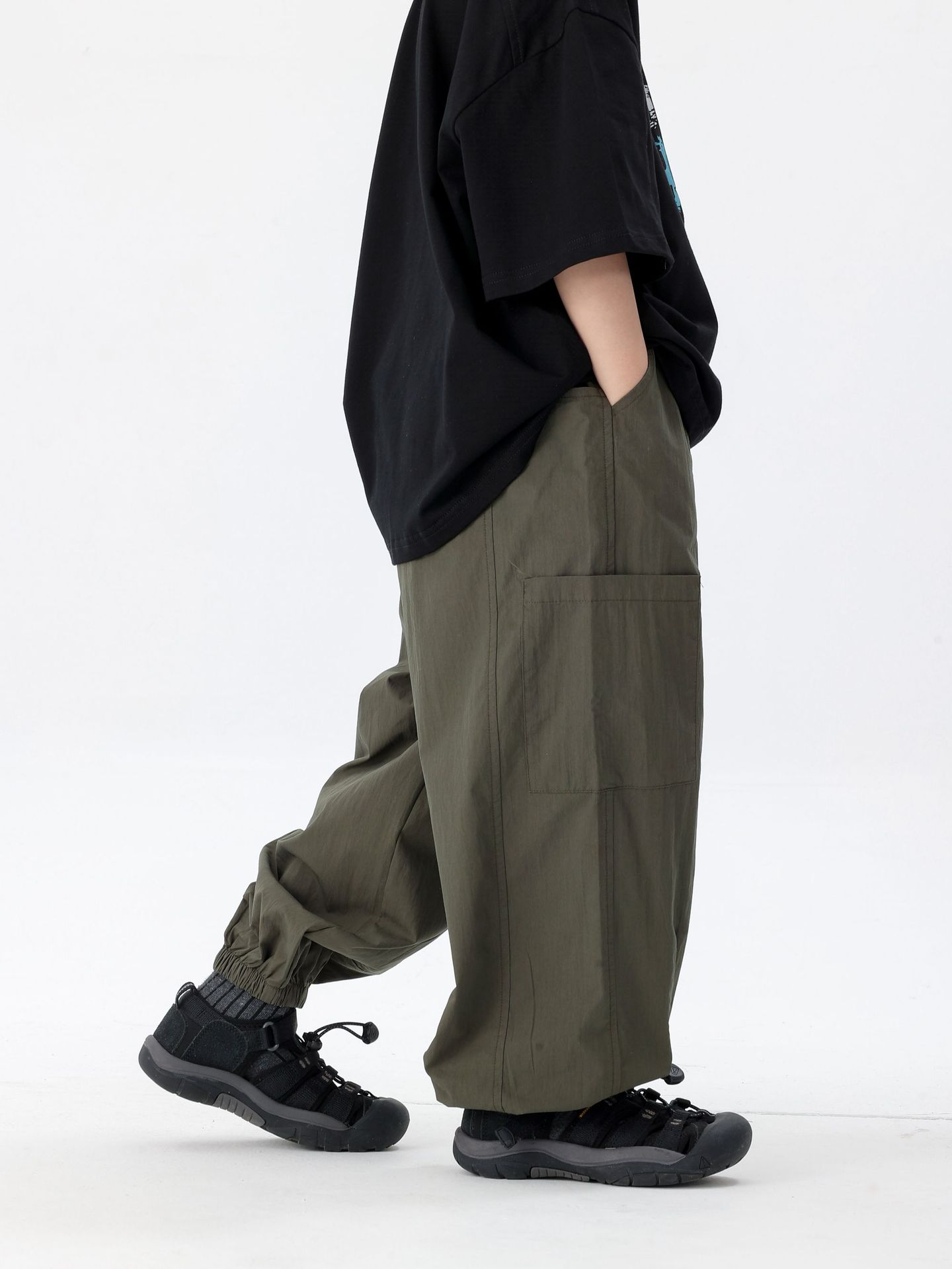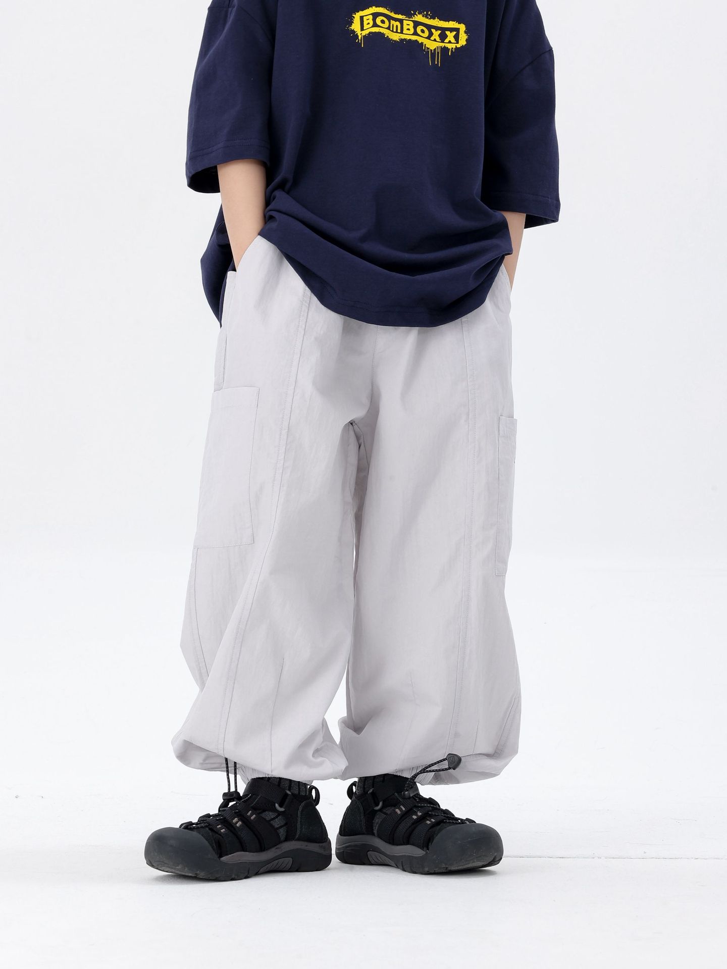商品名称:25夏季新款童裤束脚男童防蚊裤童休闲裤灰白军绿色简约童裤