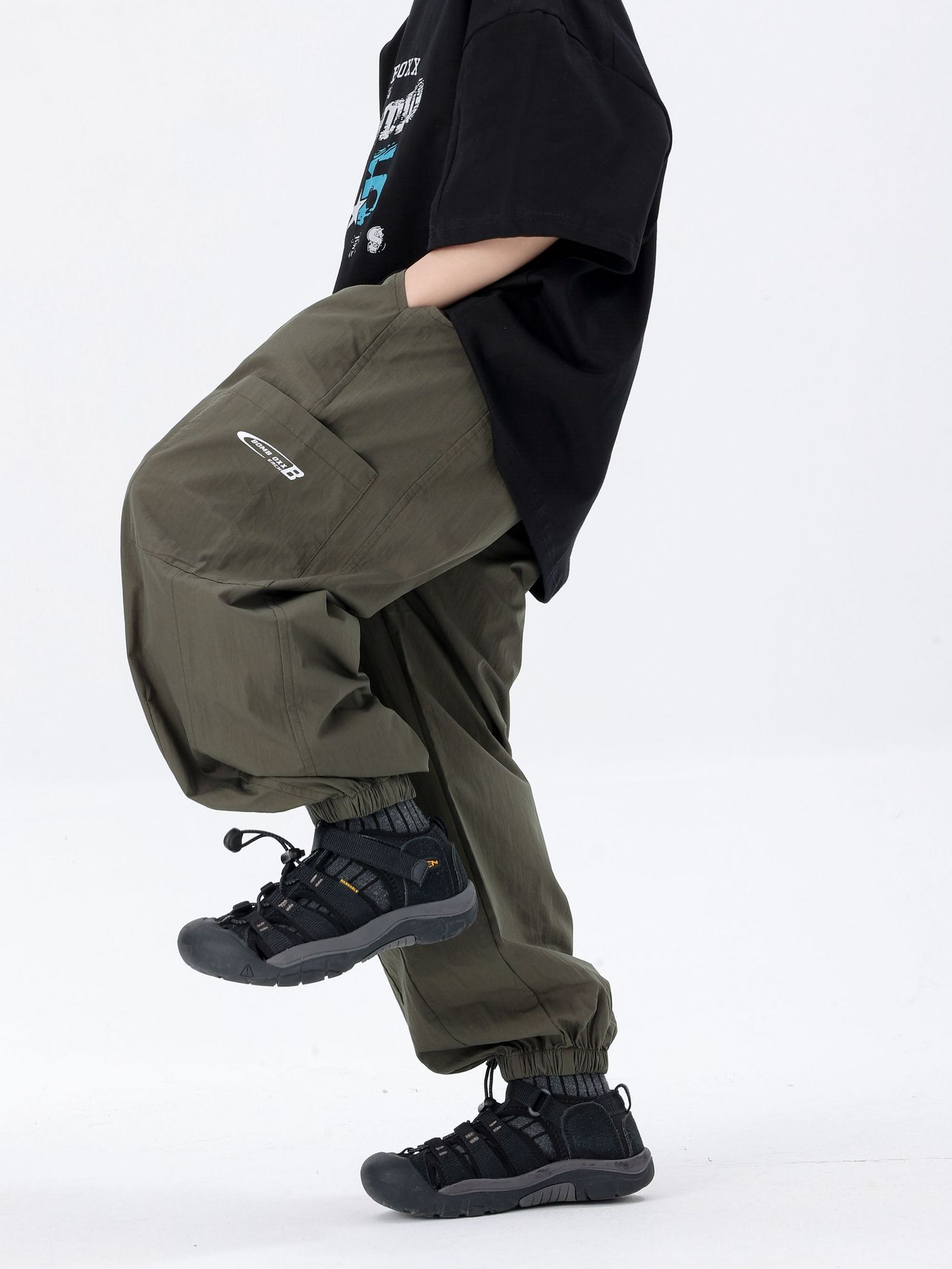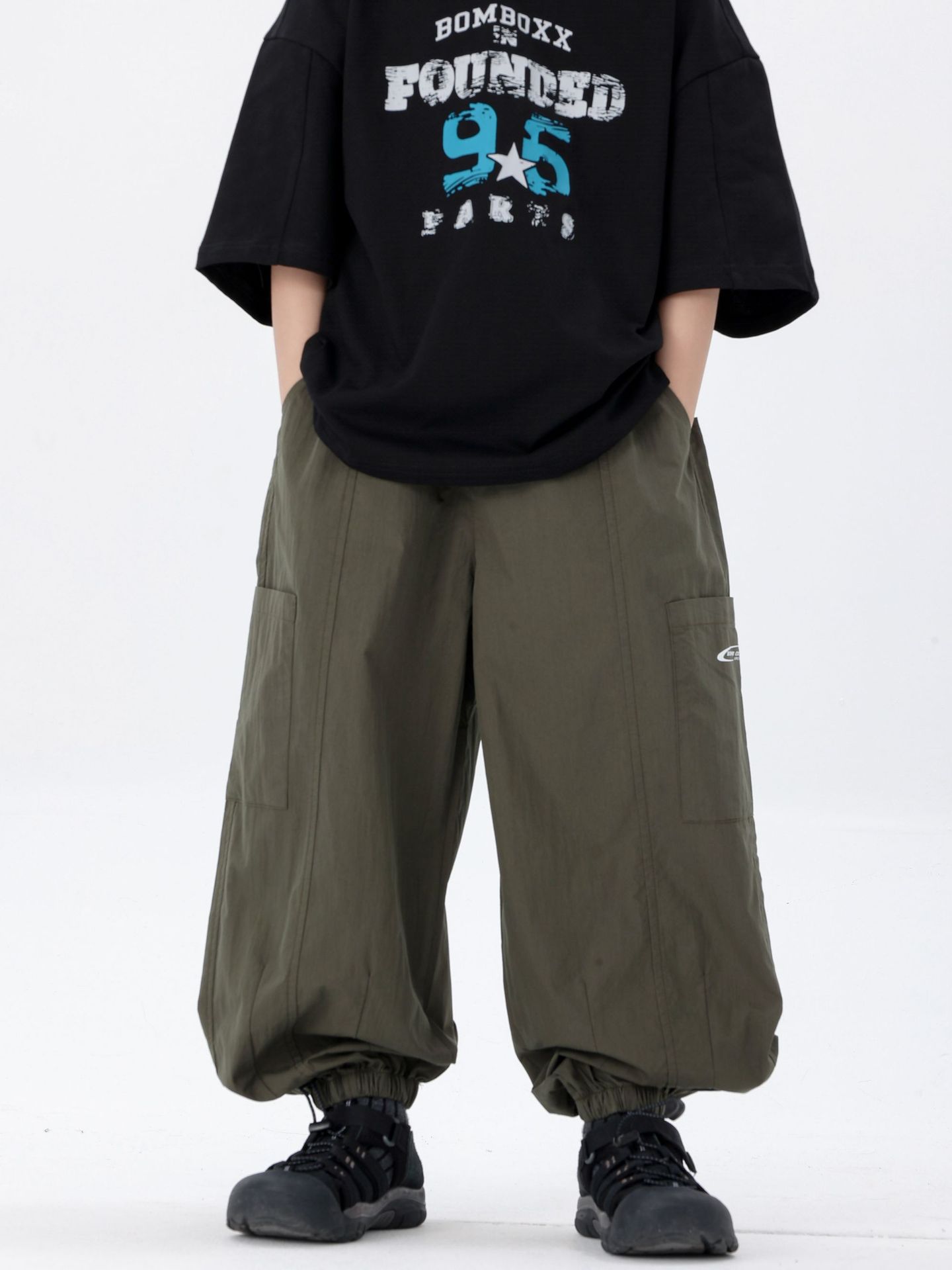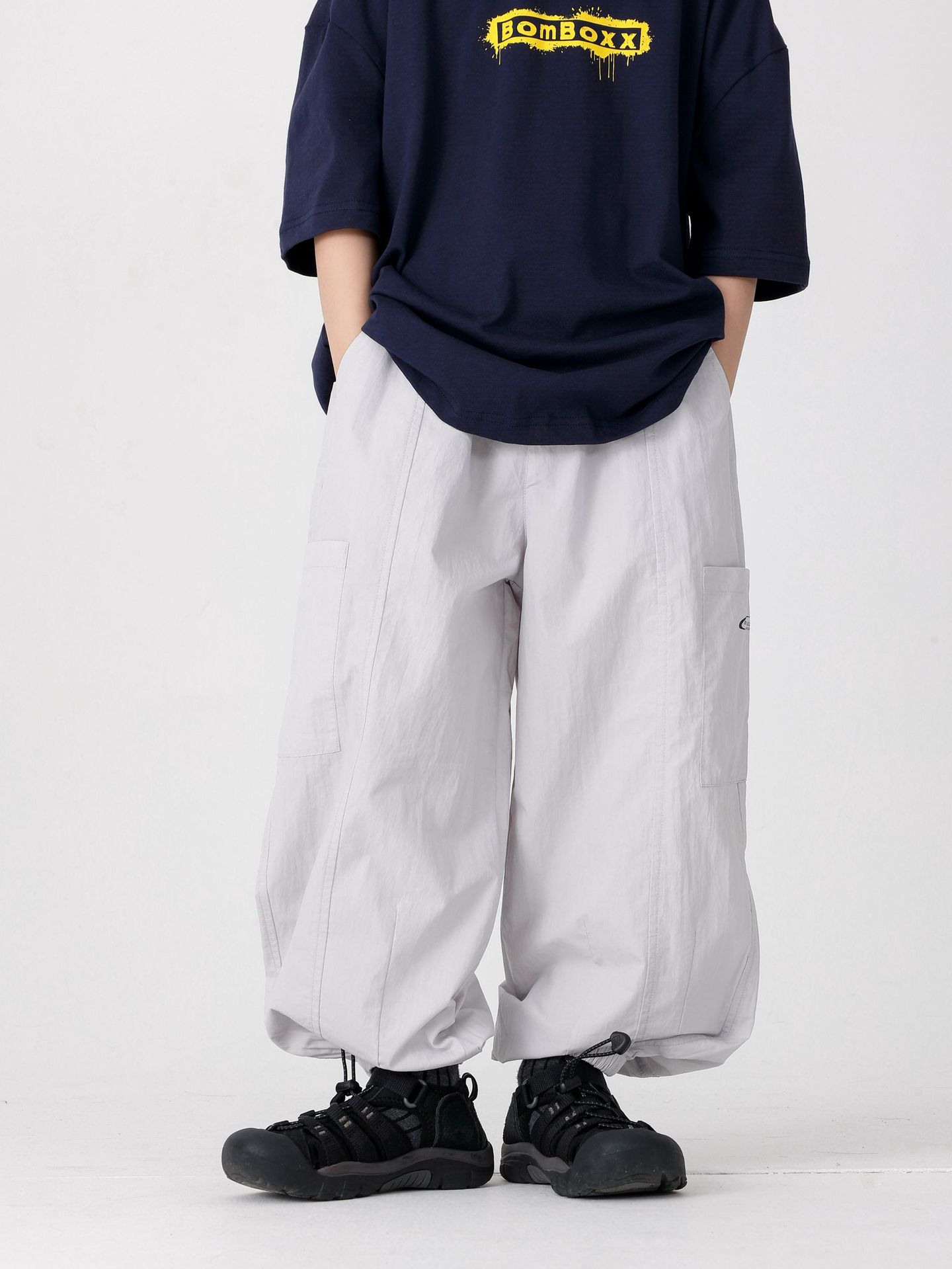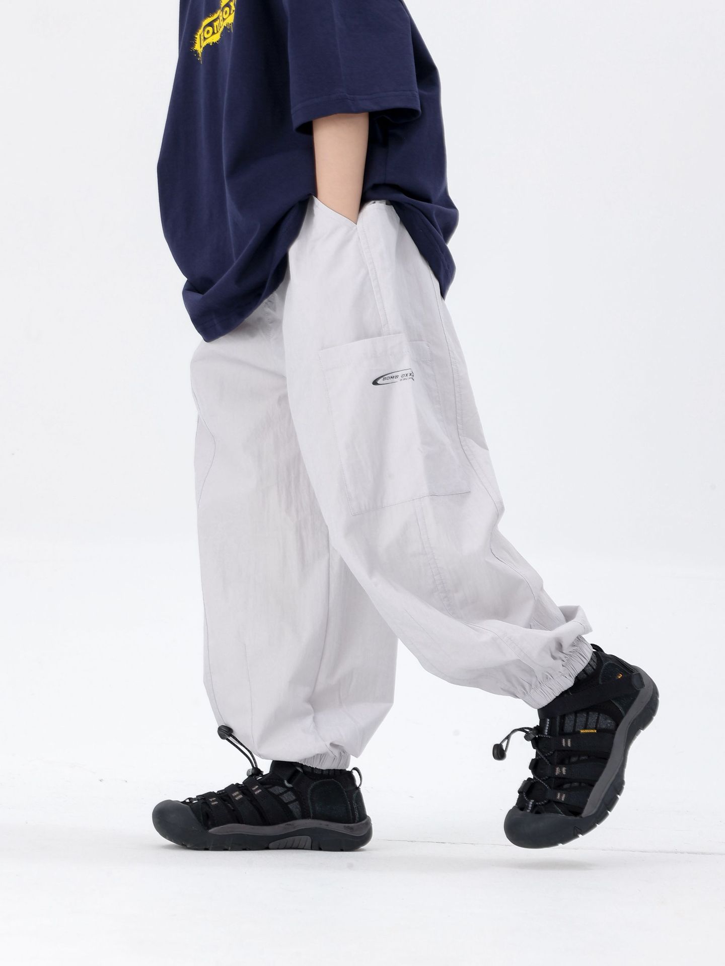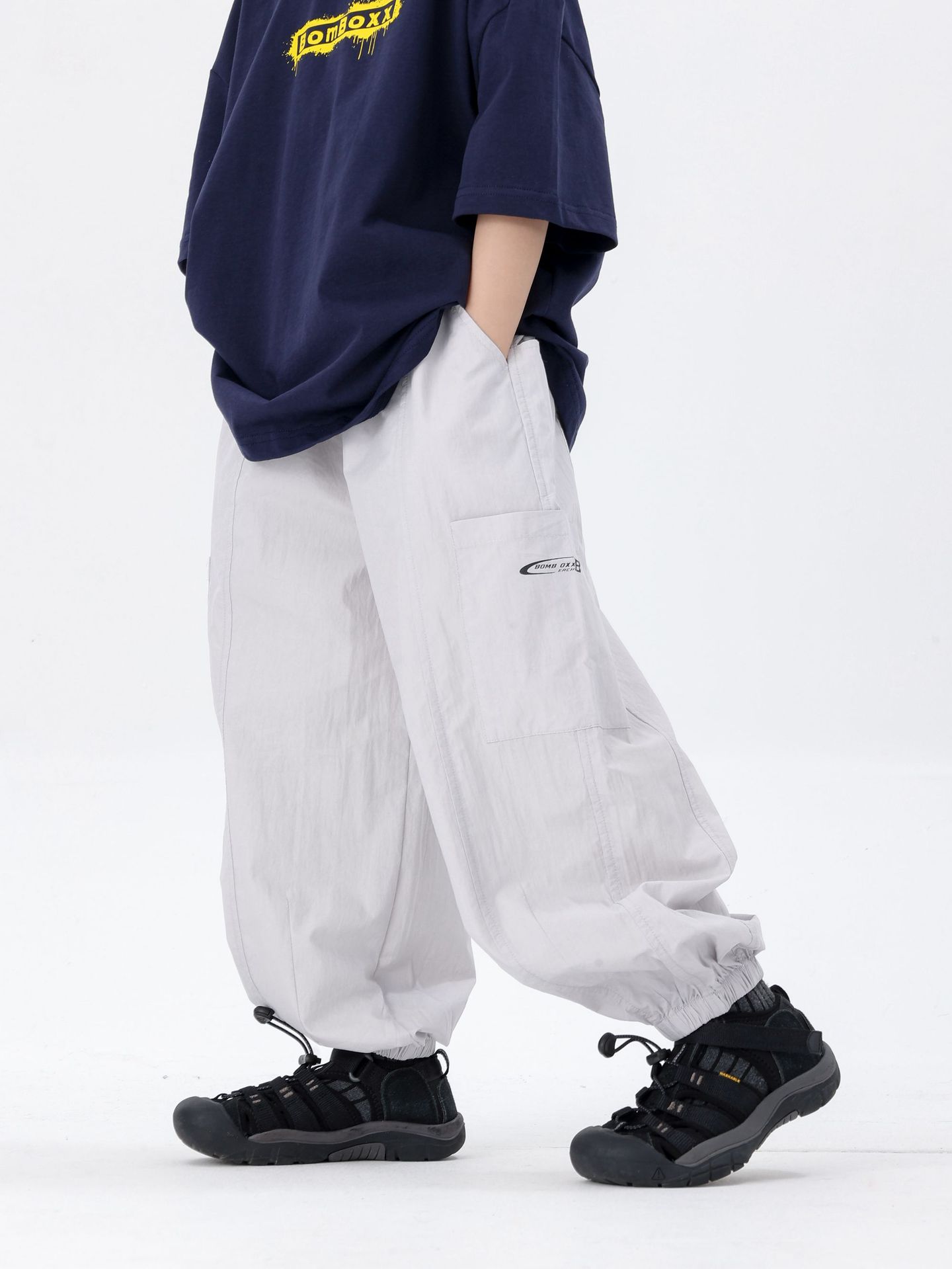 商品名称:25夏季新款童裤束脚男童防蚊裤童休闲裤灰白军绿色简约童裤