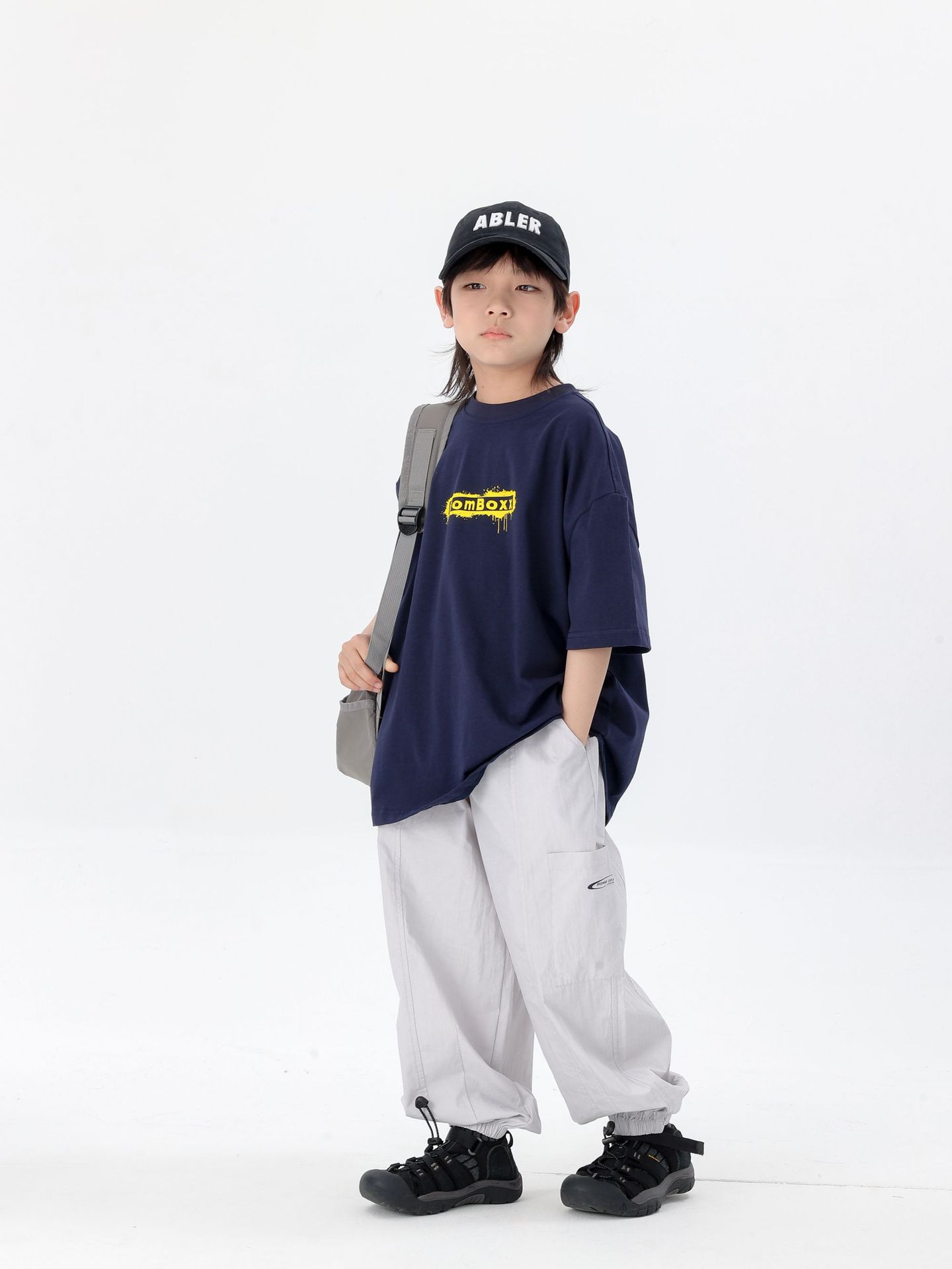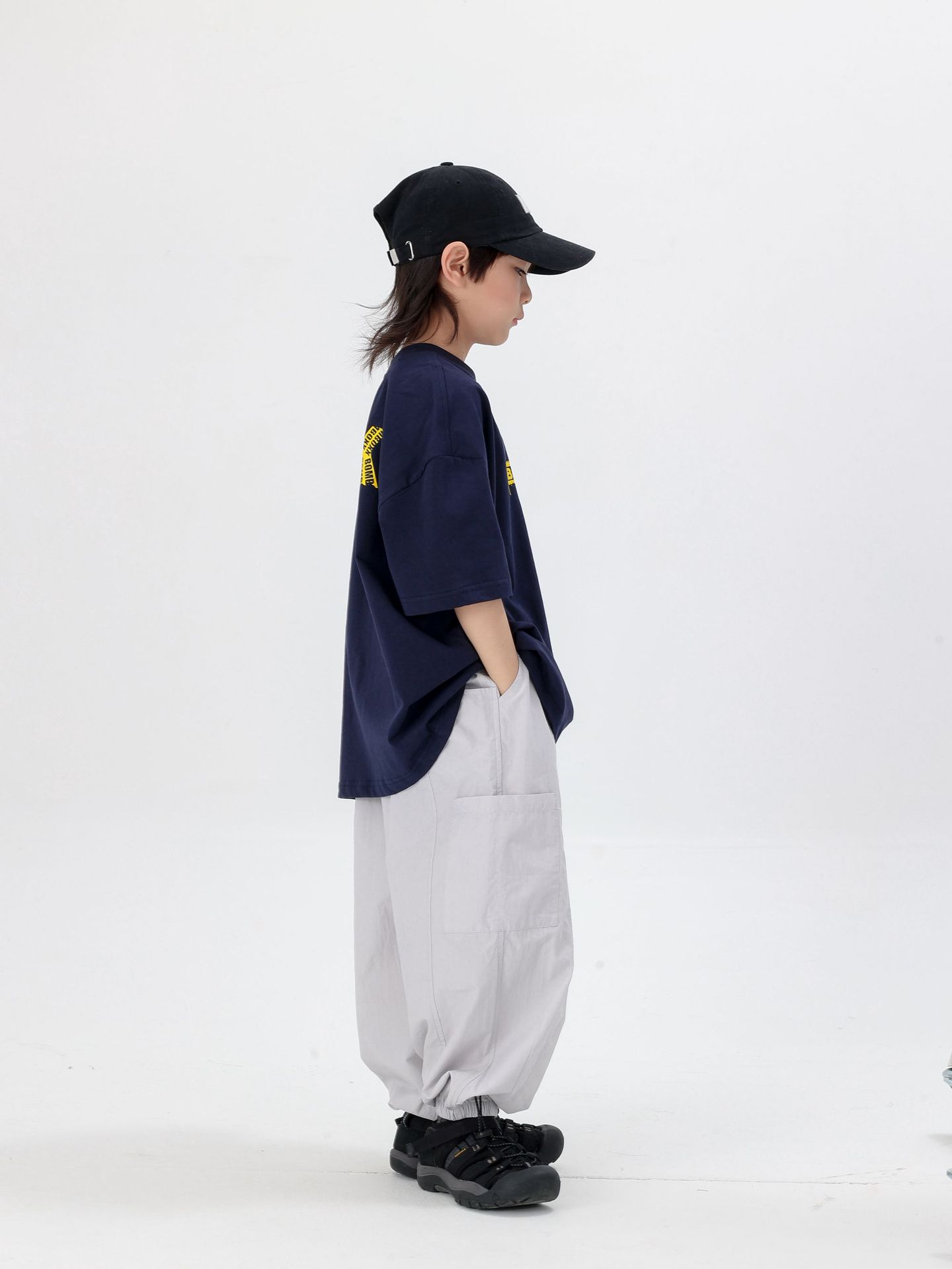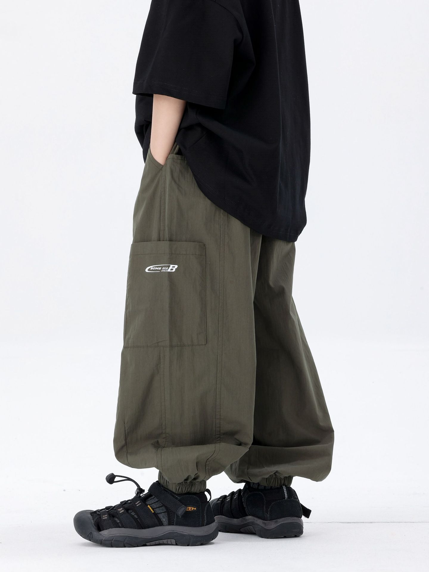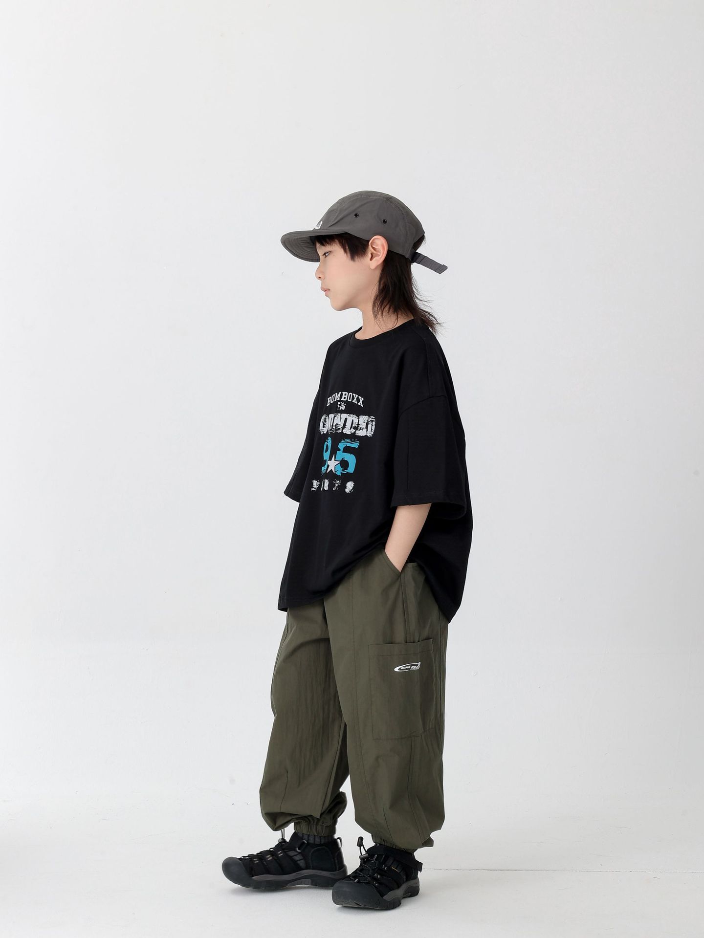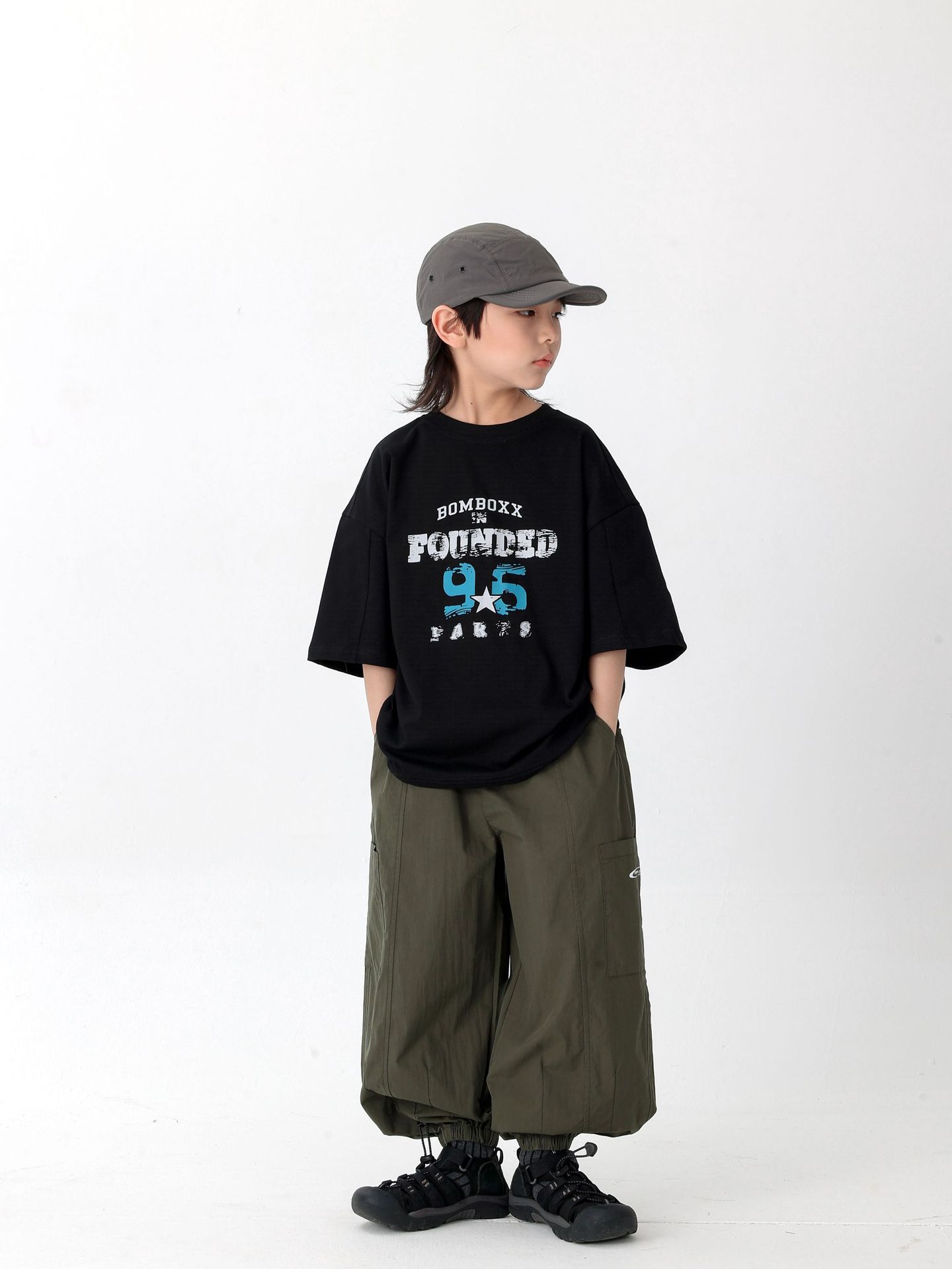 商品名称:25夏季新款童裤束脚男童防蚊裤童休闲裤灰白军绿色简约童裤