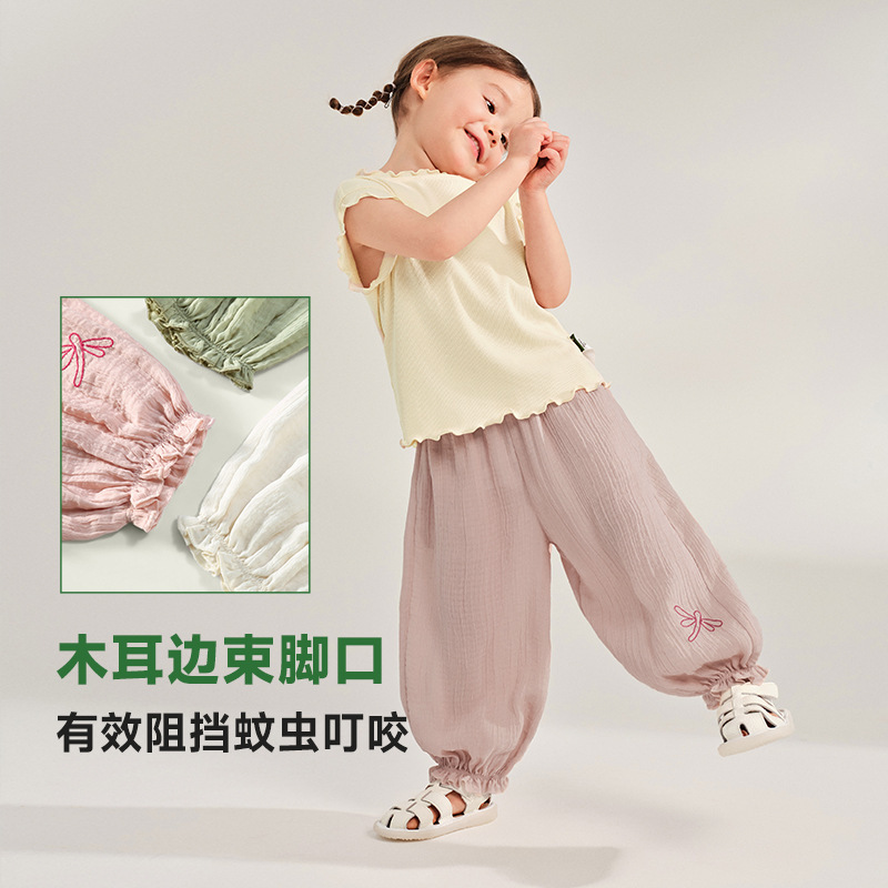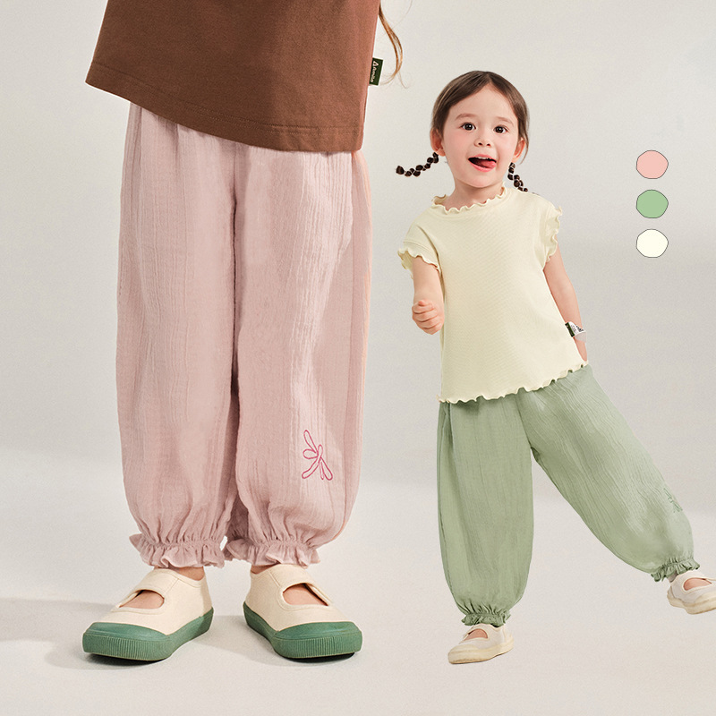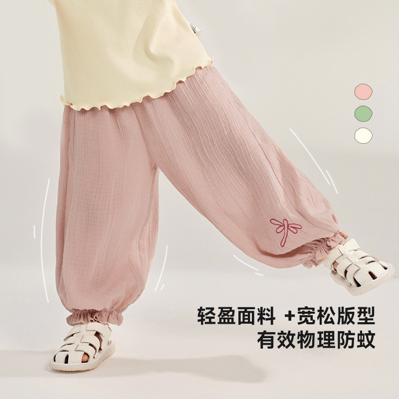 商品名称:阿米拉童装2025年夏季新款儿童透气束脚防蚊裤男女童动物刺绣裤子