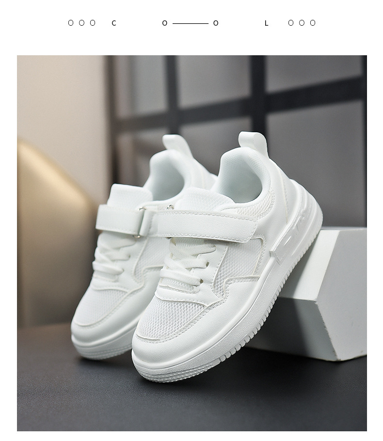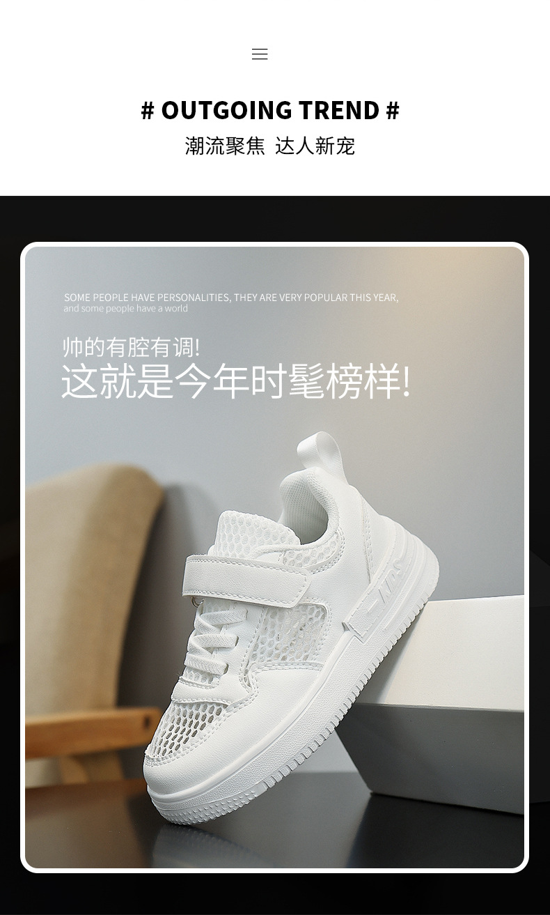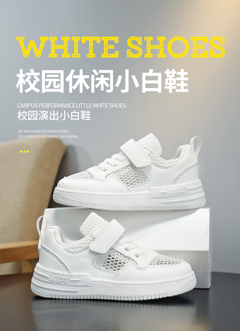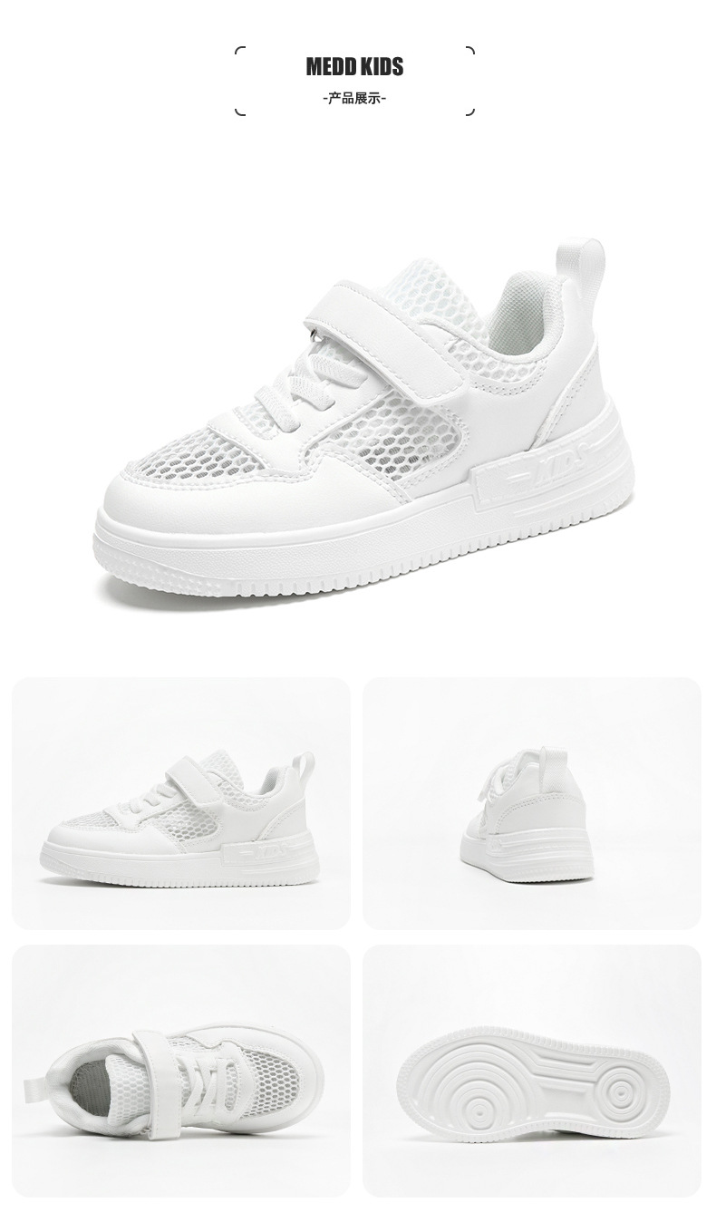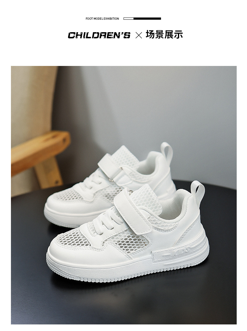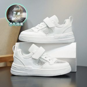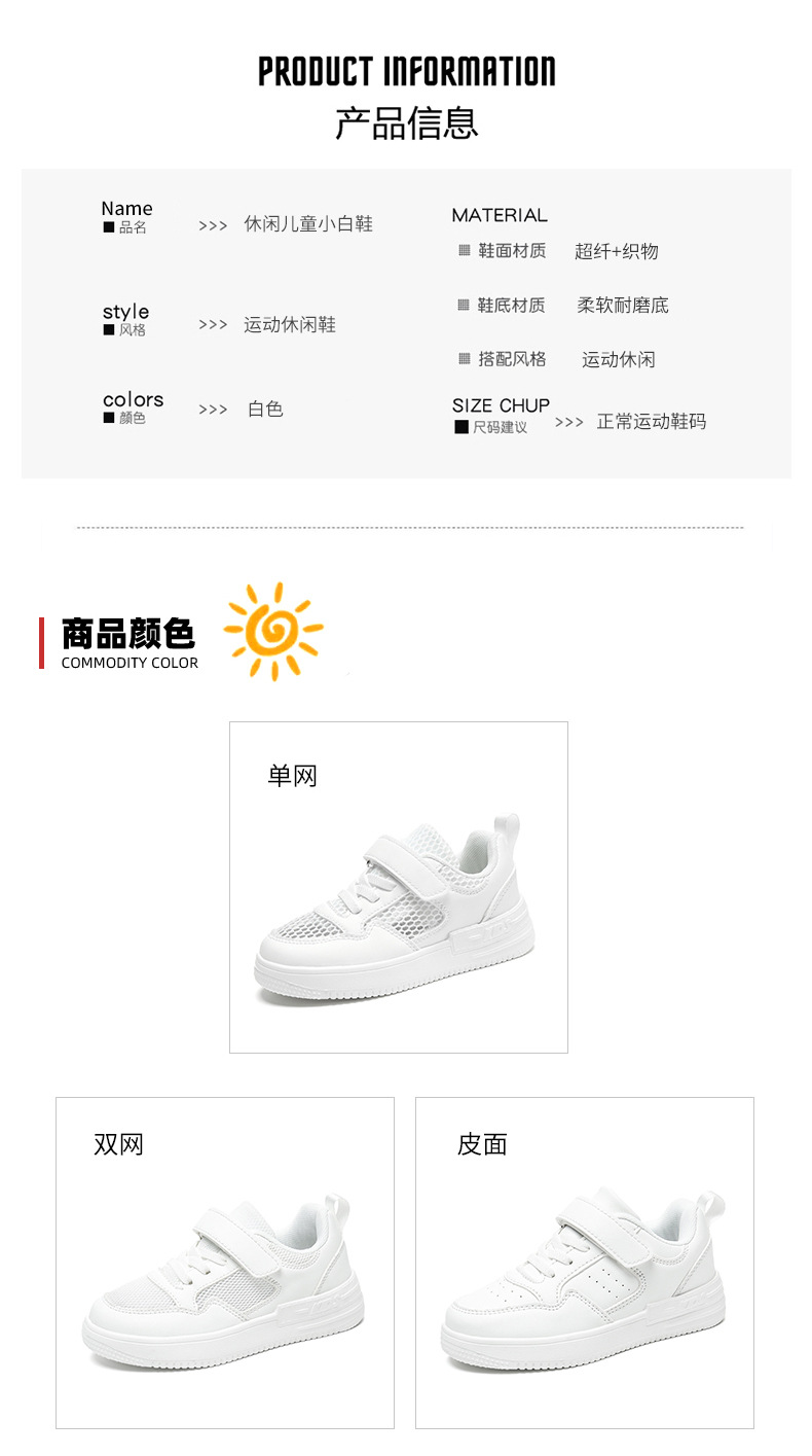 儿童小白鞋春夏季新款透气网面皮面男女童小学生校园表演运动板鞋