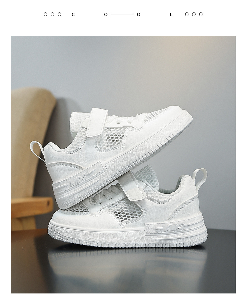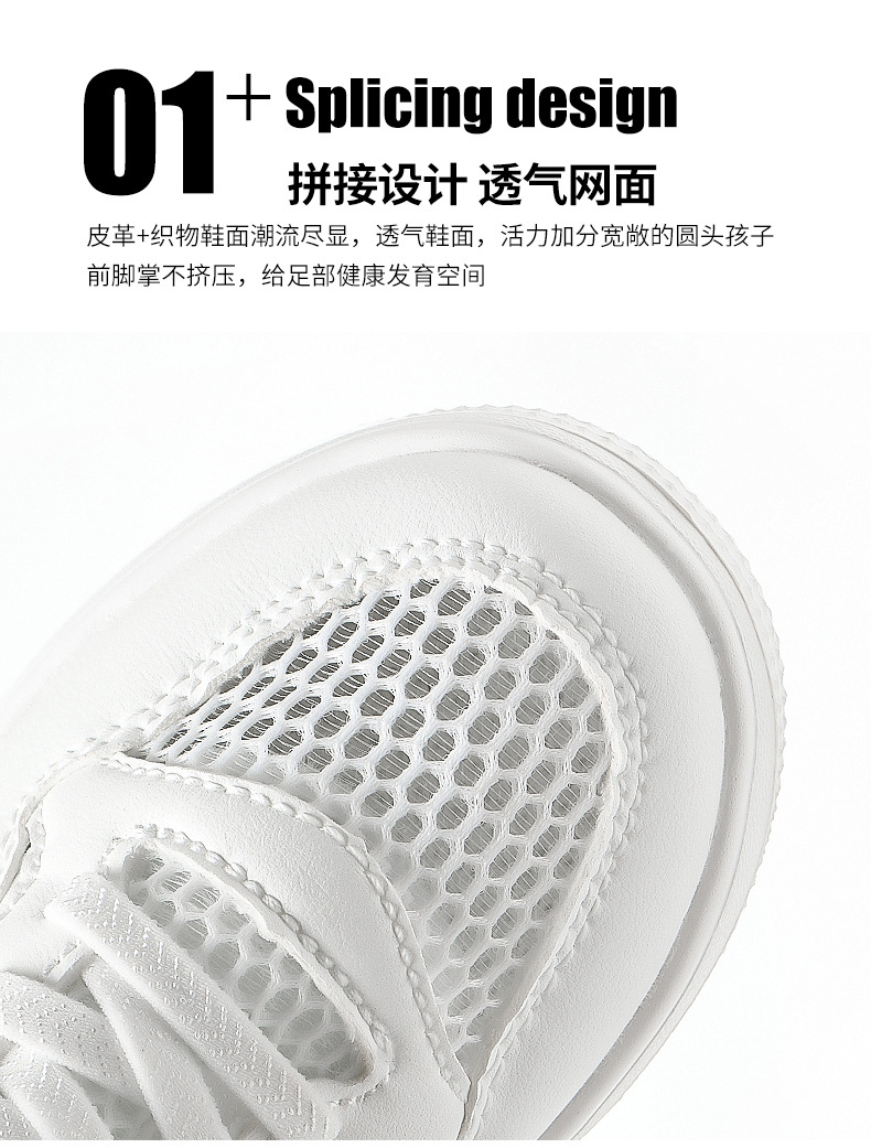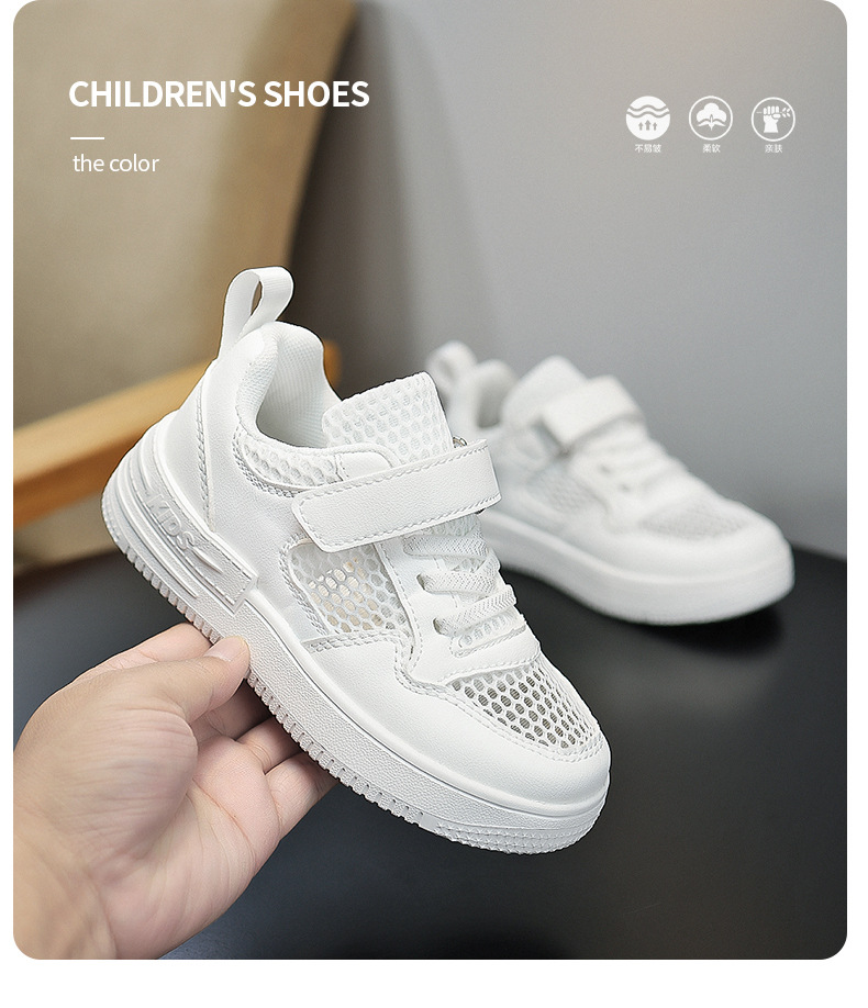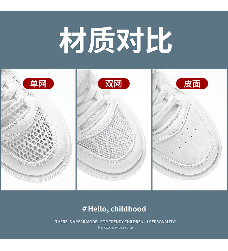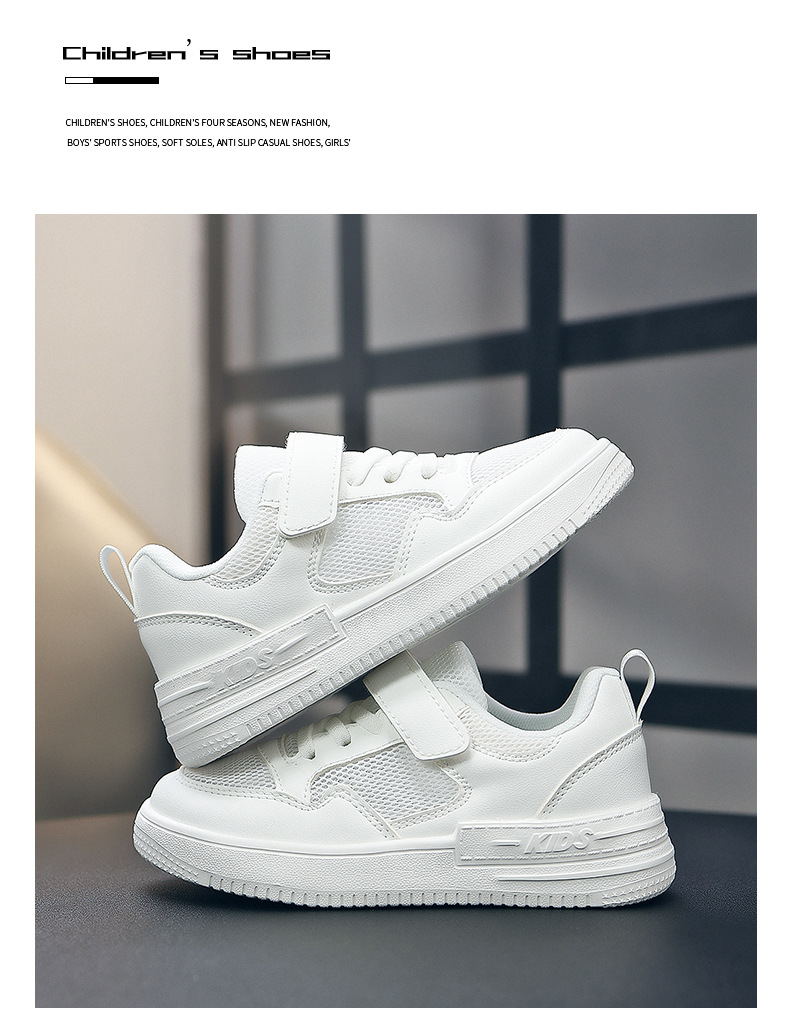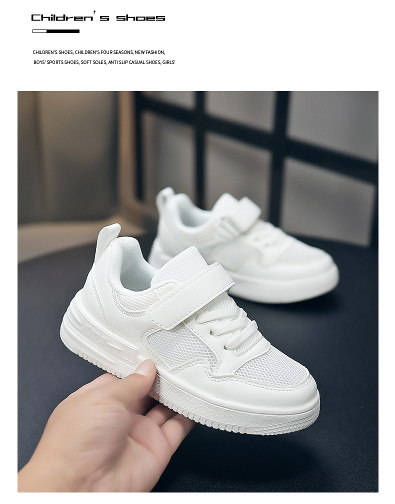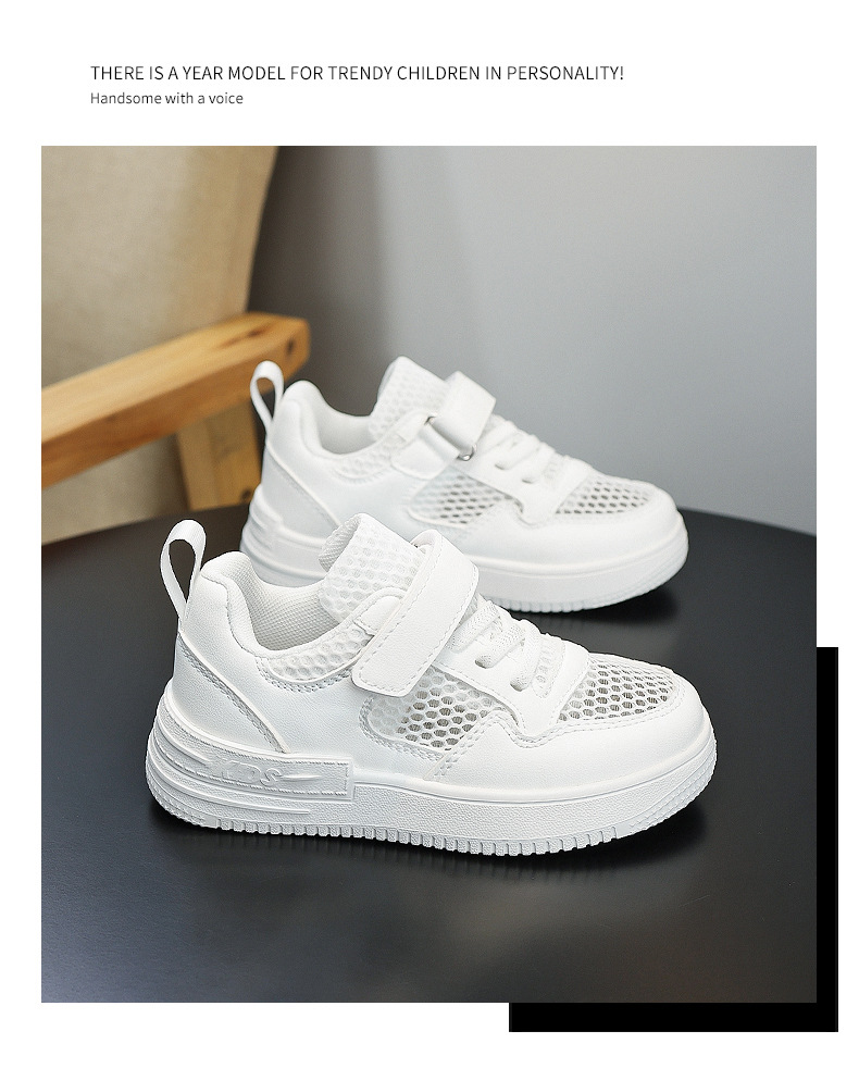 儿童小白鞋春夏季新款透气网面皮面男女童小学生校园表演运动板鞋