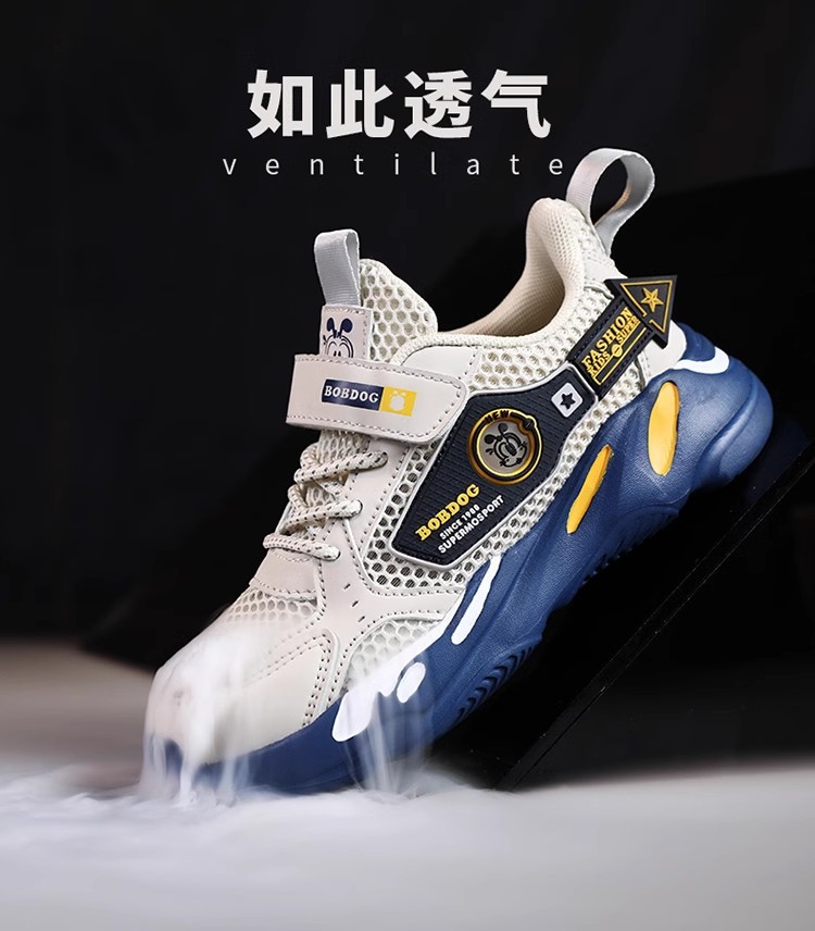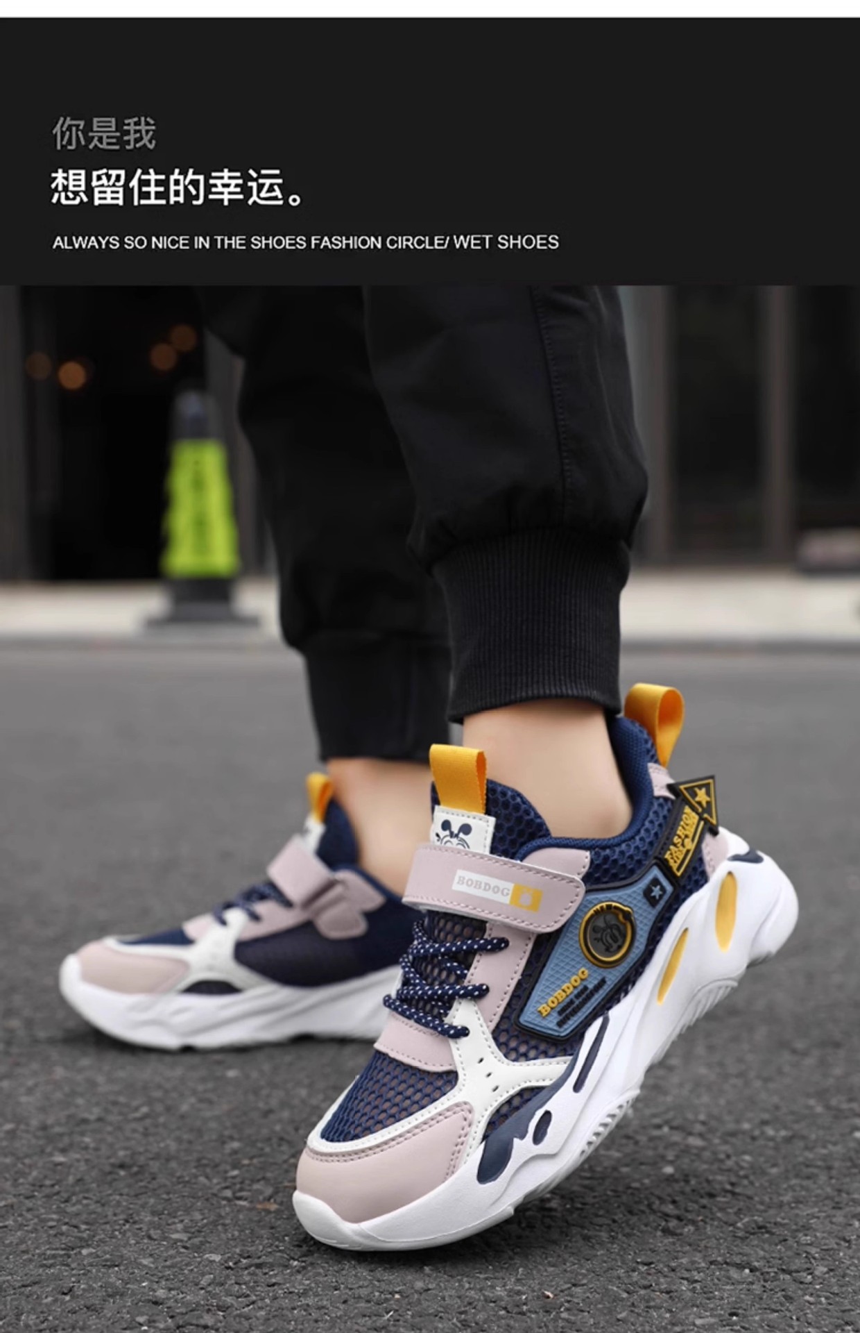 商品名称:巴布豆男童鞋子春夏款2025新款夏季网鞋中大童网面透气儿童运动鞋