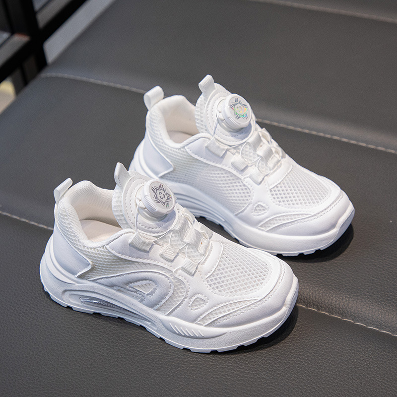 男童运动鞋软底网面透气儿童小白鞋旋转纽扣休闲中大童女童跑步鞋