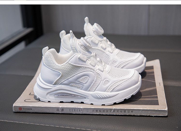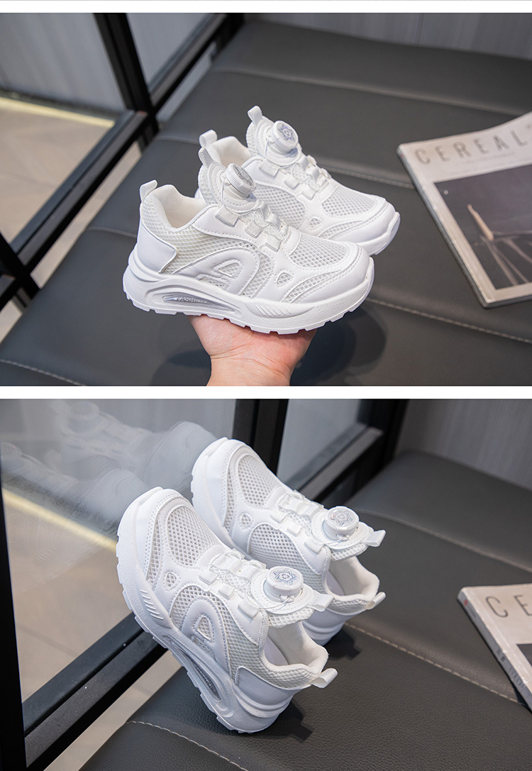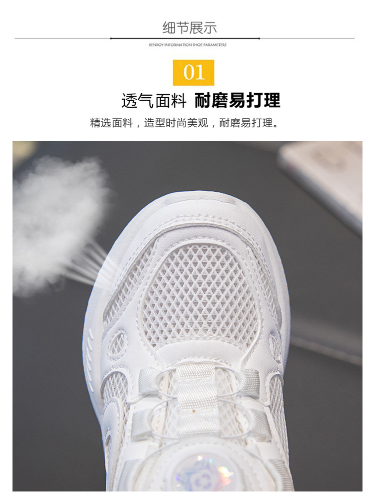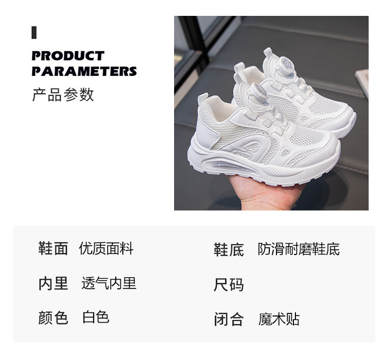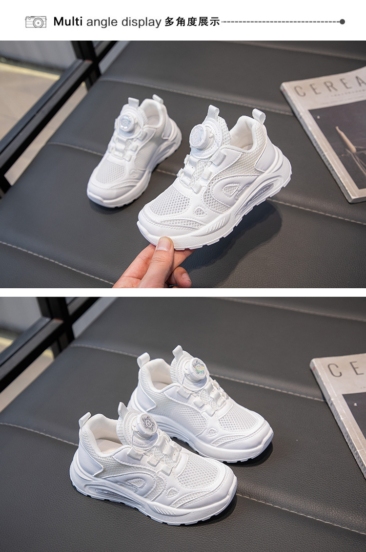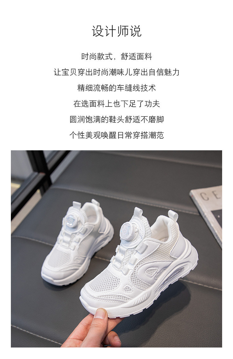 商品名称:男童运动鞋软底网面透气儿童小白鞋旋转纽扣休闲中大童女童跑步鞋