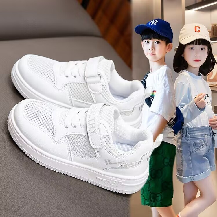 女童鞋小白鞋2024新款夏季网面透气儿童运动鞋女孩小学生校园板鞋