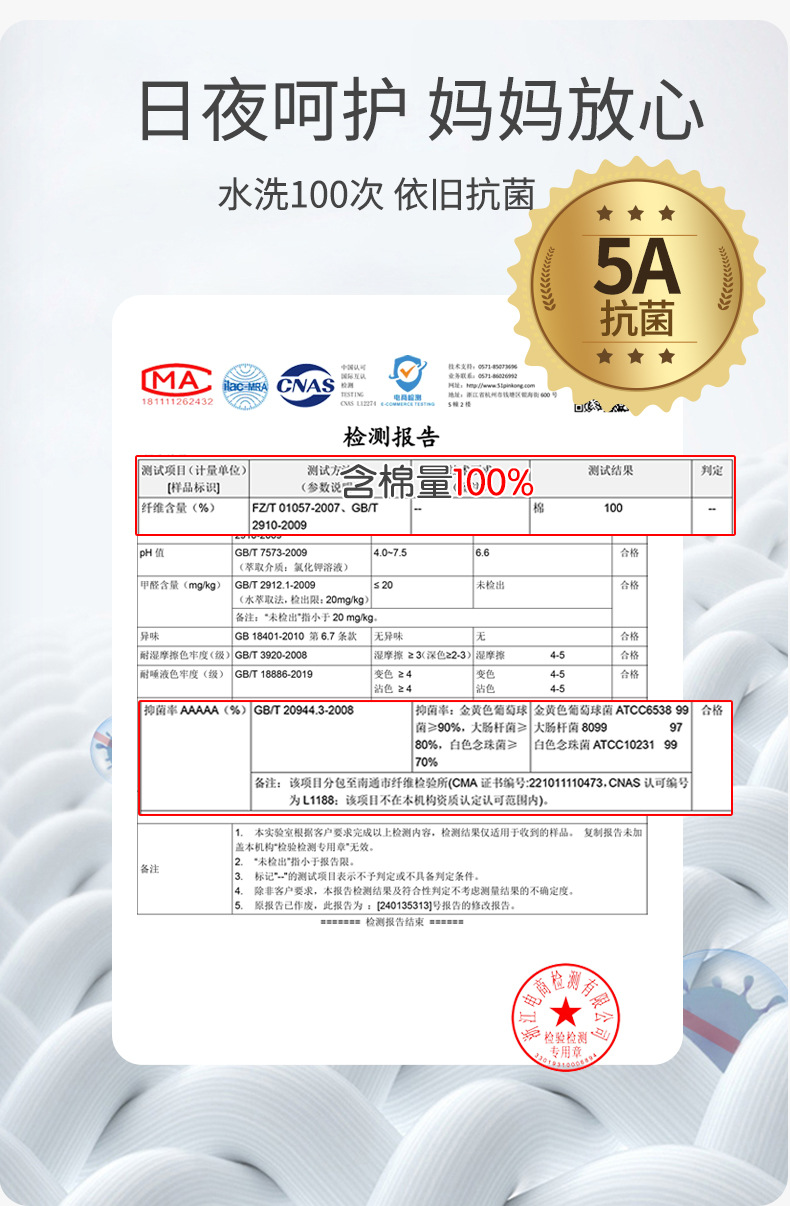 蓝色【5A抗菌+无骨】纯棉提花3066