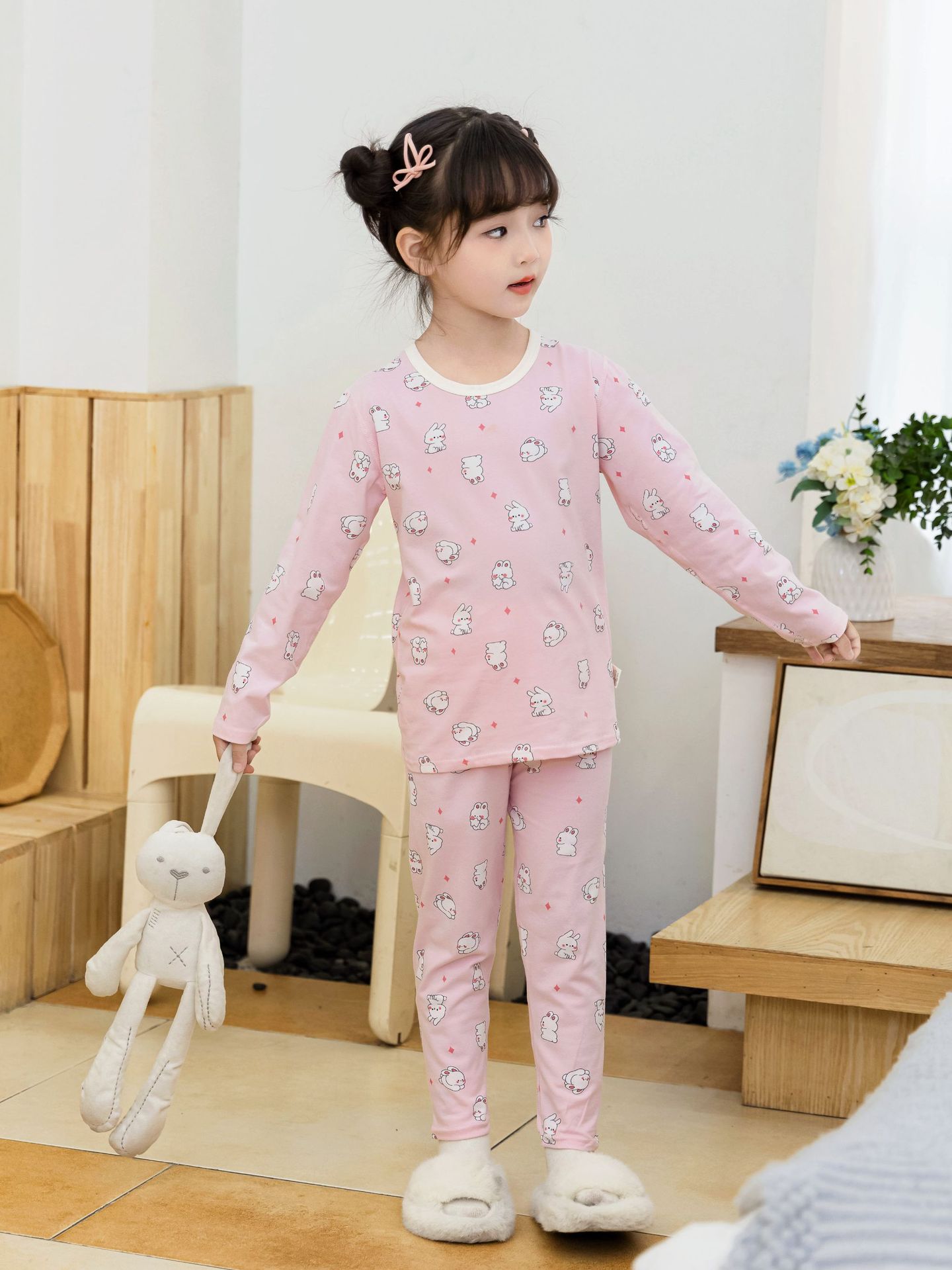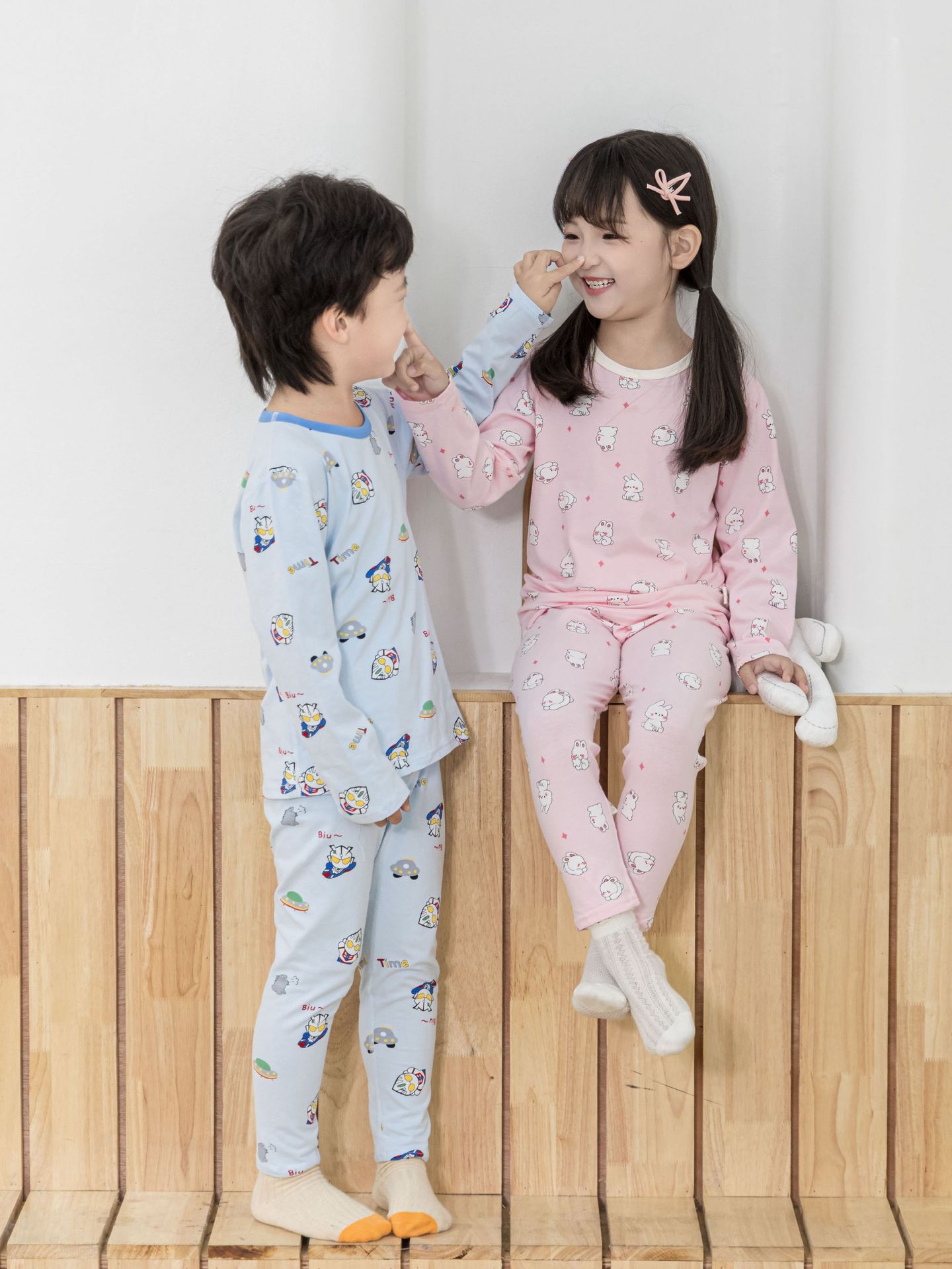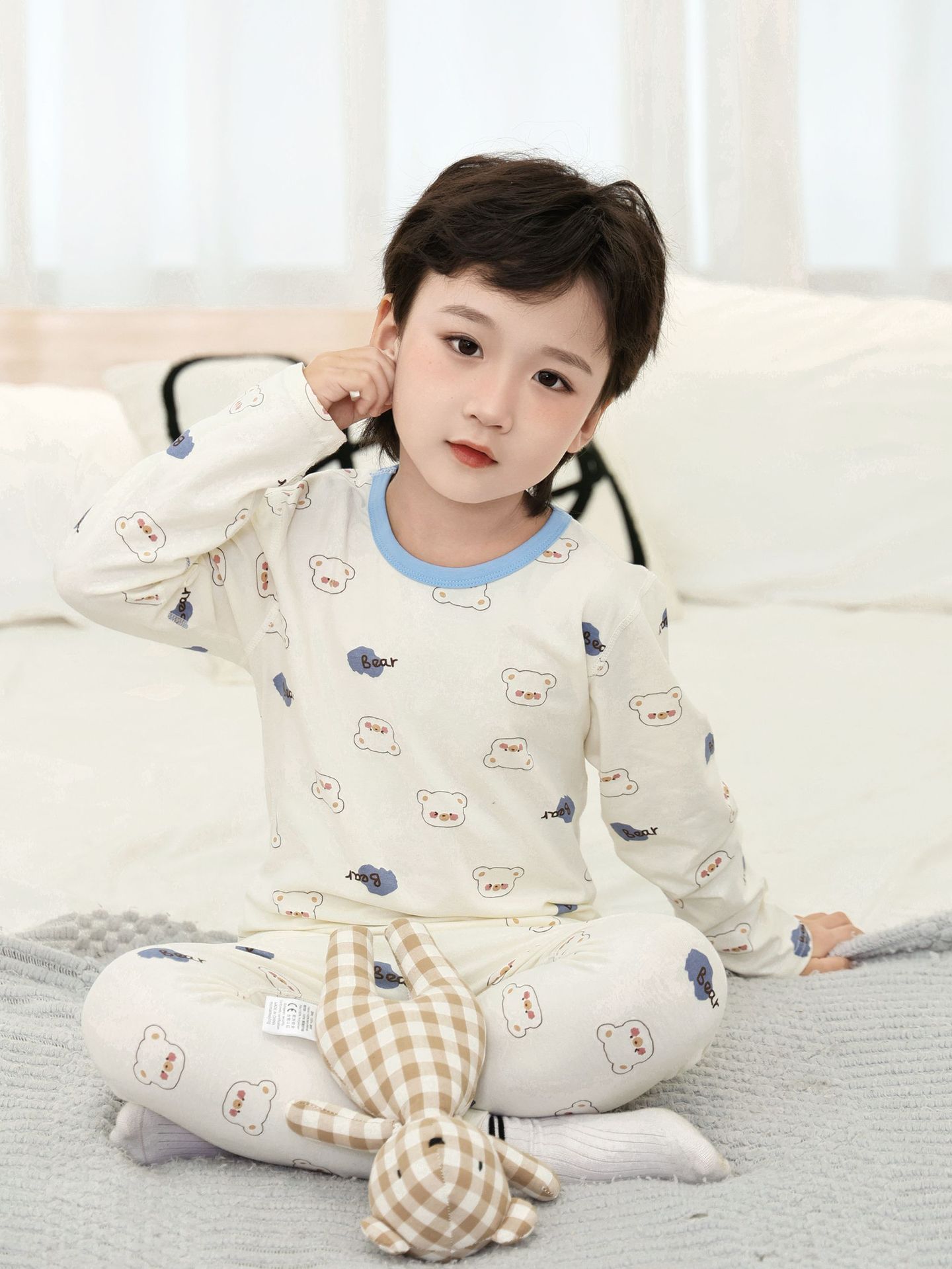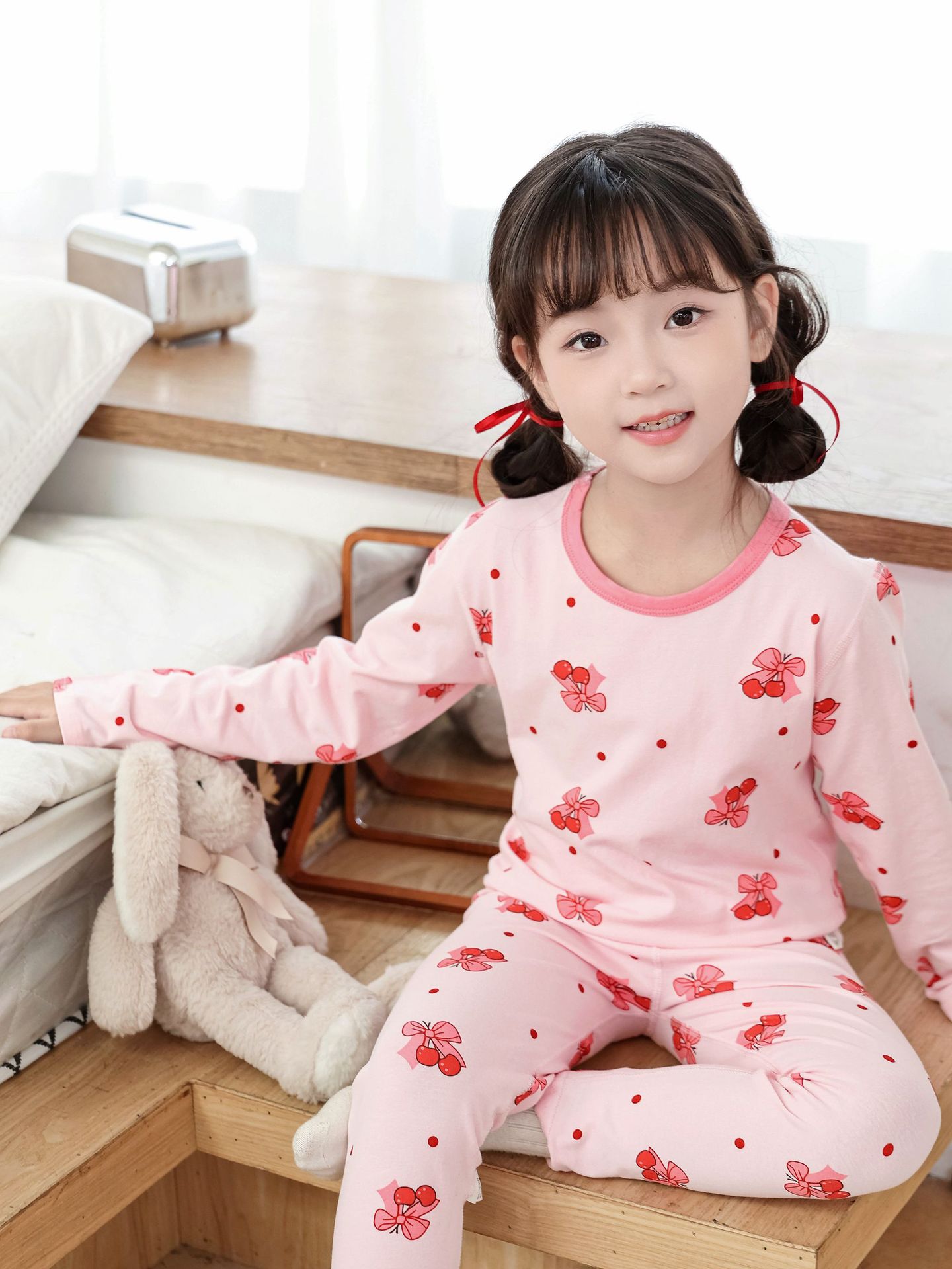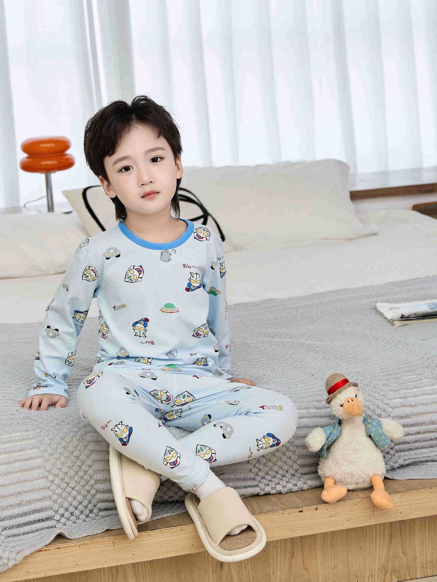 商品名称:春秋款纯棉无骨莱卡男女童内衣套装儿童宝宝秋衣秋裤家居服两件套