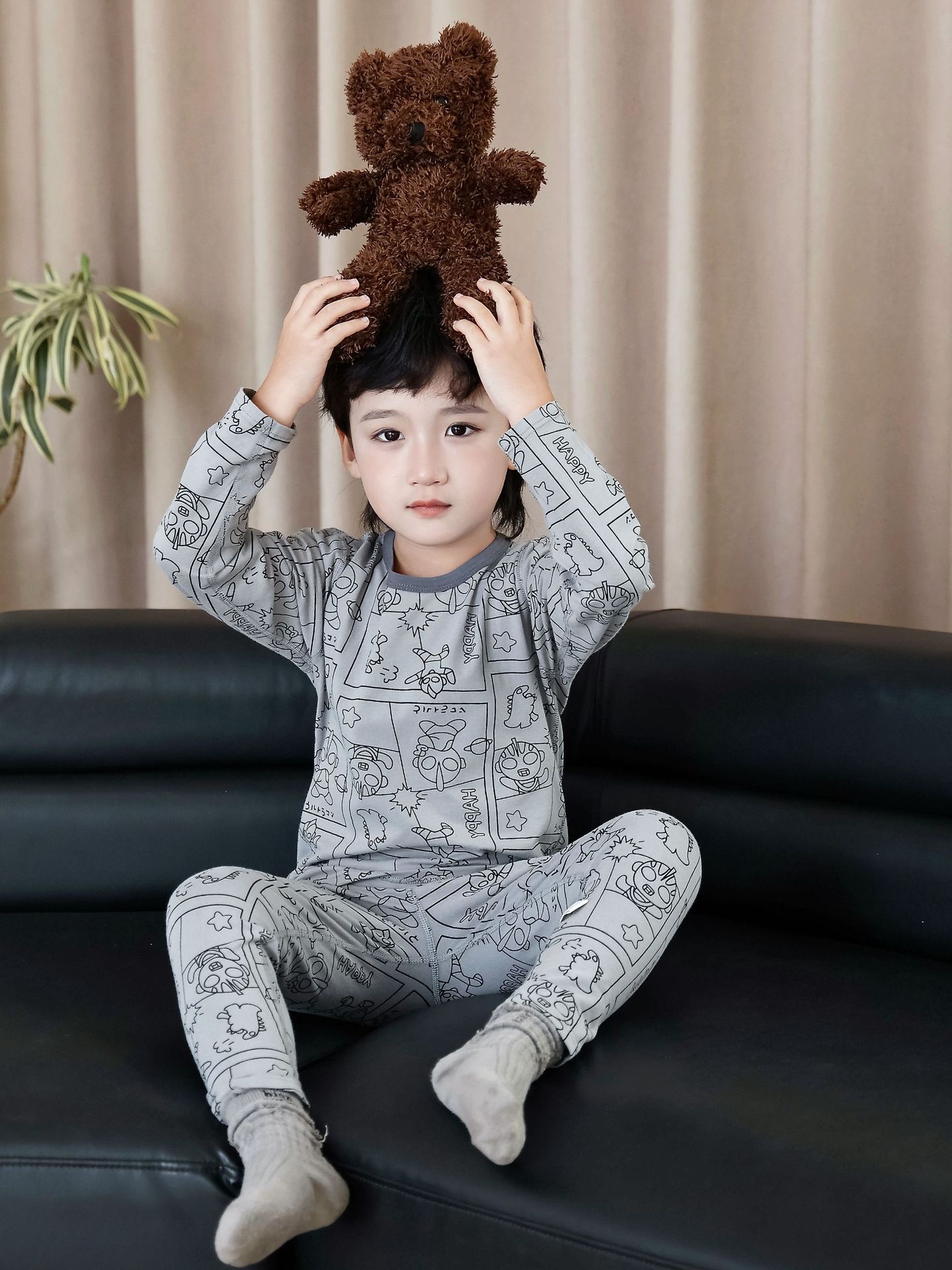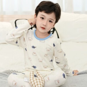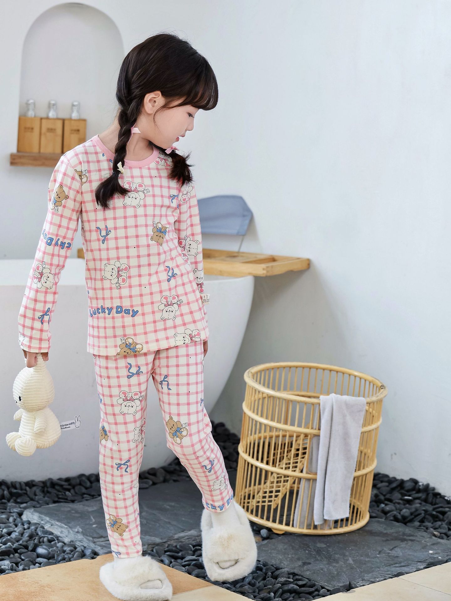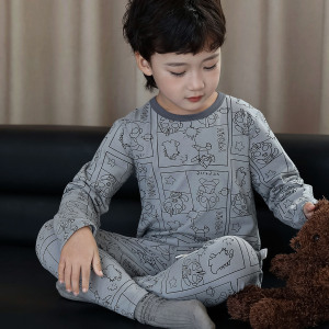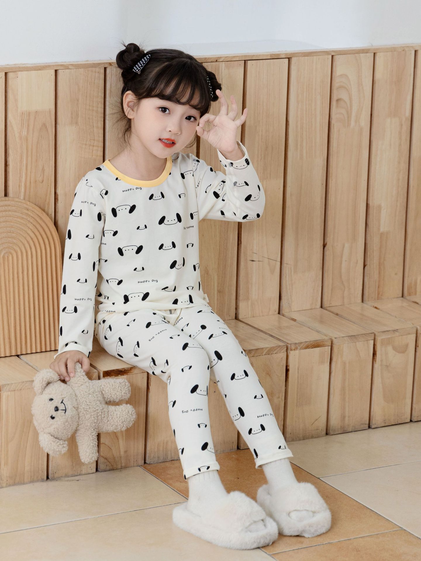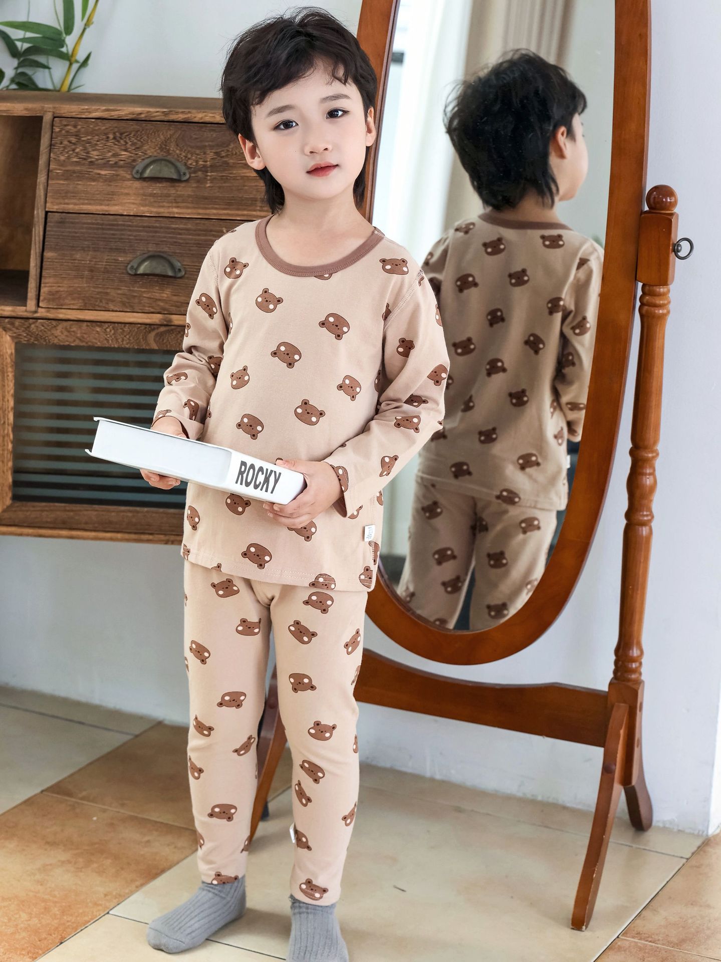 商品名称:春秋款纯棉无骨莱卡男女童内衣套装儿童宝宝秋衣秋裤家居服两件套