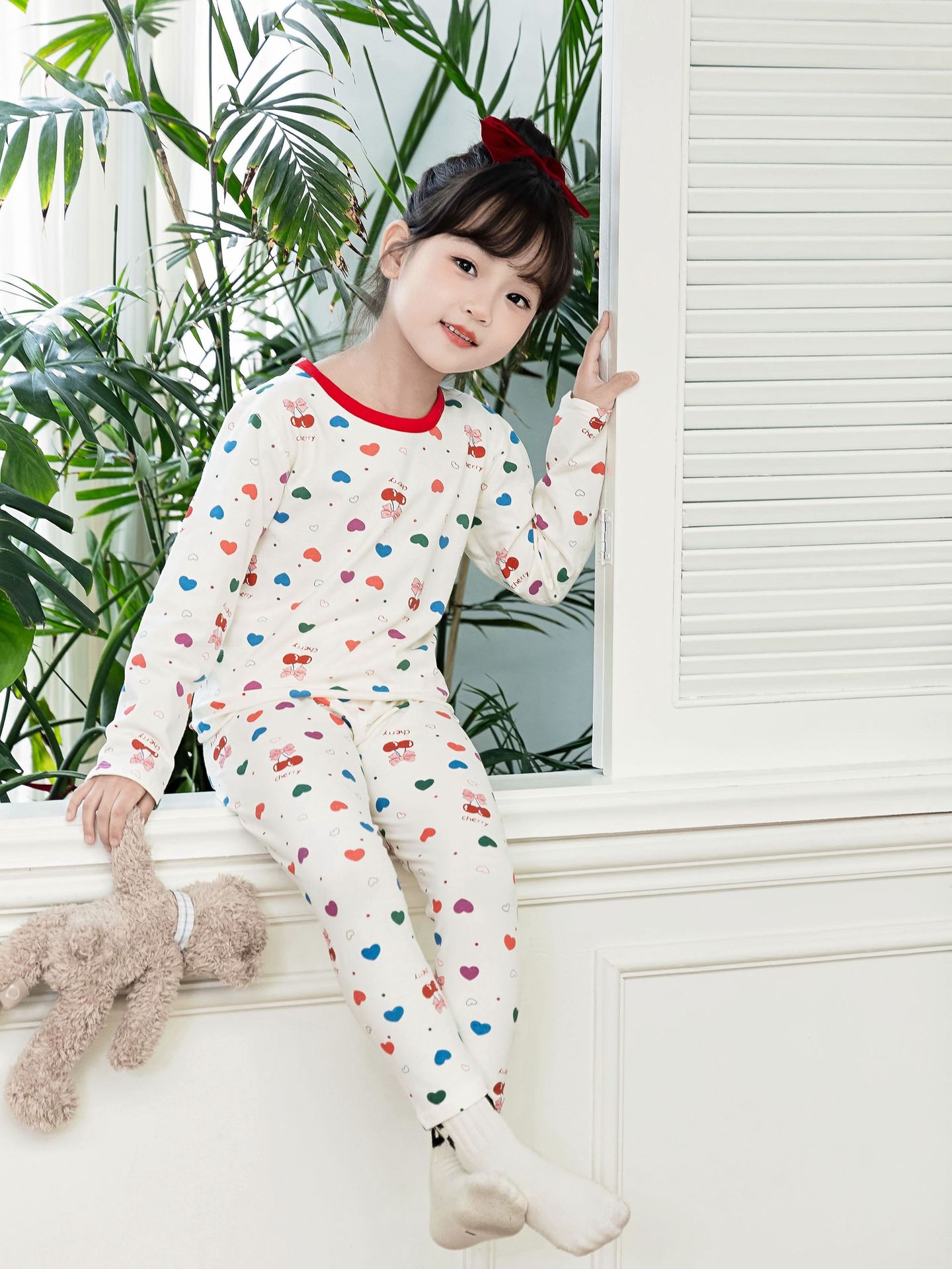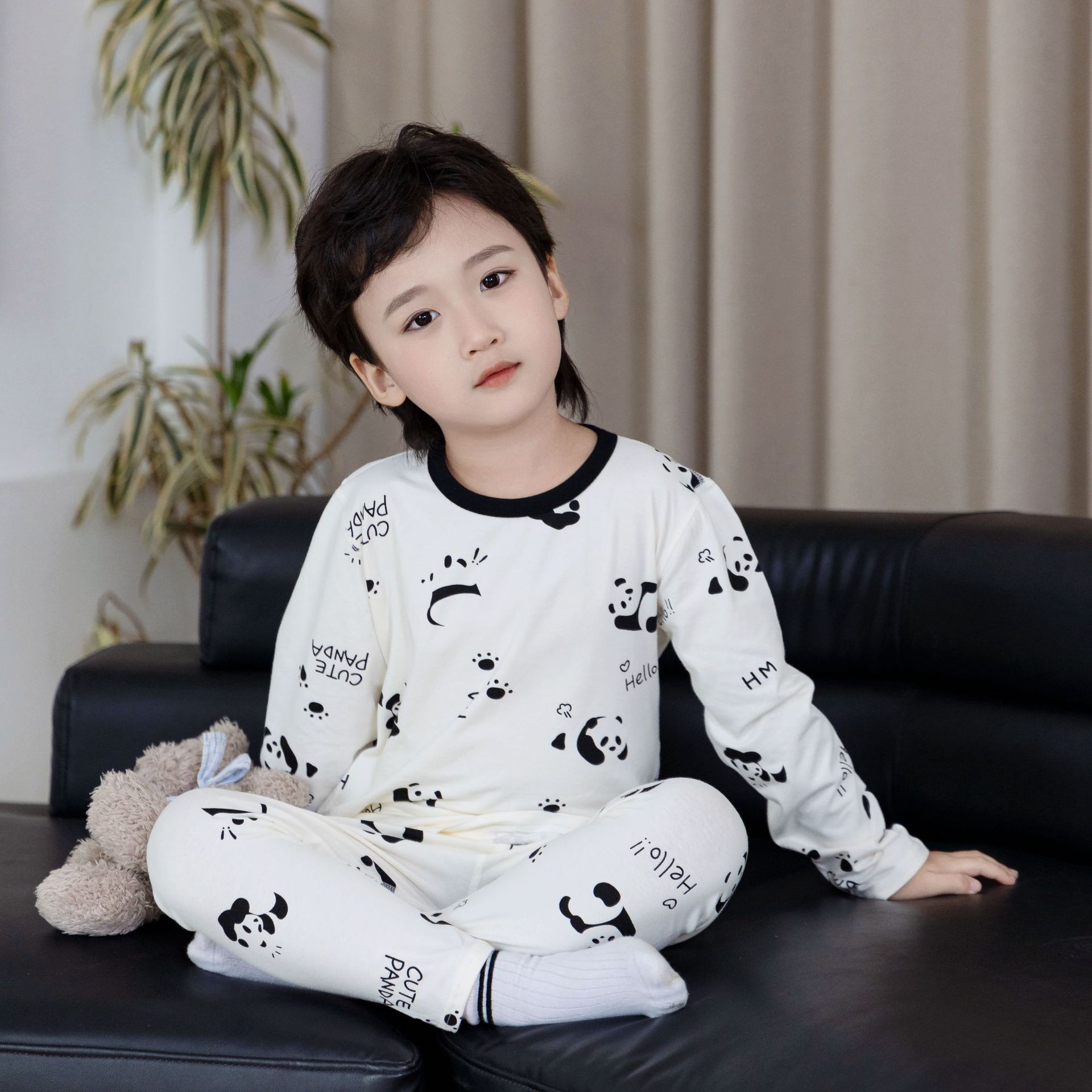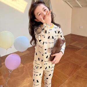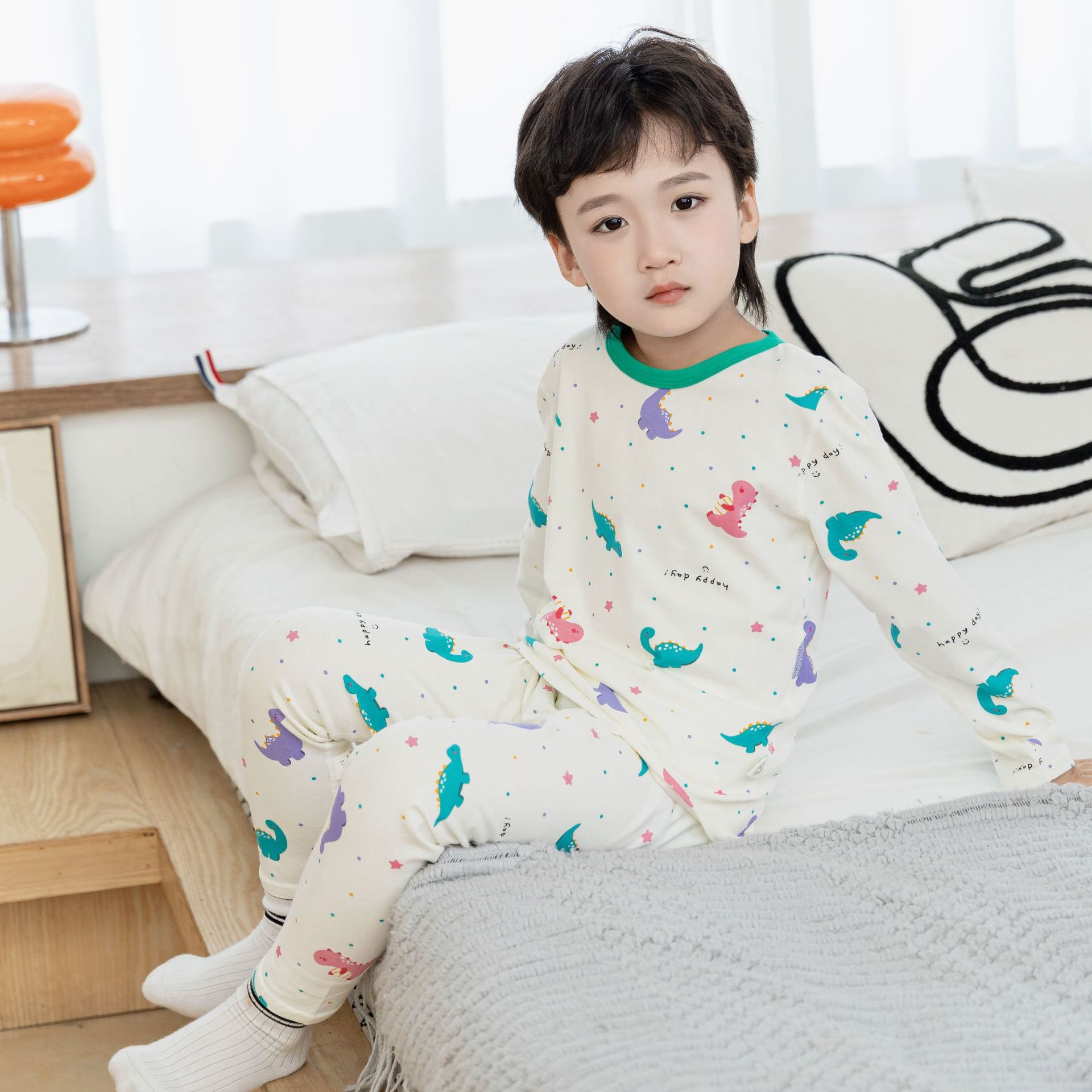 春秋款纯棉无骨莱卡男女童内衣套装儿童宝宝秋衣秋裤家居服两件套
