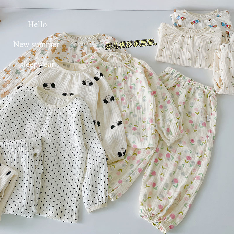 | |  | 2024儿童空调家居服双层棉纱睡衣男女童纯棉春夏薄款九分长袖套装24RMB立即购买> |