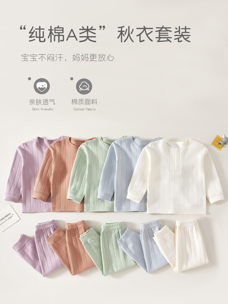 商品名称:婴儿睡衣内衣纯棉春秋高腰护肚初生分体套装宝宝秋衣秋裤打底衣服