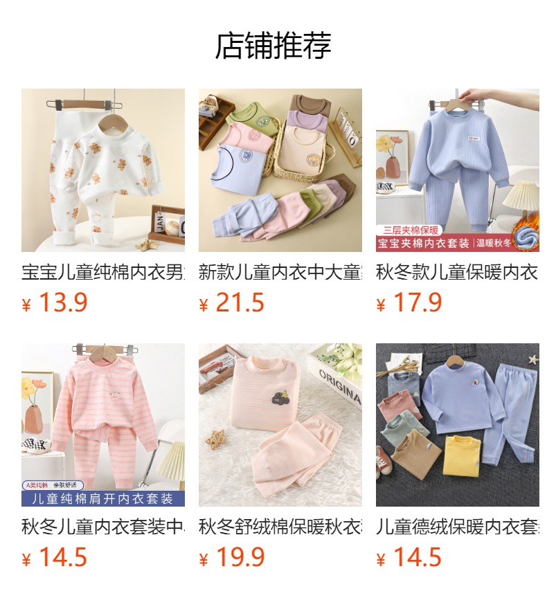 商品名称:儿童秋冬内衣套装中小童纯棉秋衣男童女童家居服宝宝睡衣秋衣秋裤