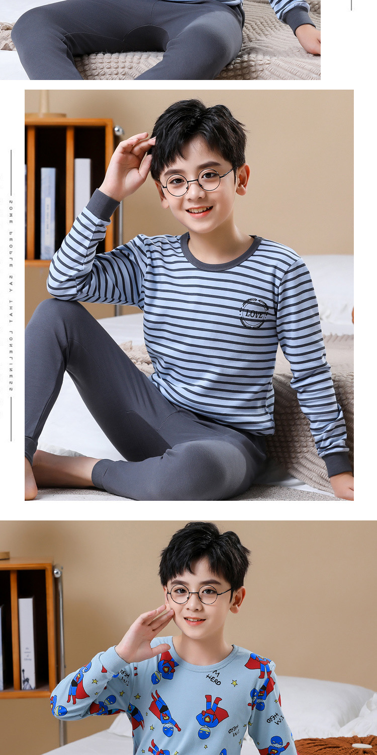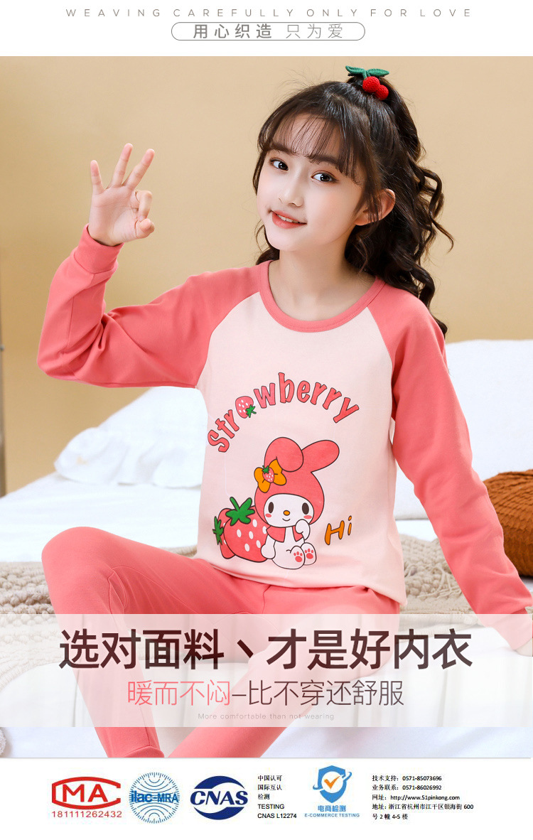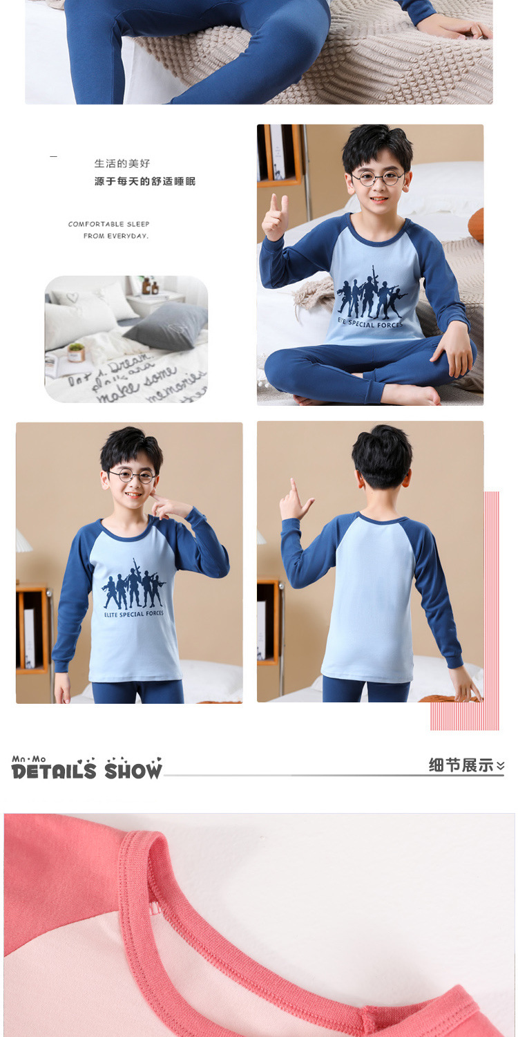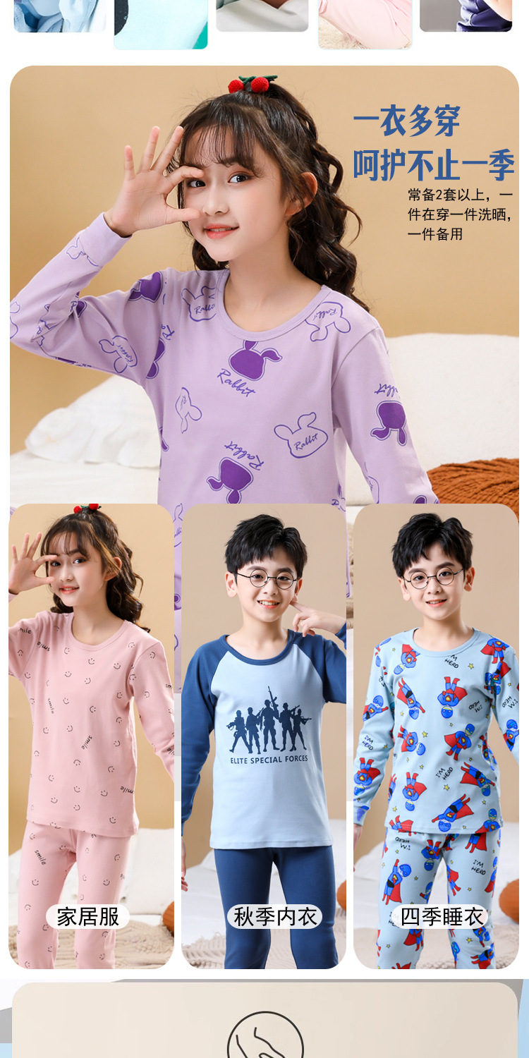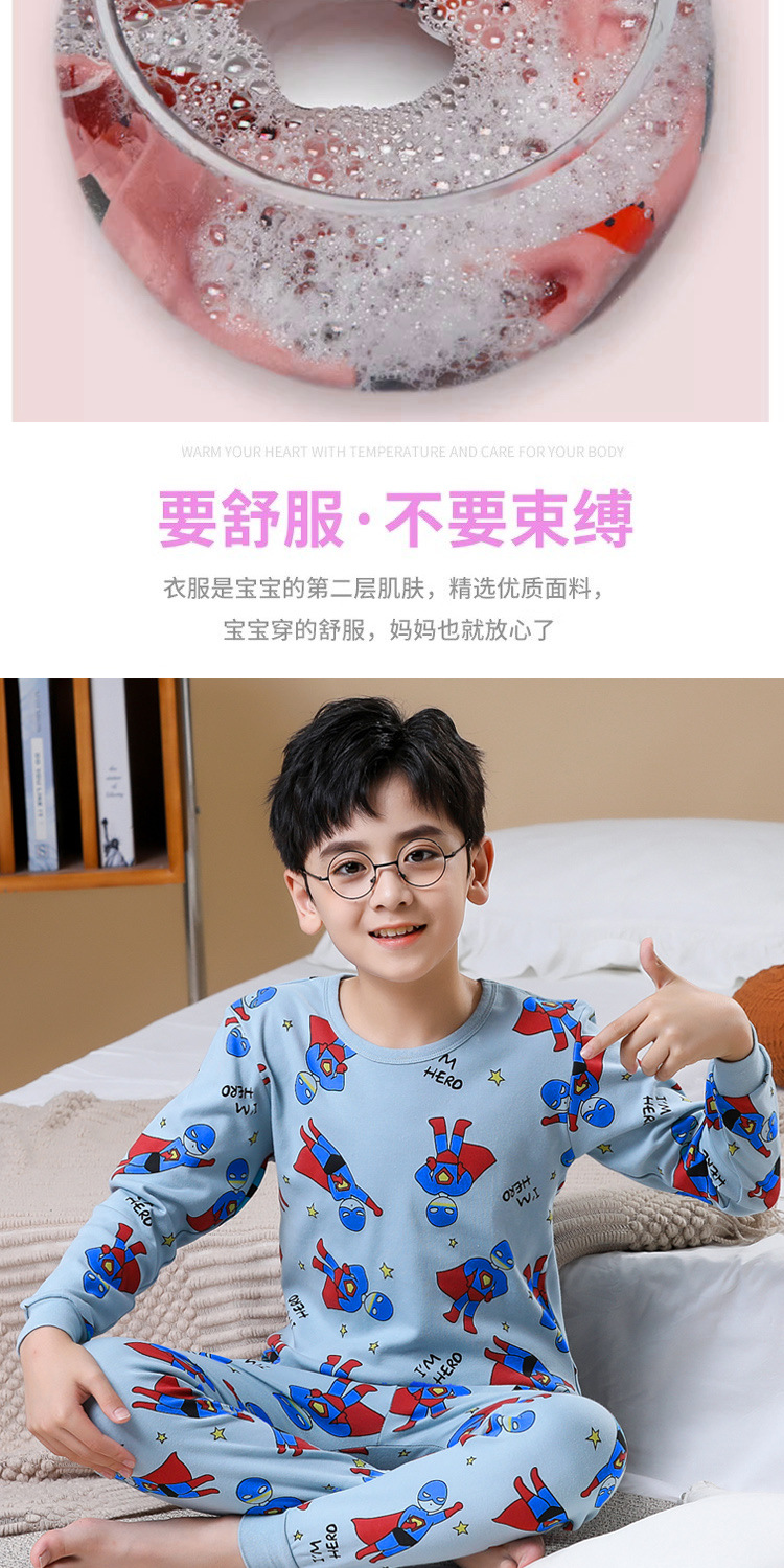 商品名称:男女童纯棉秋衣秋裤套装中小童卡通保暖棉毛衫圆领宝宝睡衣内衣批