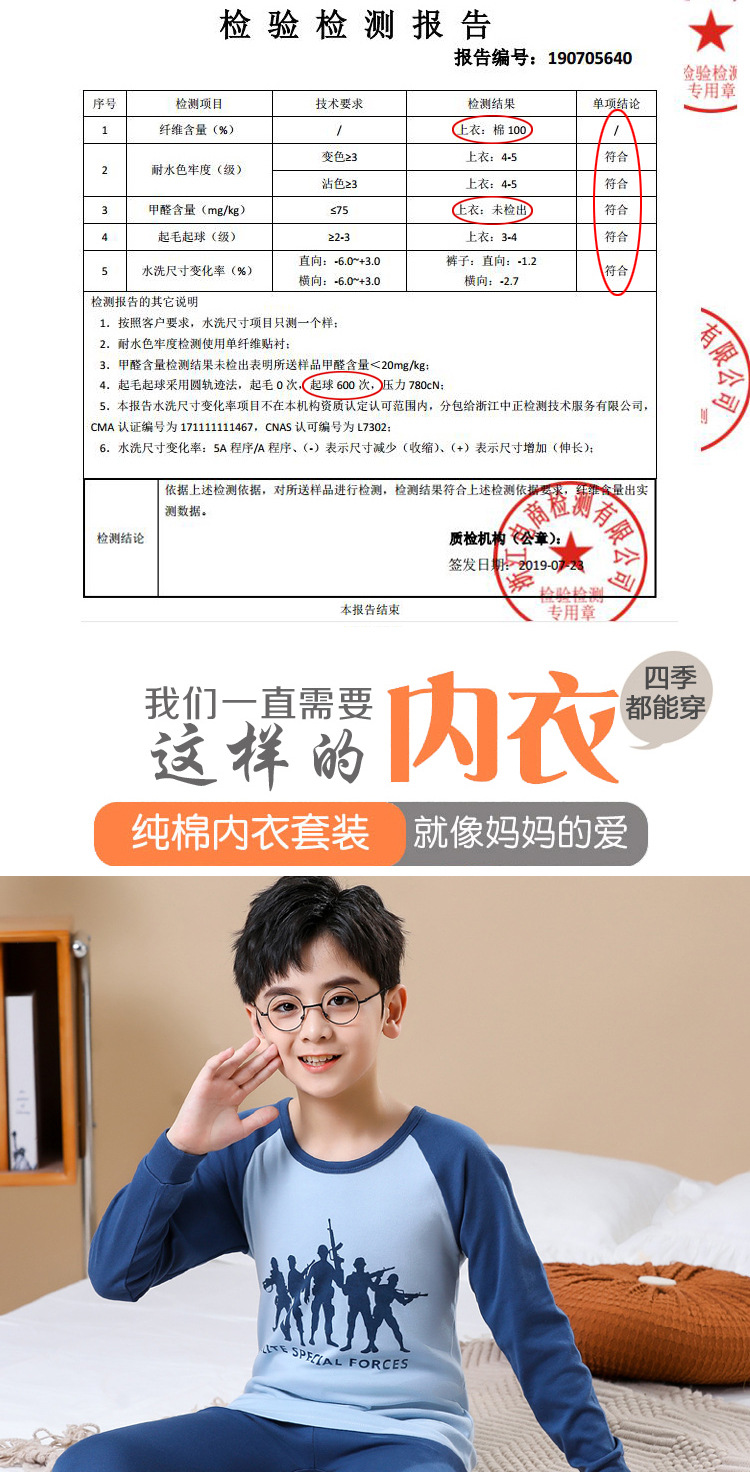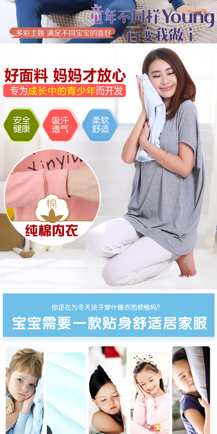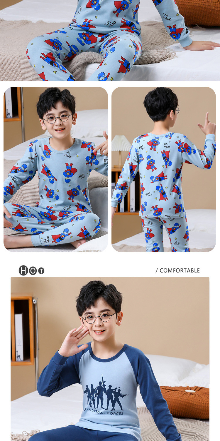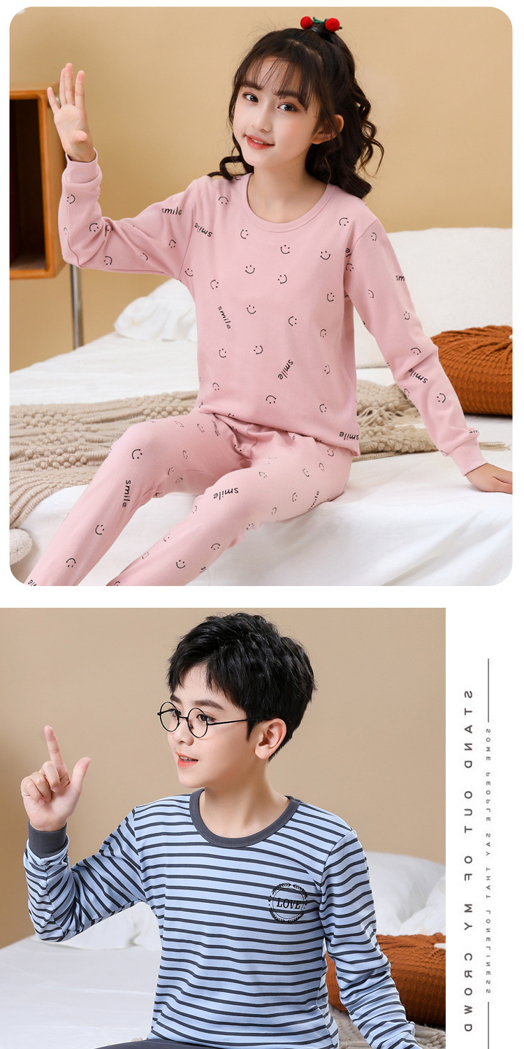 商品名称:男女童纯棉秋衣秋裤套装中小童卡通保暖棉毛衫圆领宝宝睡衣内衣批