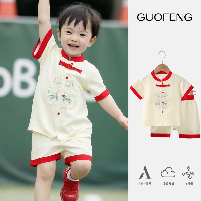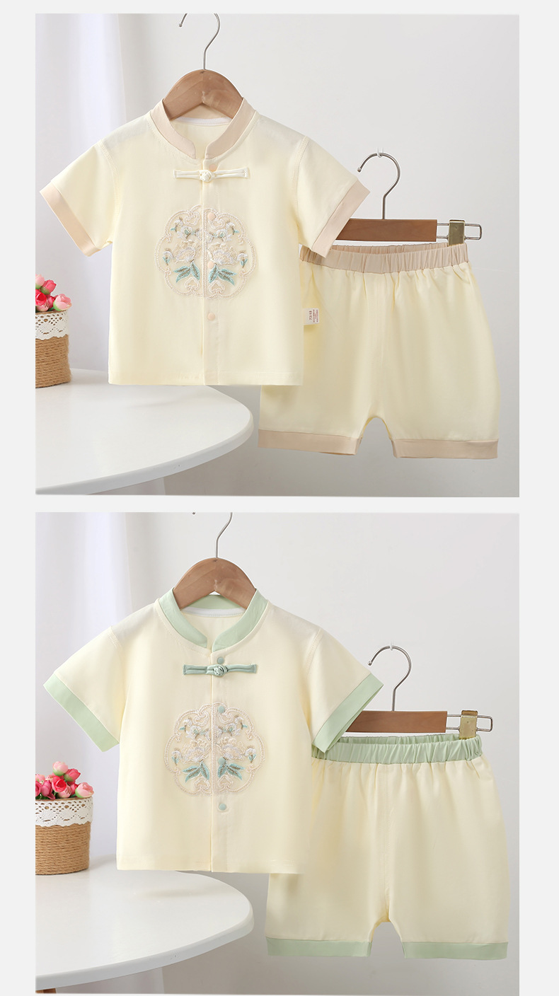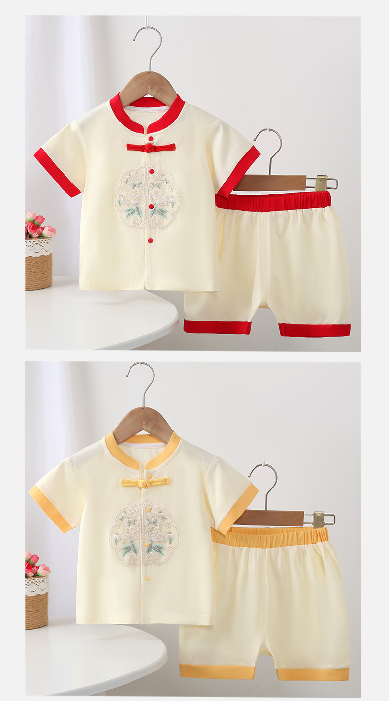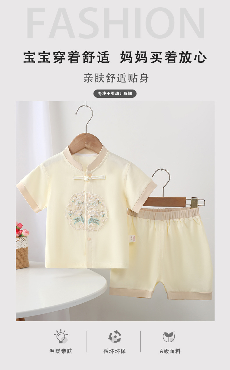 商品名称:夏季新款中国风婴幼儿内衣套装对开门男女中国风立领套装无骨工艺