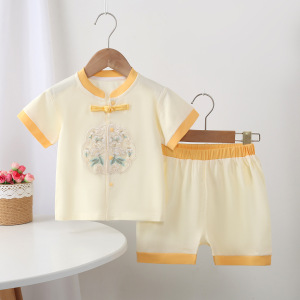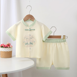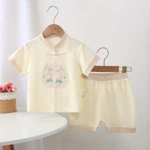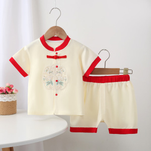 夏季新款中国风婴幼儿内衣套装对开门男女中国风立领套装无骨工艺
