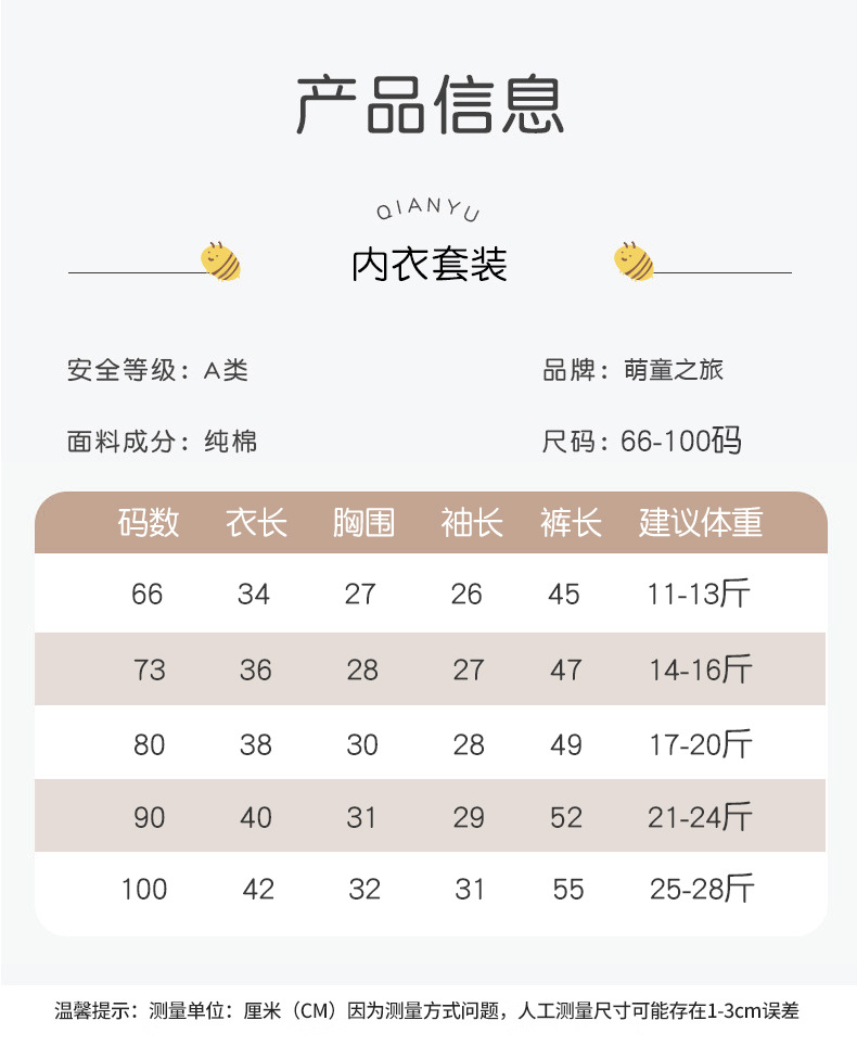 商品名称:宝宝纯棉内衣套装春秋内衣家居服幼儿打底套装护肚婴儿睡衣按扣裆