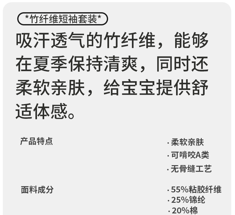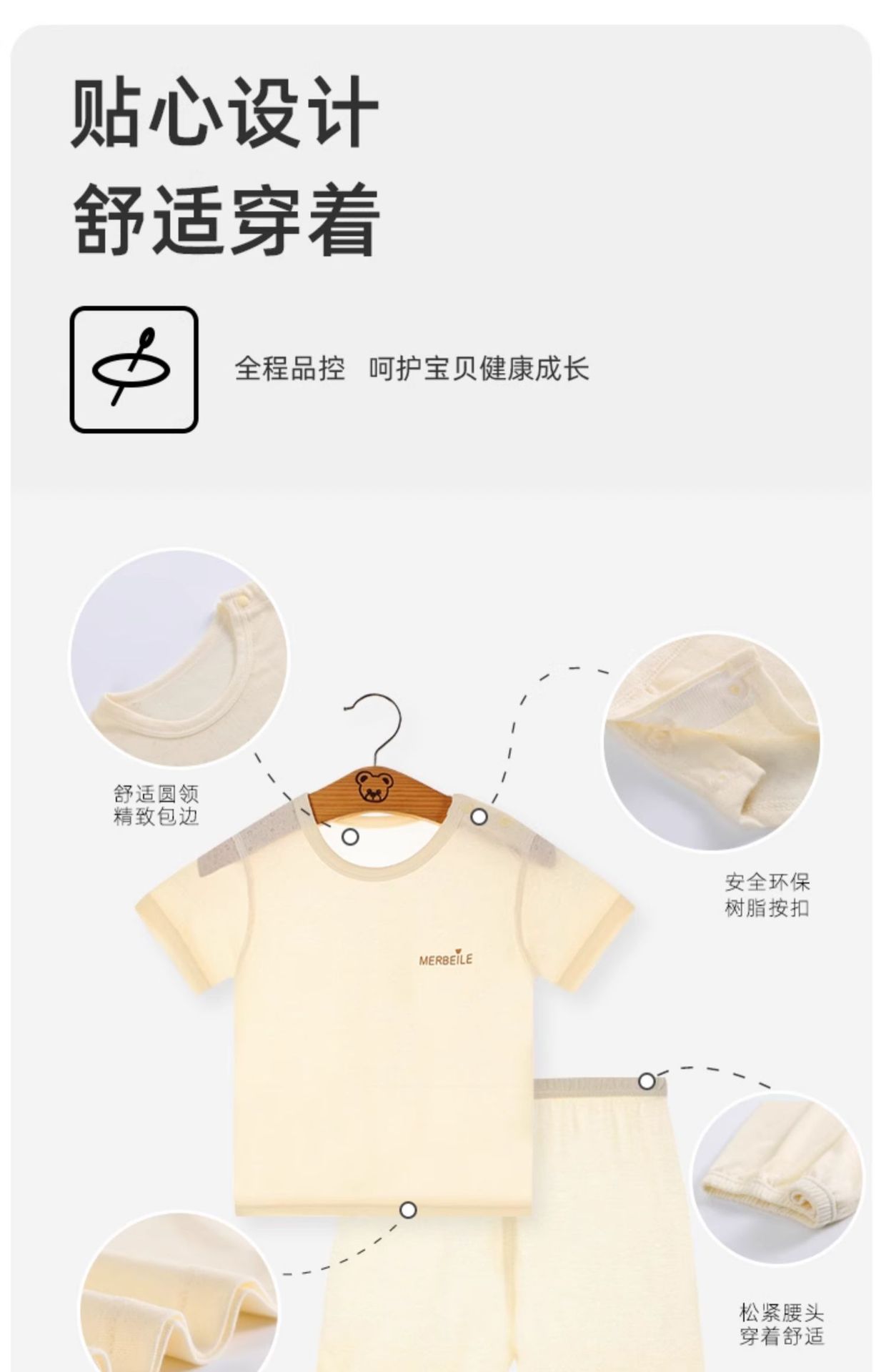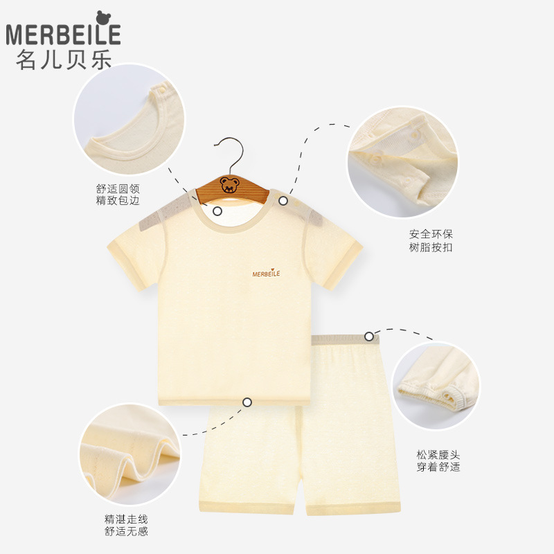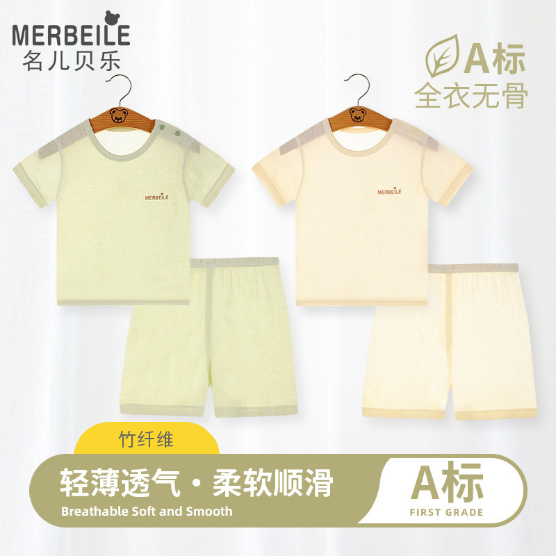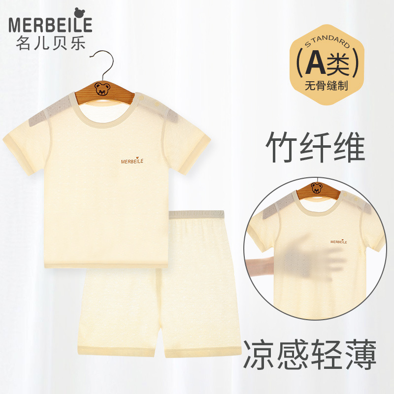 商品名称:宝宝婴儿短袖短裤竹纤维睡衣套装儿童分体内衣空调服夏季男薄款女