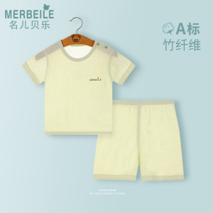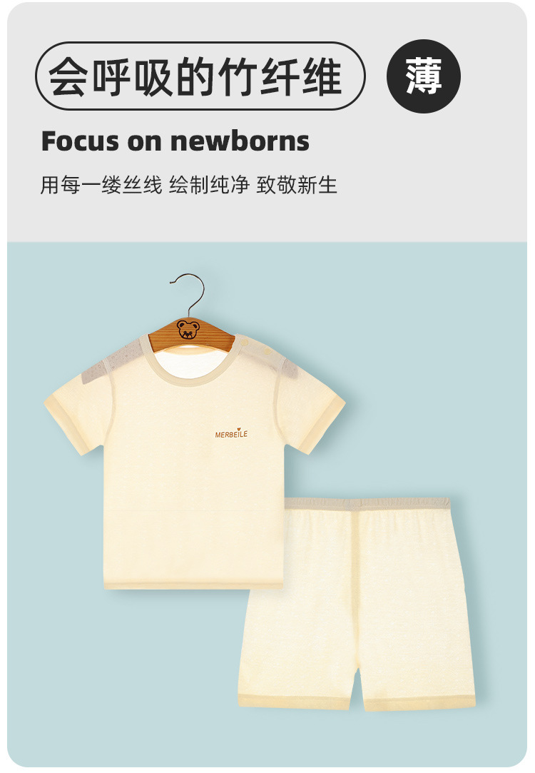 宝宝婴儿短袖短裤竹纤维睡衣套装儿童分体内衣空调服夏季男薄款女