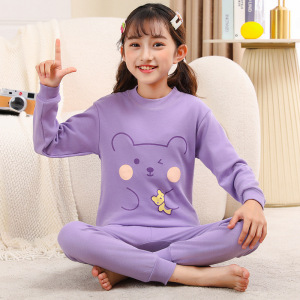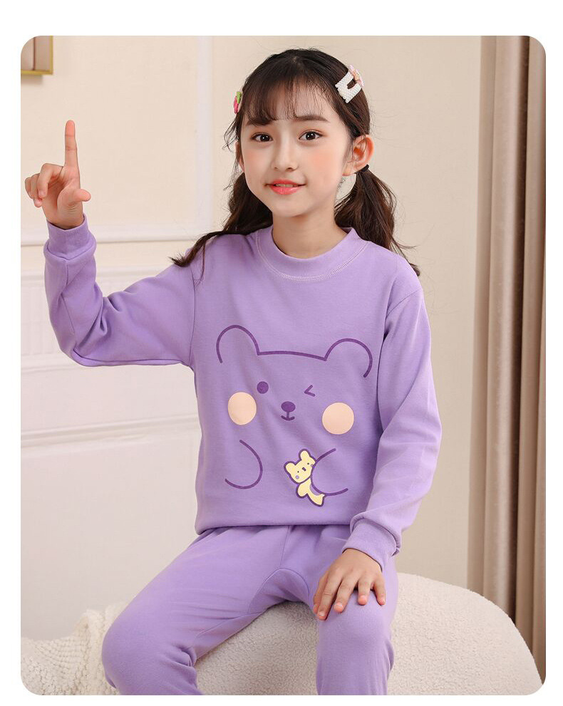 纯棉套装)中领紫色熊