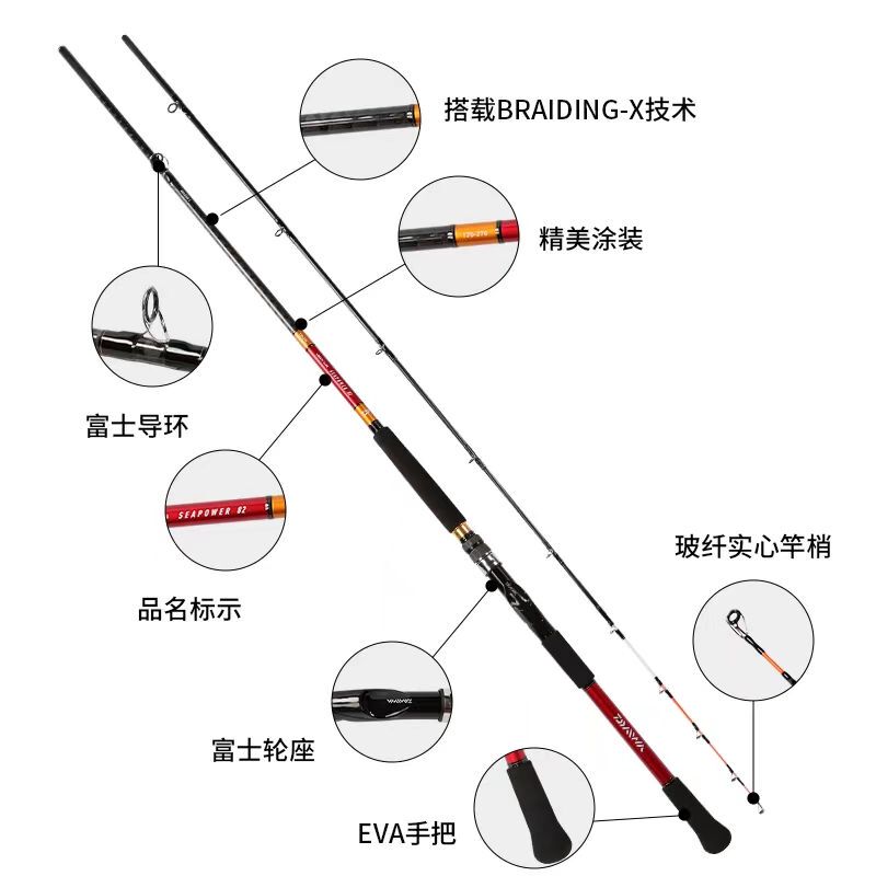 进口达瓦鱼竿船竿远投竿海竿套装超硬船钓竿海钓竿钓鱼竿铁板竿
