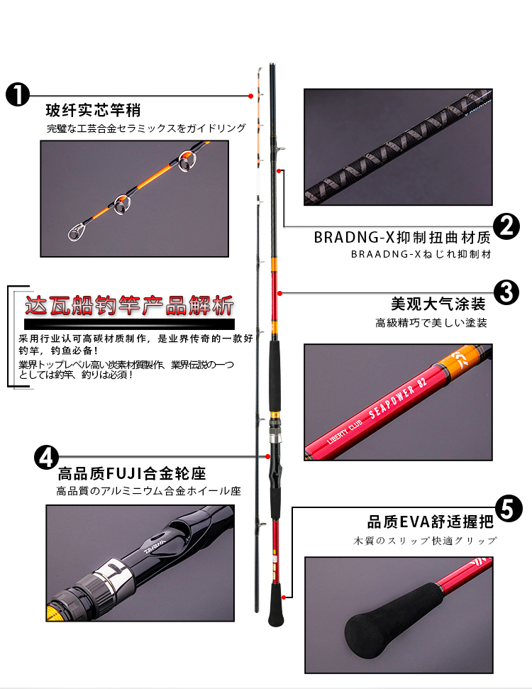 商品名称:进口达瓦鱼竿船竿远投竿海竿套装超硬船钓竿海钓竿钓鱼竿铁板竿