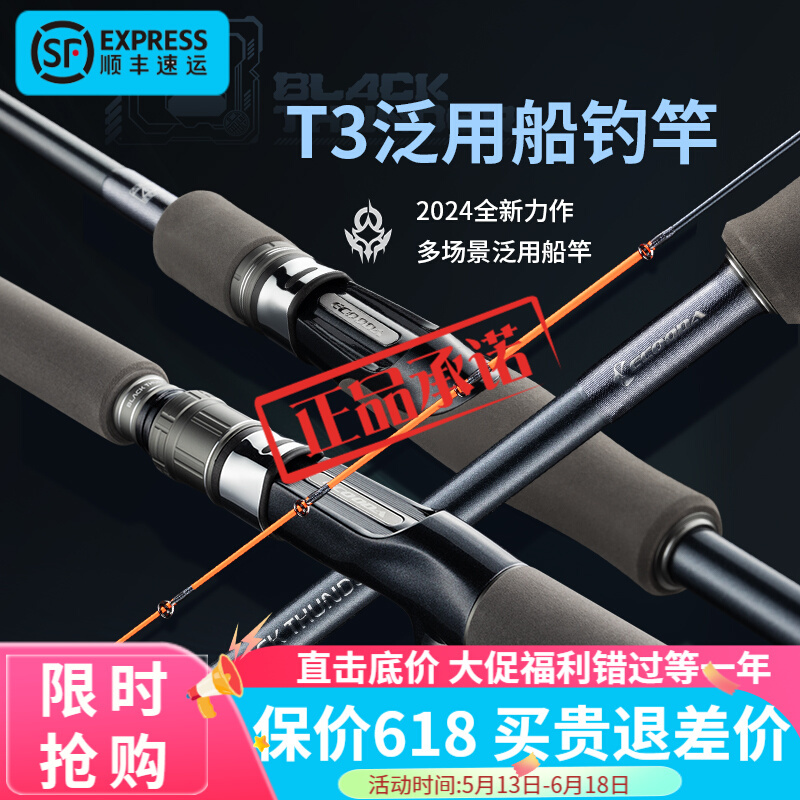 伊酷达T3泛用近海船钓竿四节便携海钓竿船抛沉船底钓拉流黑黄八带